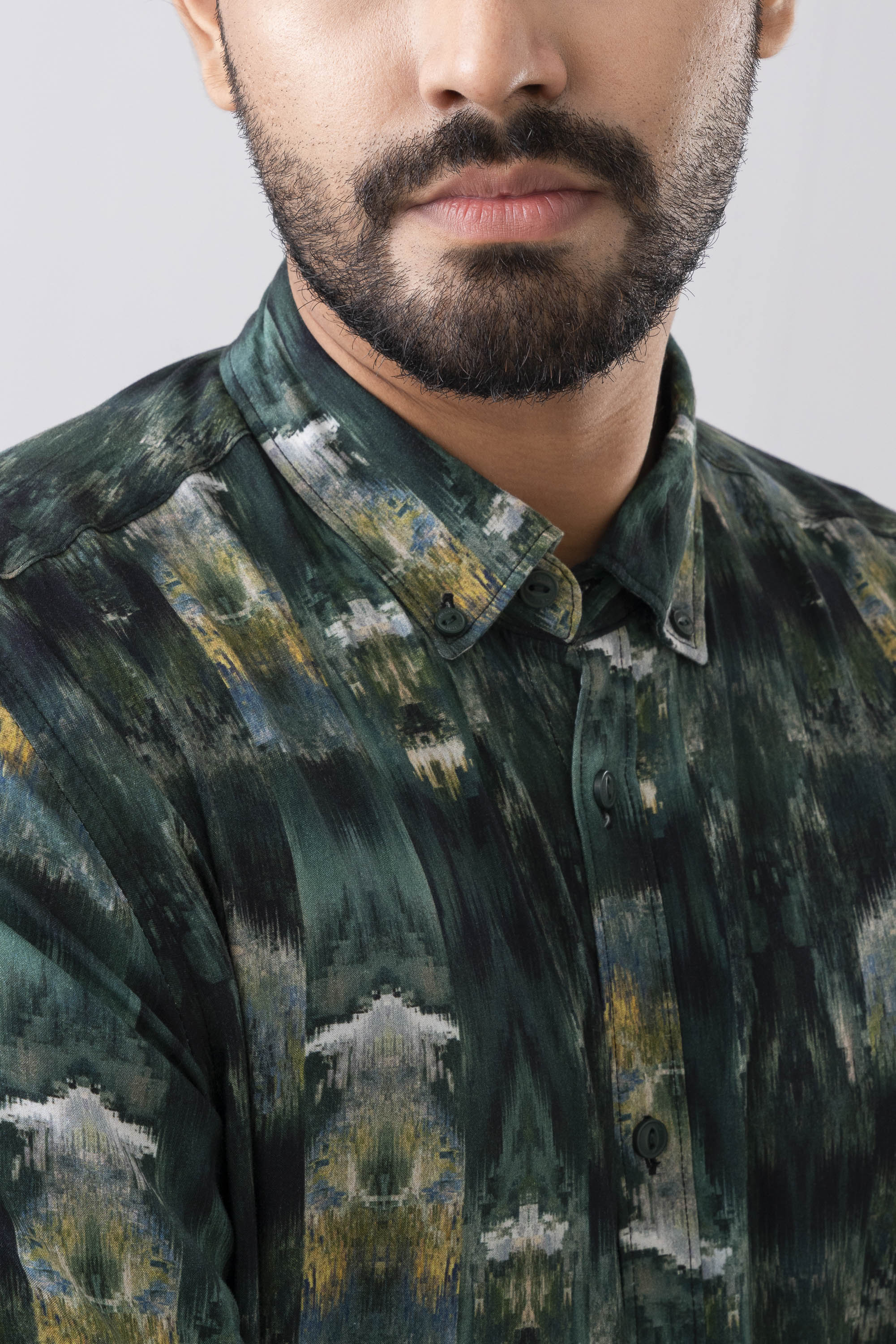 Regular Fit Men’s Casual Shirt. Short sleeve and printed shirt, Box placket with DTM button, button-down collar shirt.