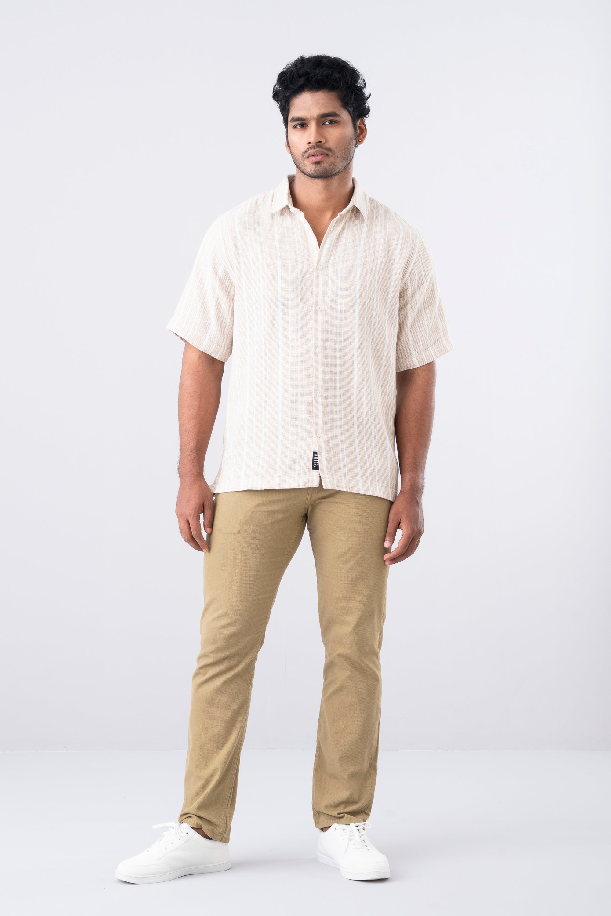 Stay effortlessly stylish with this short sleeve stripe shirt, a perfect combination of timeless design and contemporary ease. This shirt adds a touch of sophistication to your casual wardrobe. Crafted from soft, breathable fabric, it keeps you comfortable all day long, making it an ideal choice for warm-weather outings, weekend getaways.