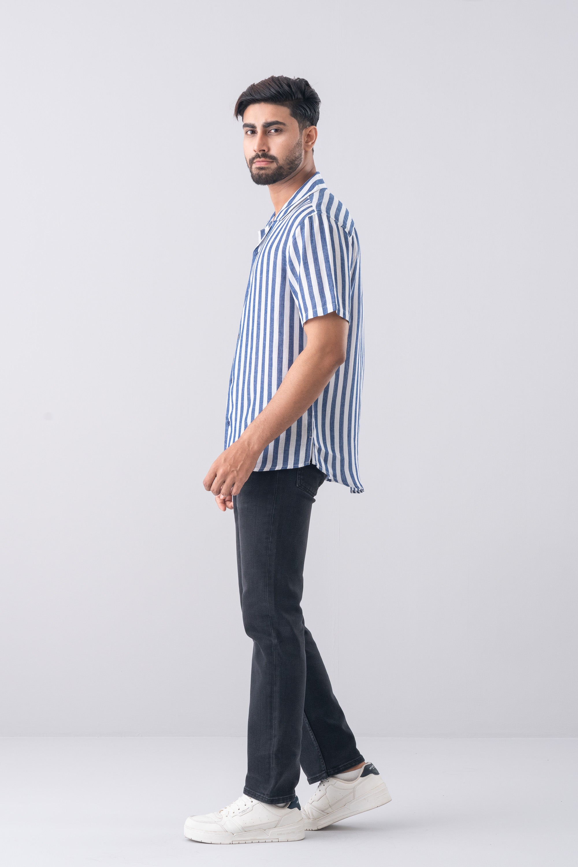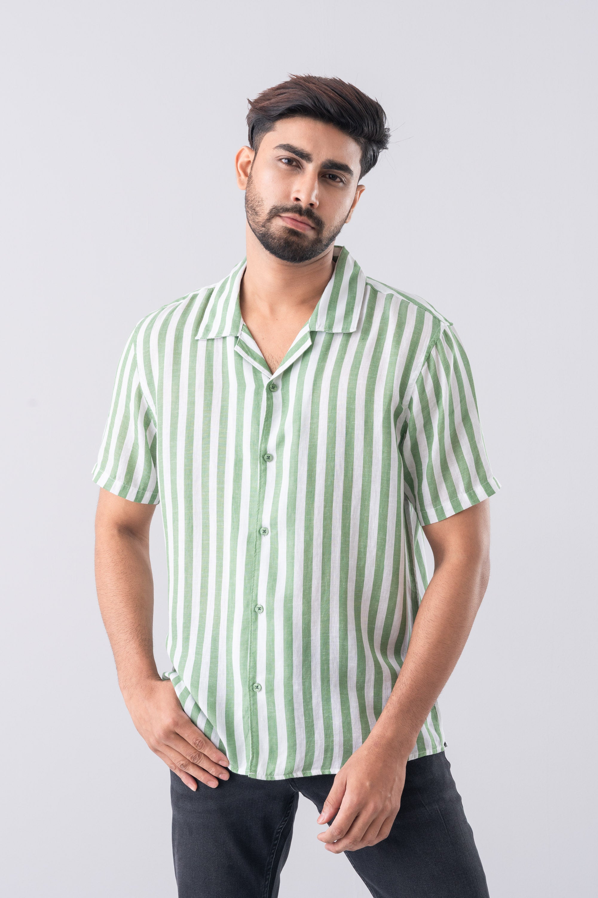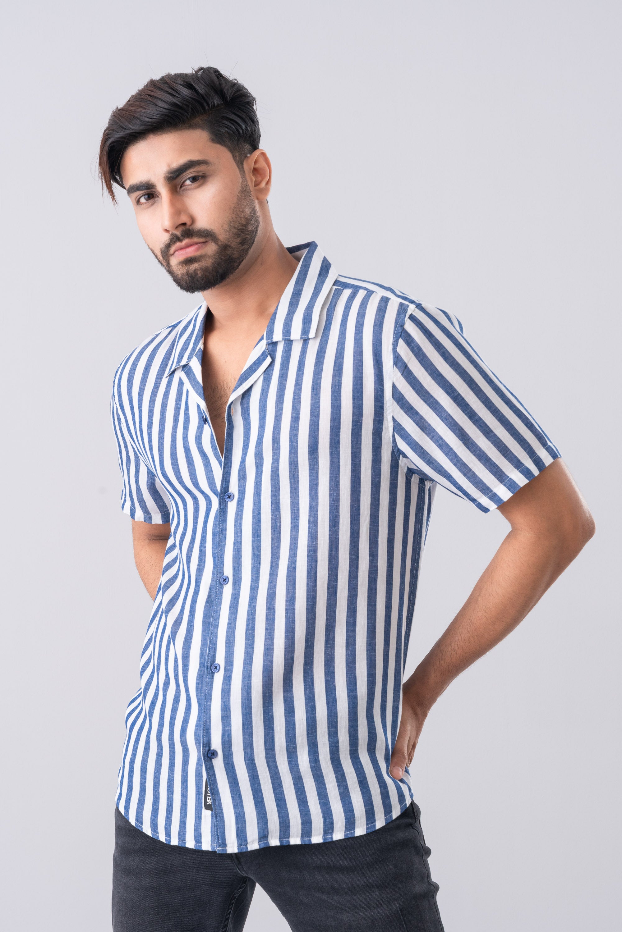 Stay effortlessly stylish with this short sleeve stripe shirt, a perfect combination of timeless design and contemporary ease. This shirt adds a touch of sophistication to your casual wardrobe. Crafted from soft, breathable fabric, it keeps you comfortable all day long, making it an ideal choice for warm-weather outings, weekend getaways.