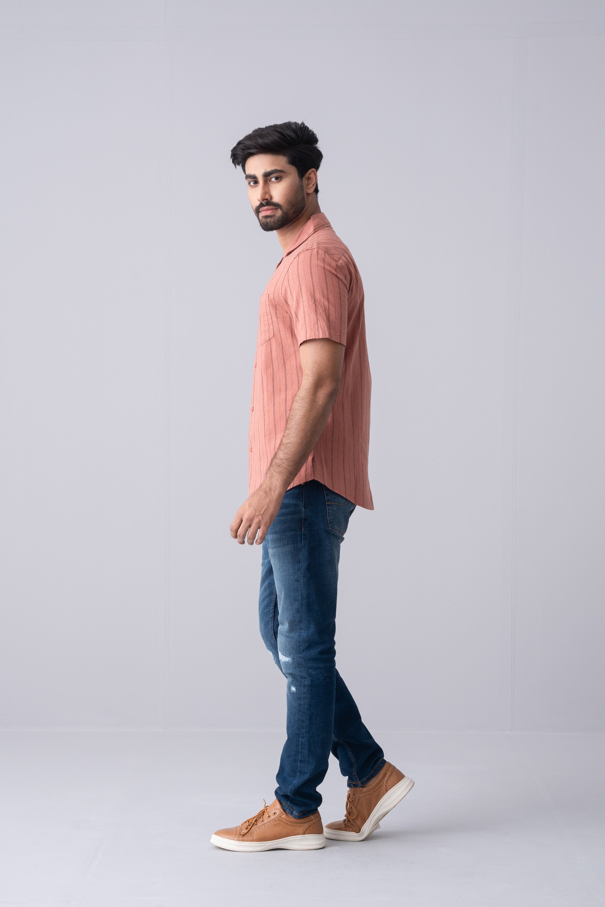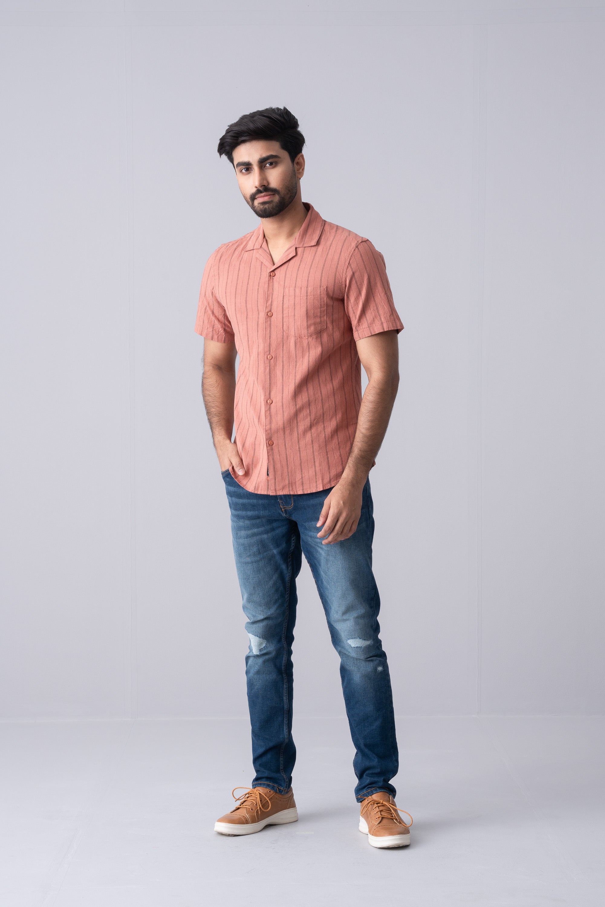 Stay effortlessly stylish with this short sleeve striped shirt, a perfect combination of timeless design and contemporary ease. Featuring a sleek striped pattern, this shirt adds a touch of sophistication to your casual wardrobe. Crafted from soft, breathable fabric, it keeps you comfortable all day long, making it an ideal choice for warm-weather outings, casual Fridays, or weekend getaways.