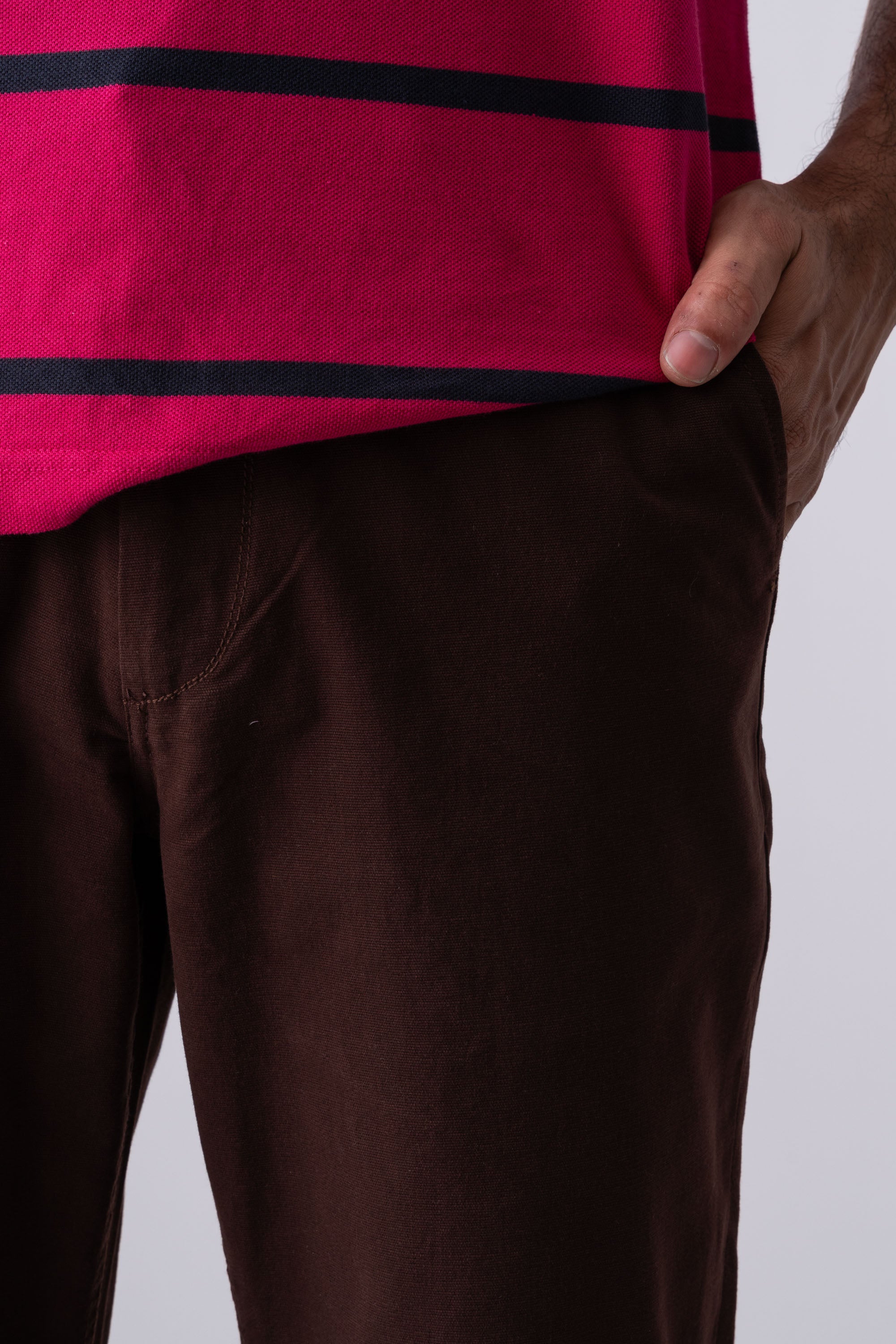 Regular fit that moves with you, ensuring maximum flexibility and ease of movement. Surface with smooth stretch quality. Functional zip fly with 2 front pocket and 2 back pockets. providing ample storage space for your essentials, such as your phone, wallet, and keys. Brand label at inside waist middle. Garment wash with sustainable materials. Soft hand feel with peach finish. Made from high-quality materials, Designed to withstand everyday wear and tear, ensuring that it lasts for years to come. With a sleek and modern design, our pant is perfect for any casual occasion, whether you're running errands or going out for a casual dinner. Easy to care for and maintain, making it a hassle-free addition to your wardrobe.