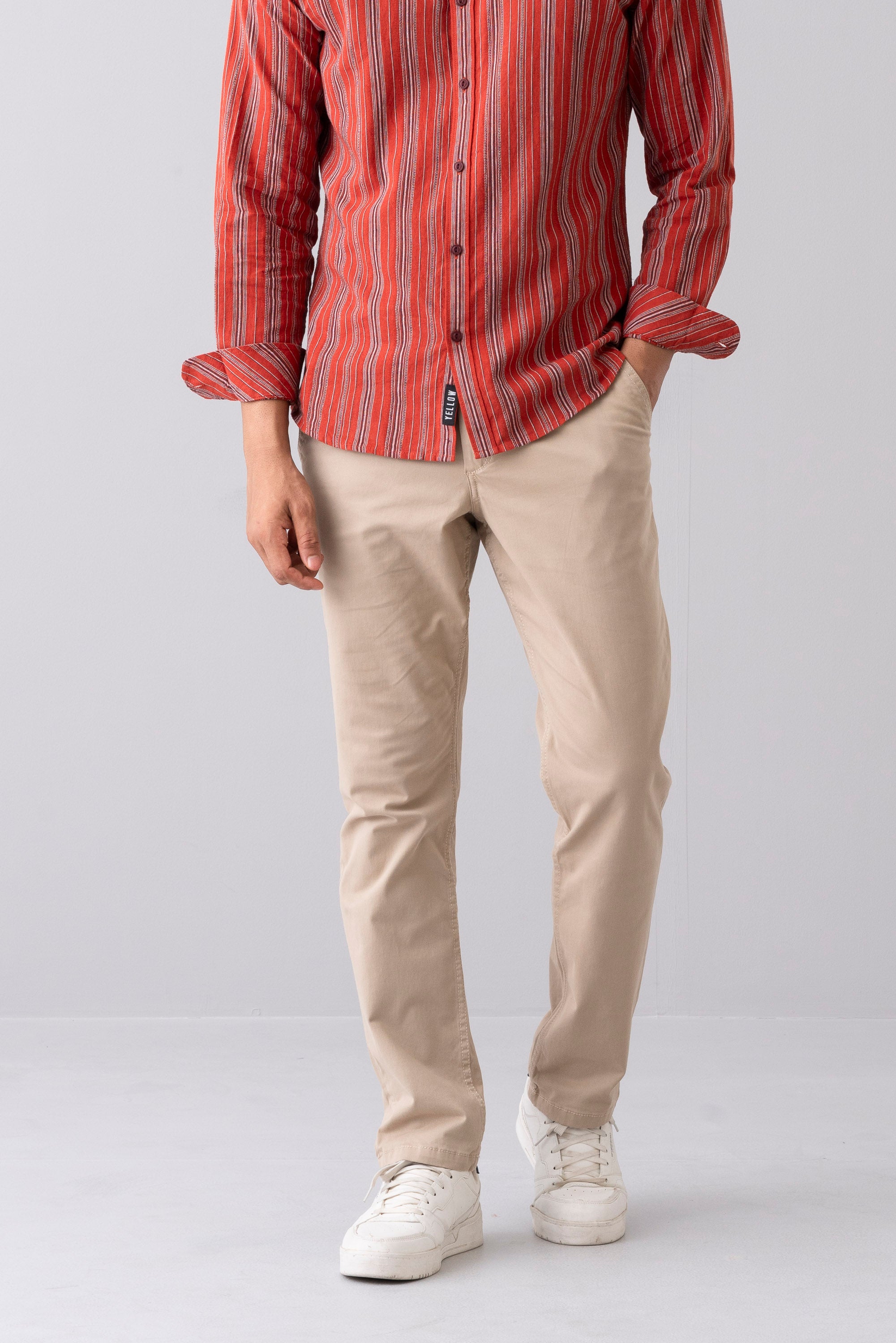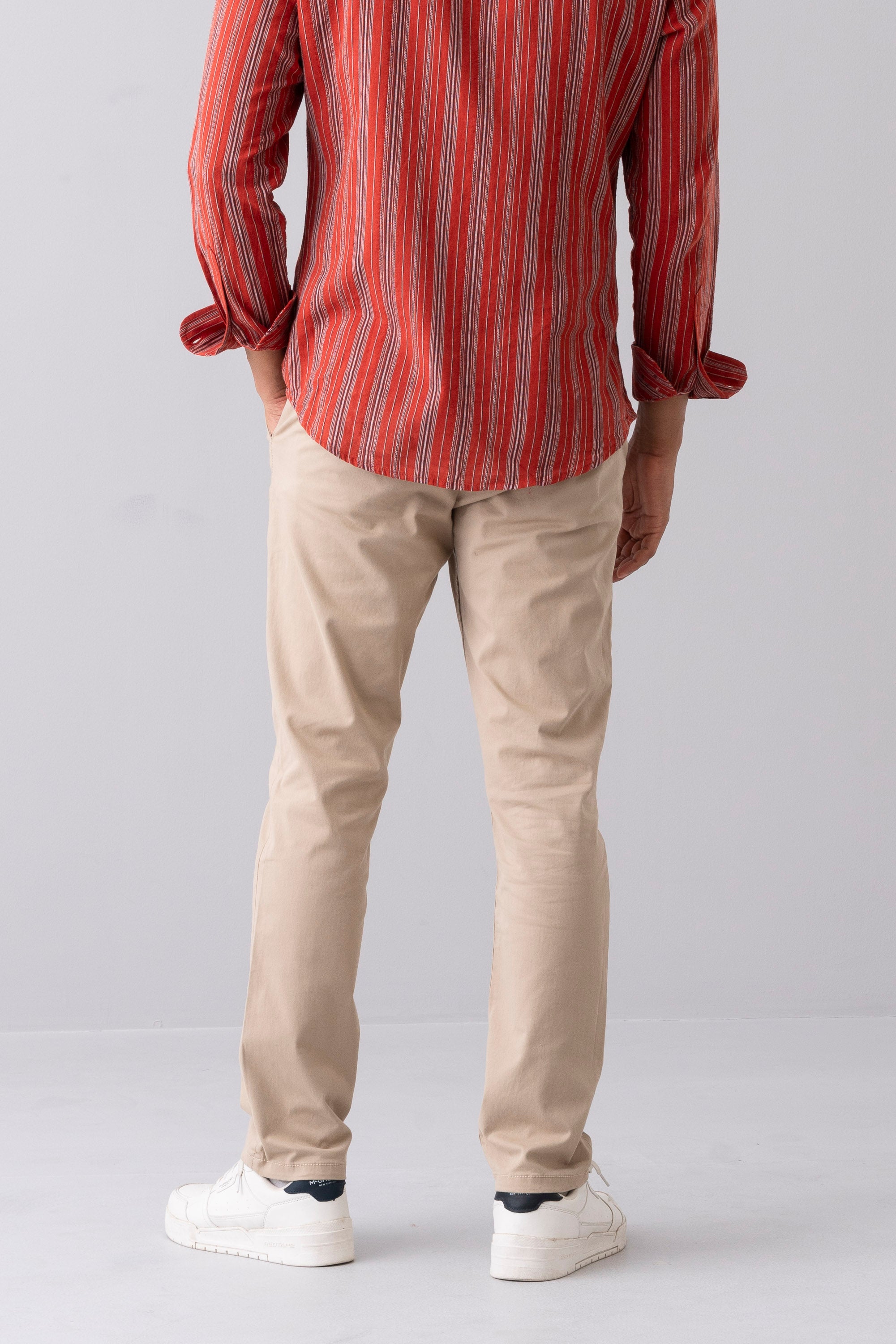 Regular fit that moves with you, ensuring maximum flexibility and ease of movement. Surface with smooth stretch quality. Functional zip fly with 2 front pocket and 2 back pockets. providing ample storage space for your essentials, such as your phone, wallet, and keys. Brand label at inside waist middle. Garment wash with sustainable materials. Soft hand feel with peach finish. Made from high-quality materials, Designed to withstand everyday wear and tear, ensuring that it lasts for years to come. With a sleek and modern design, our pant is perfect for any casual occasion, whether you're running errands or going out for a casual dinner. Easy to care for and maintain, making it a hassle-free addition to your wardrobe.