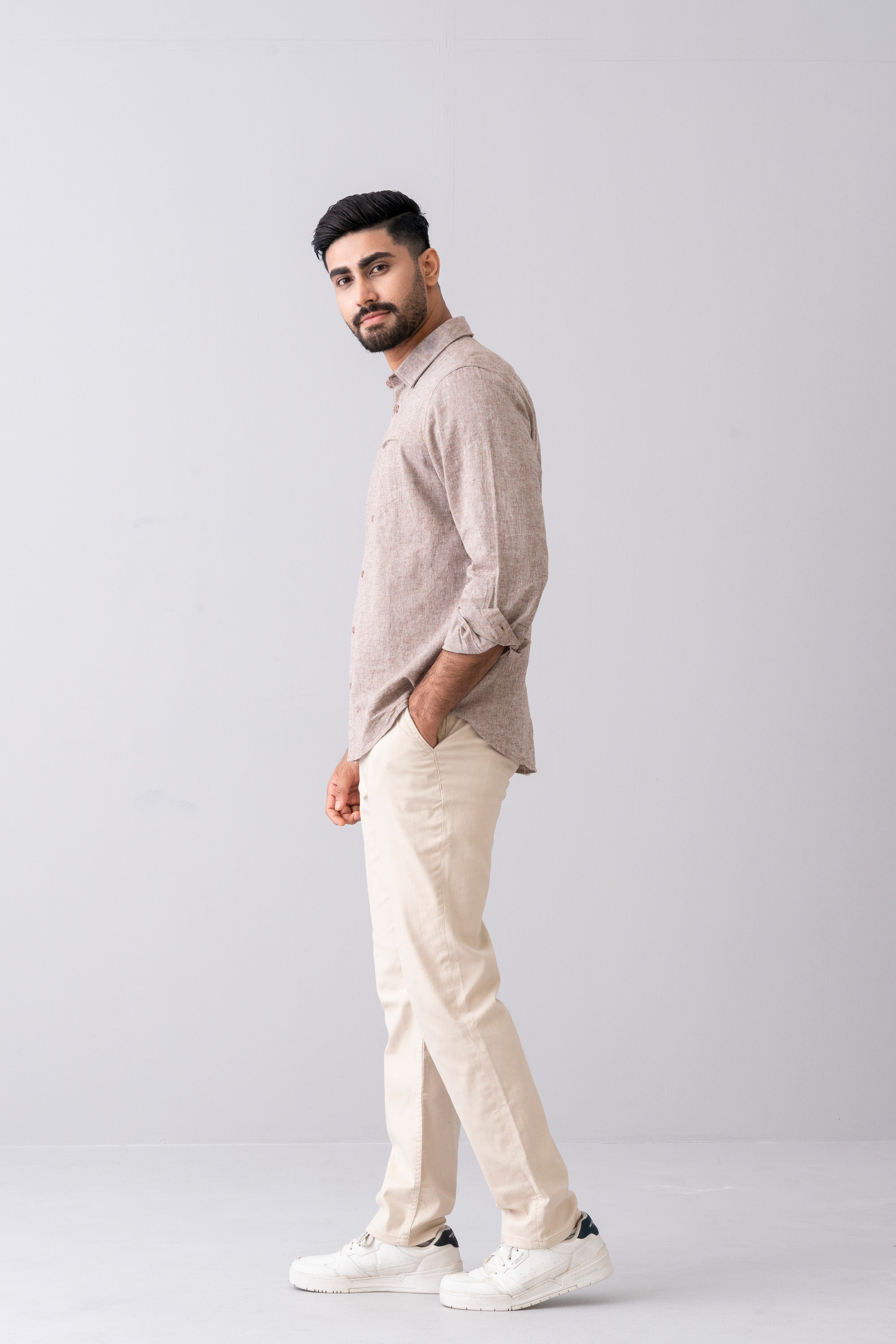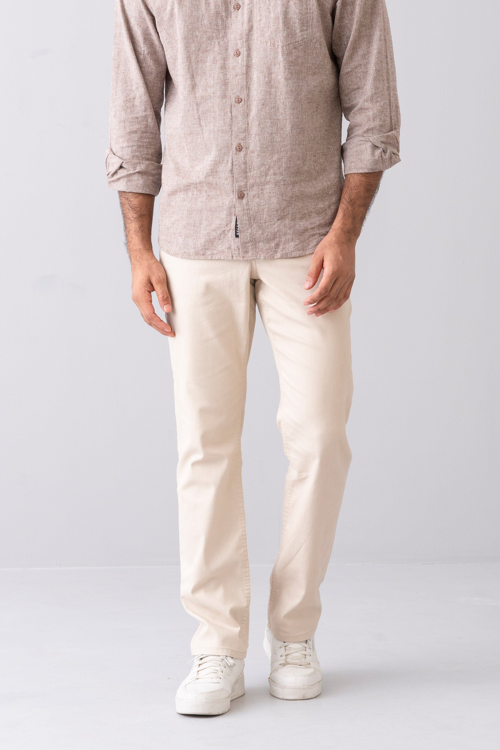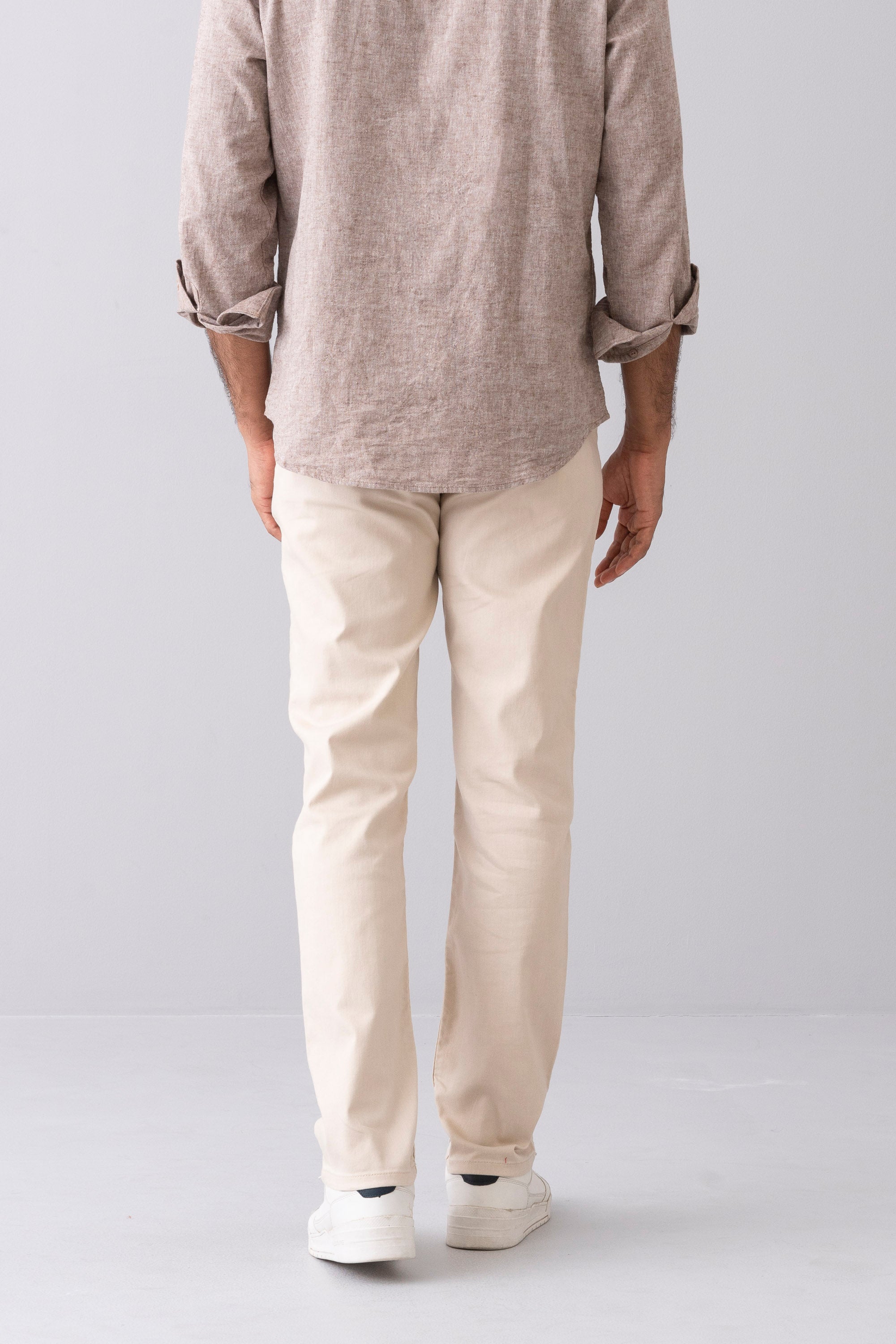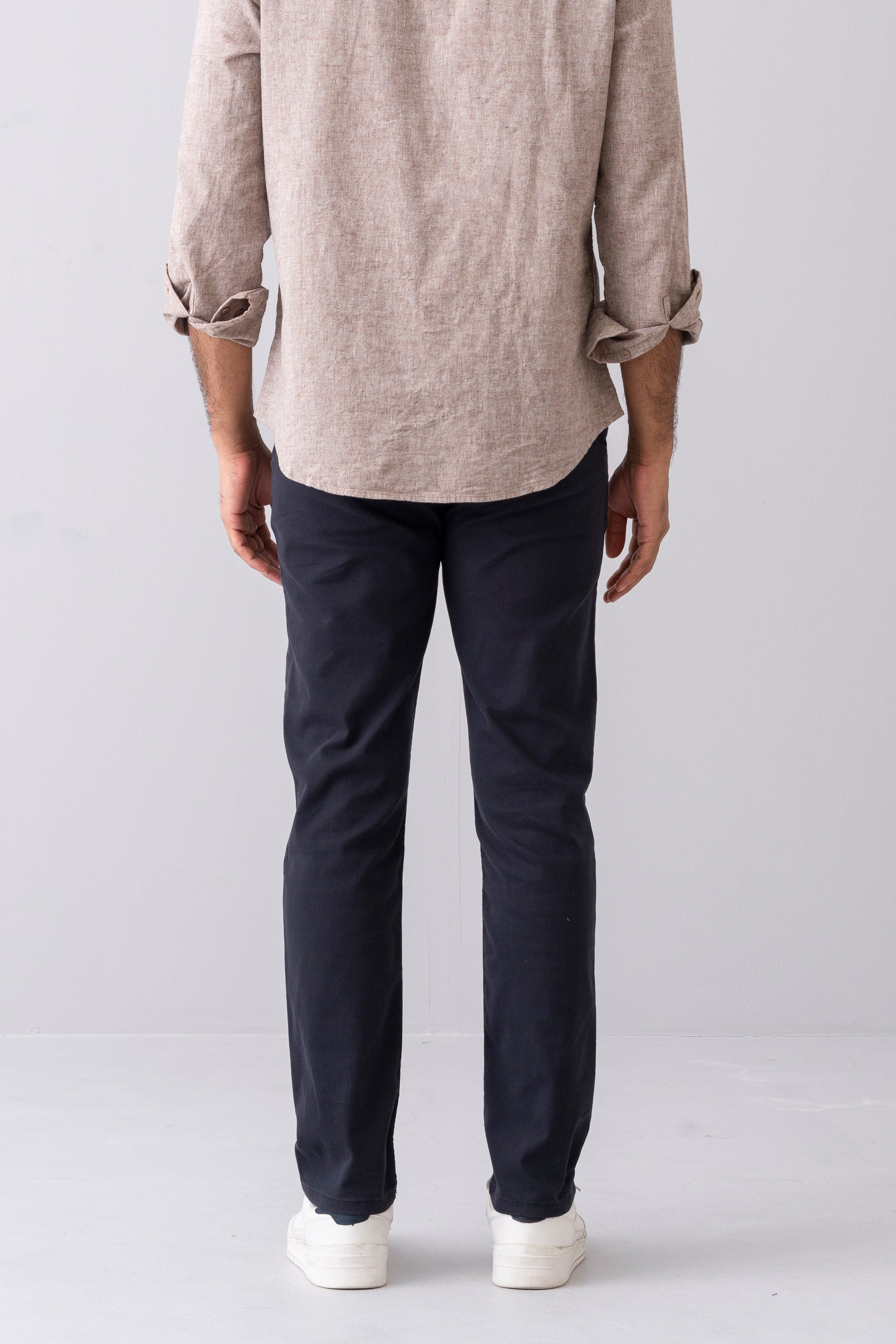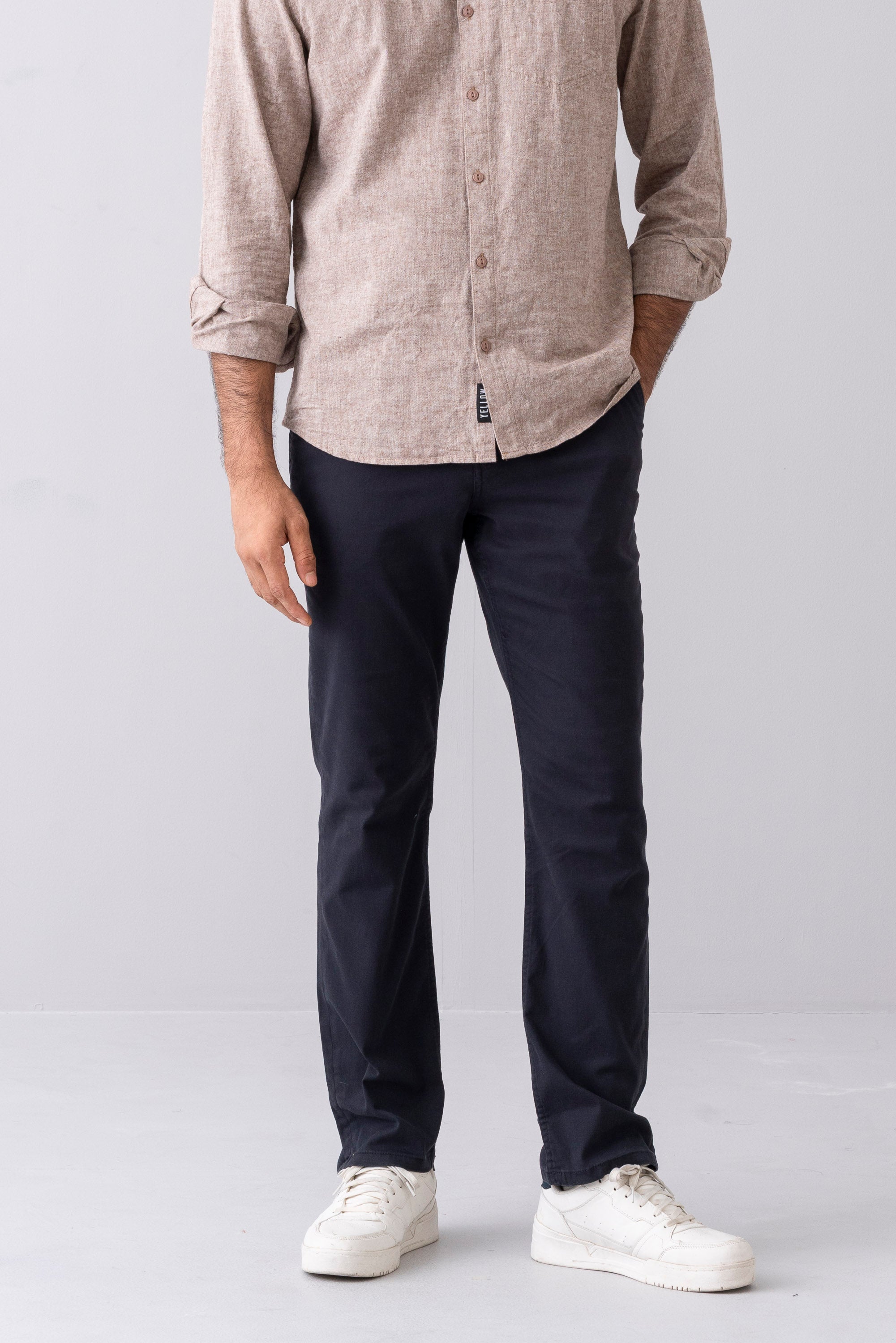Regular fit that moves with you, ensuring maximum flexibility and ease of movement. Surface with smooth stretch quality. Functional zip fly with 2 front pocket and 2 back pockets. providing ample storage space for your essentials, such as your phone, wallet, and keys. Brand label at inside waist middle. Garment wash with sustainable materials. Soft hand feel with peach finish. Made from high-quality materials, Designed to withstand everyday wear and tear, ensuring that it lasts for years to come. With a sleek and modern design, our pant is perfect for any casual occasion, whether you're running errands or going out for a casual dinner. Easy to care for and maintain, making it a hassle-free addition to your wardrobe.