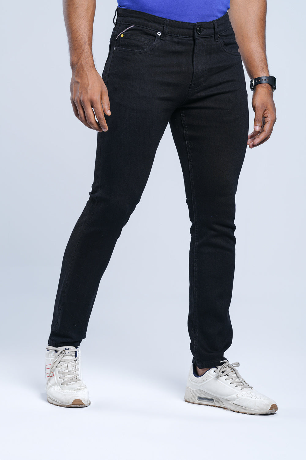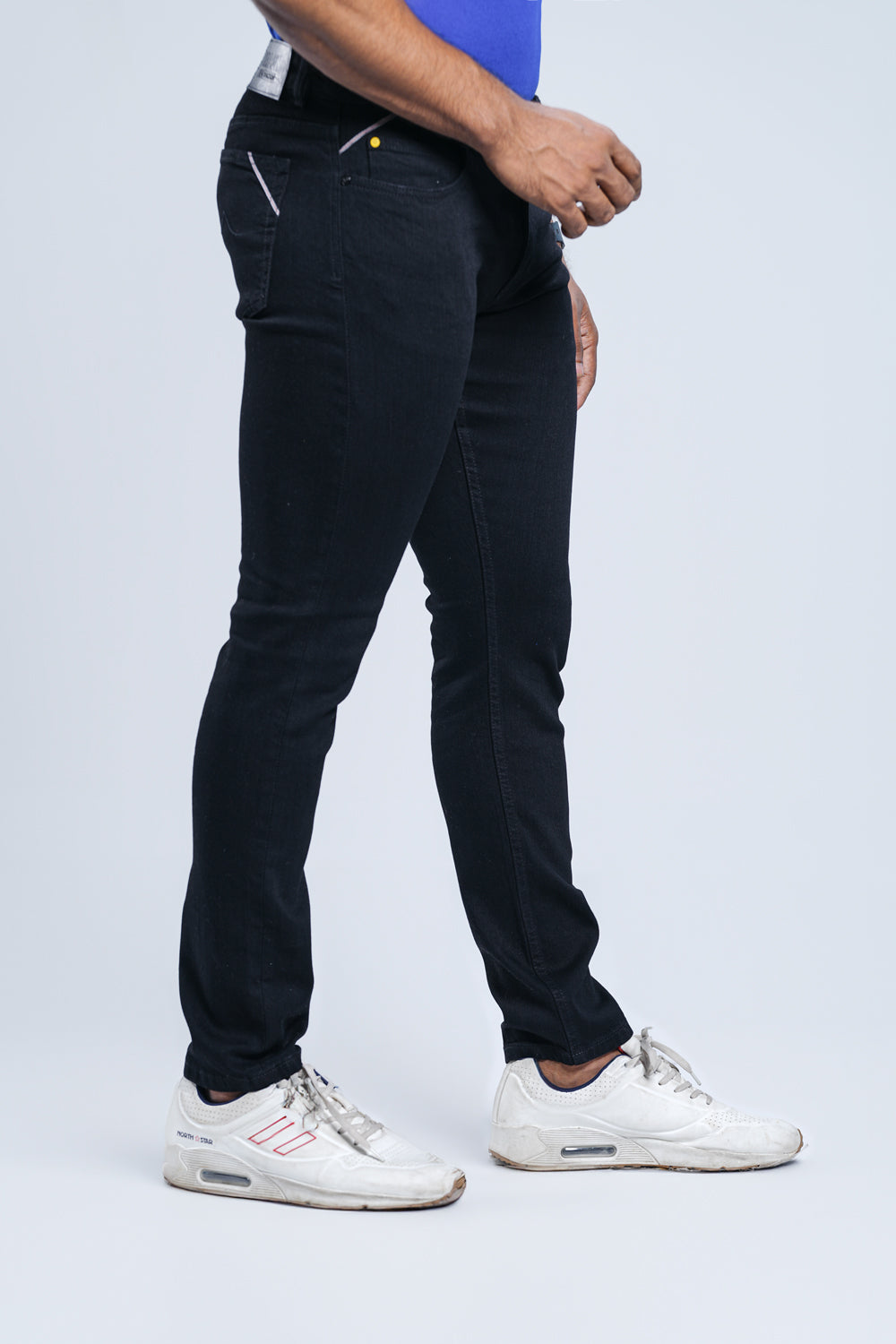 • Black selvedge fabric with coin pocket detailing gives these stretch jeans a smart twist.