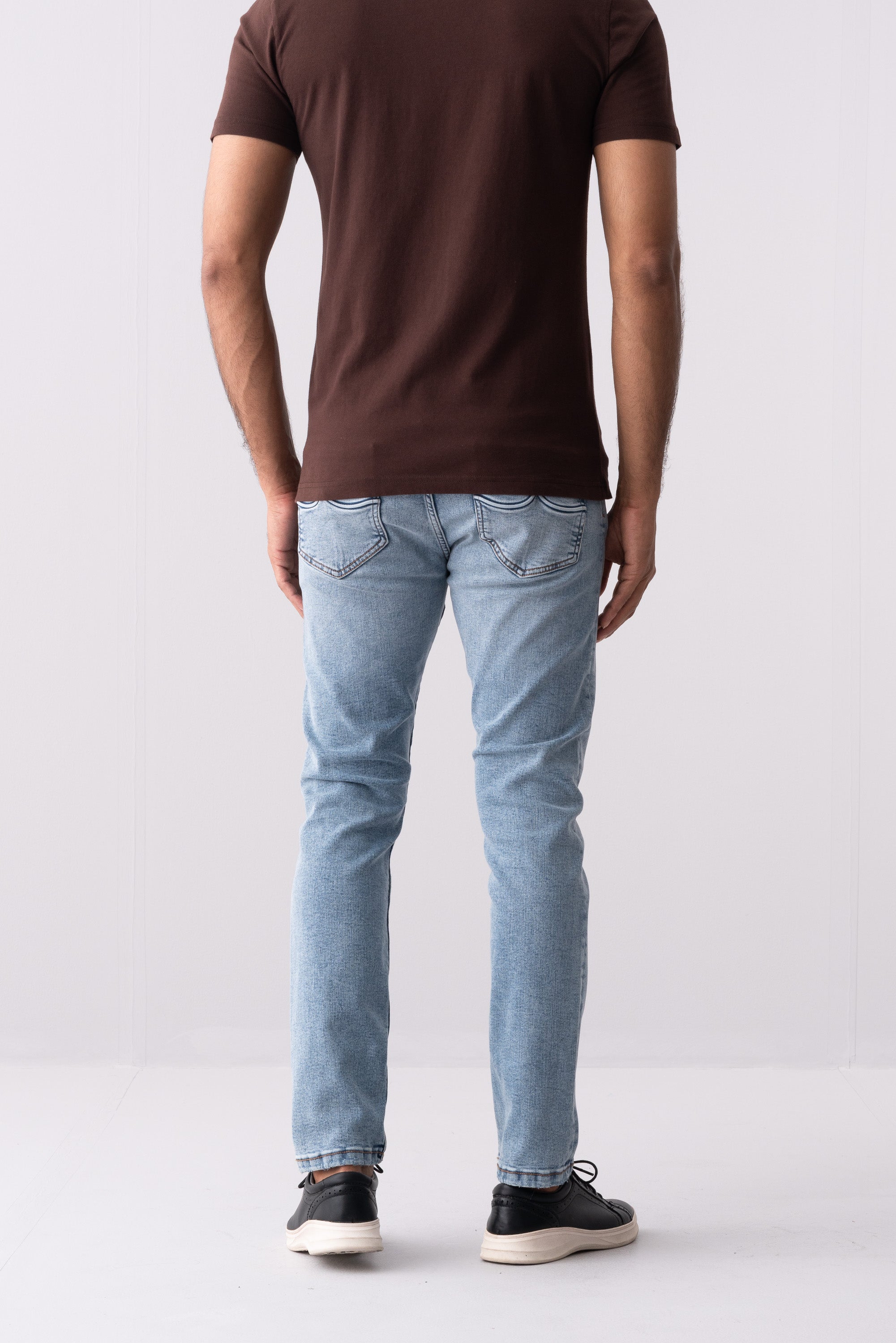 Distressed Blue Indigo fabric with coin pocket detailing and whiskering gives these jeans a smart twist. This garments made with special fabric made from yarn that gives the customer super comfy wearing experiences. Belt loops, Zip fly & button fastening with YELLOW branded Buttons. Brand Signature at back pocket. Slim fit with Extra-soft to the touch, excellent stretch and recovery to the body yet are still easy to wear.