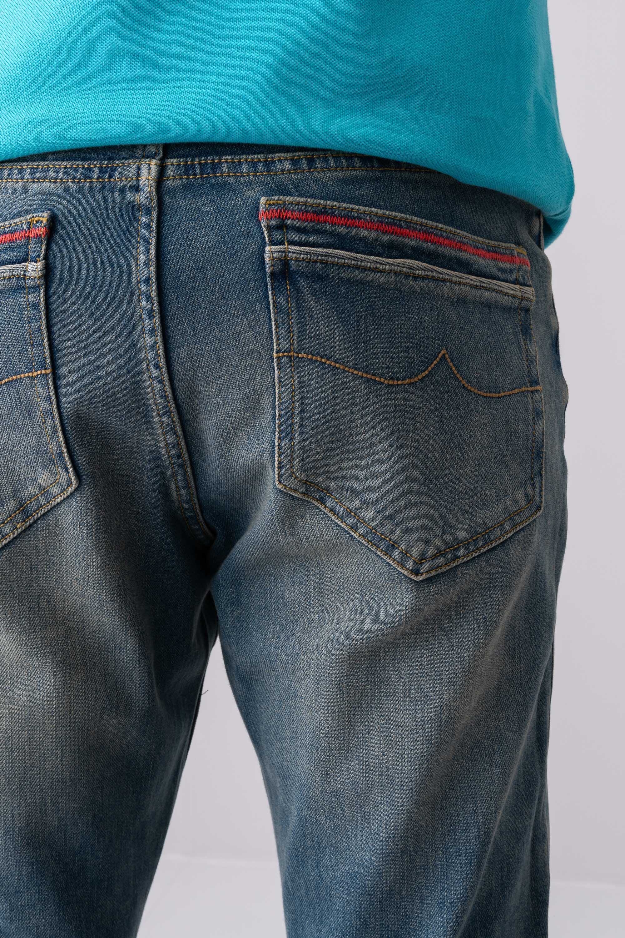 Dark Indigo fabric with coin pocket gives these stretch jeans a smart twist. This garments made with special fabric made from yarn that gives the customer super comfy wearing experiences. Belt loops, Zip fly & button fastening with YELLOW branded Buttons. Signature silicone emboss at waist inside, Brand Signature at back pocket. Hipster fit with Extra-soft to the touch, excellent stretch and recovery to the body yet are still easy to wear.
