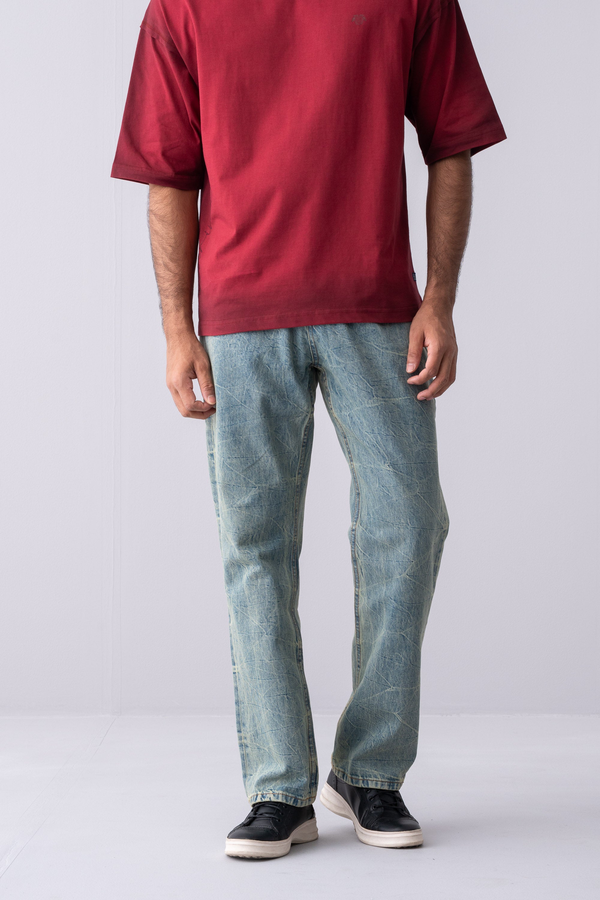 Men’s baggy fit denim crafted from 100% cotton, featuring a rugged garage wash for a worn-in look. Detailed with contrast stitching, a metal logo shank button, and signature embroidery on the back pocket for a distinctive finish.