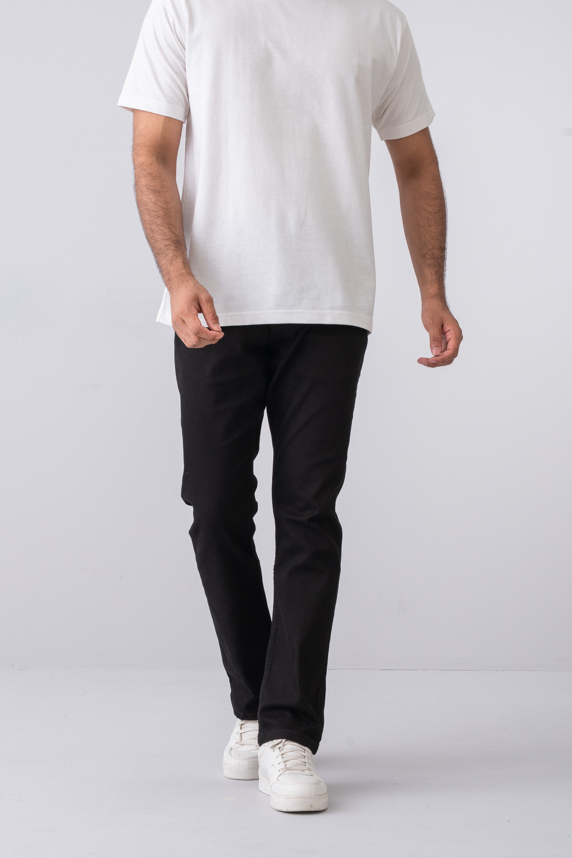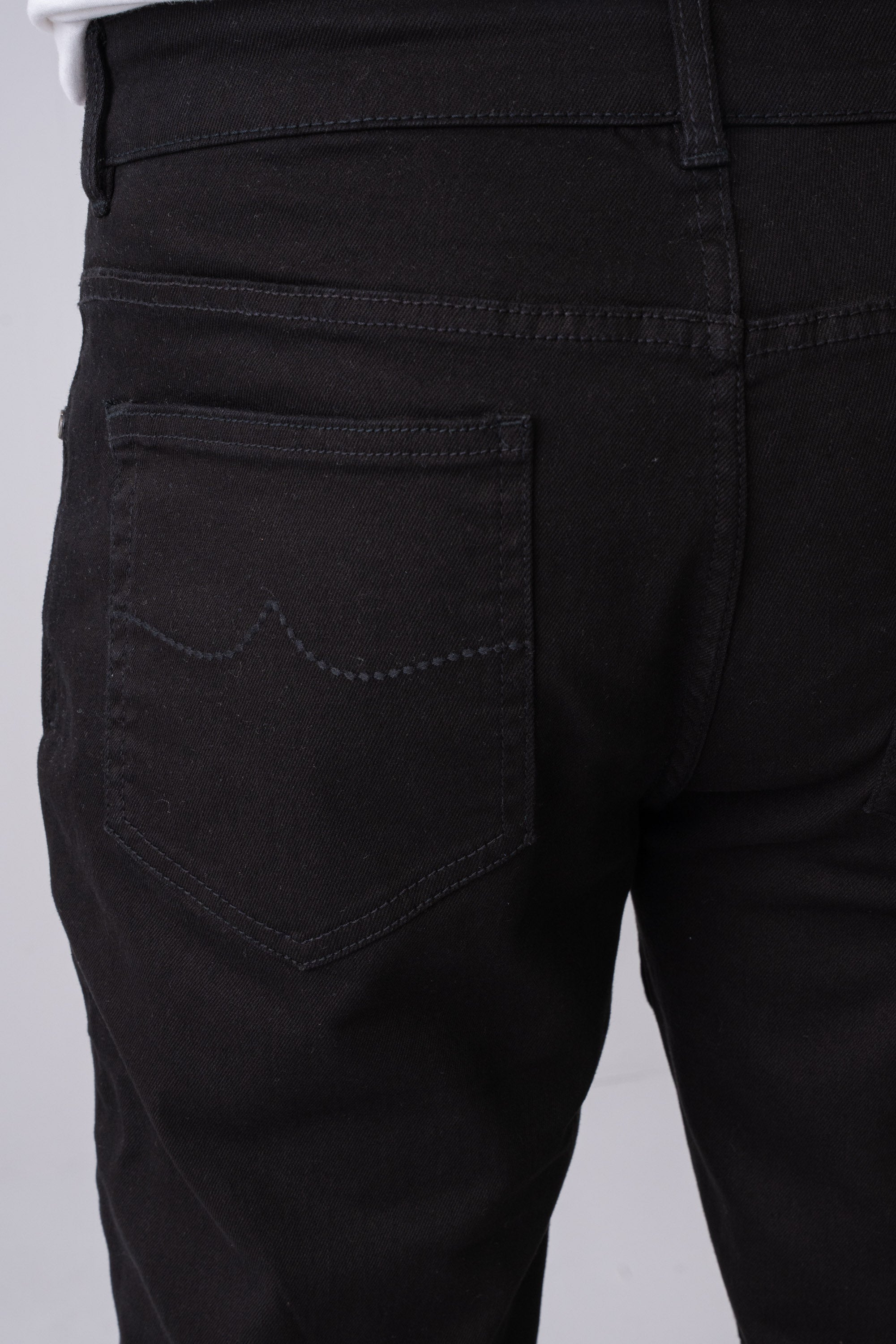 Black fabric with coin pocket detailing gives these stretch jeans a smart twist.This garments made with special fabric made from yarn that gives the customer super comfy wearing experiences. Belt loops,Zip fly & button fastening with YELLOW branded Buttons Signature embroidery at waist inside, brand Signature at back pocket. Straight fit with Extra-soft to the touch, excellent stretch and recovery to the body yet are still easy to wear.