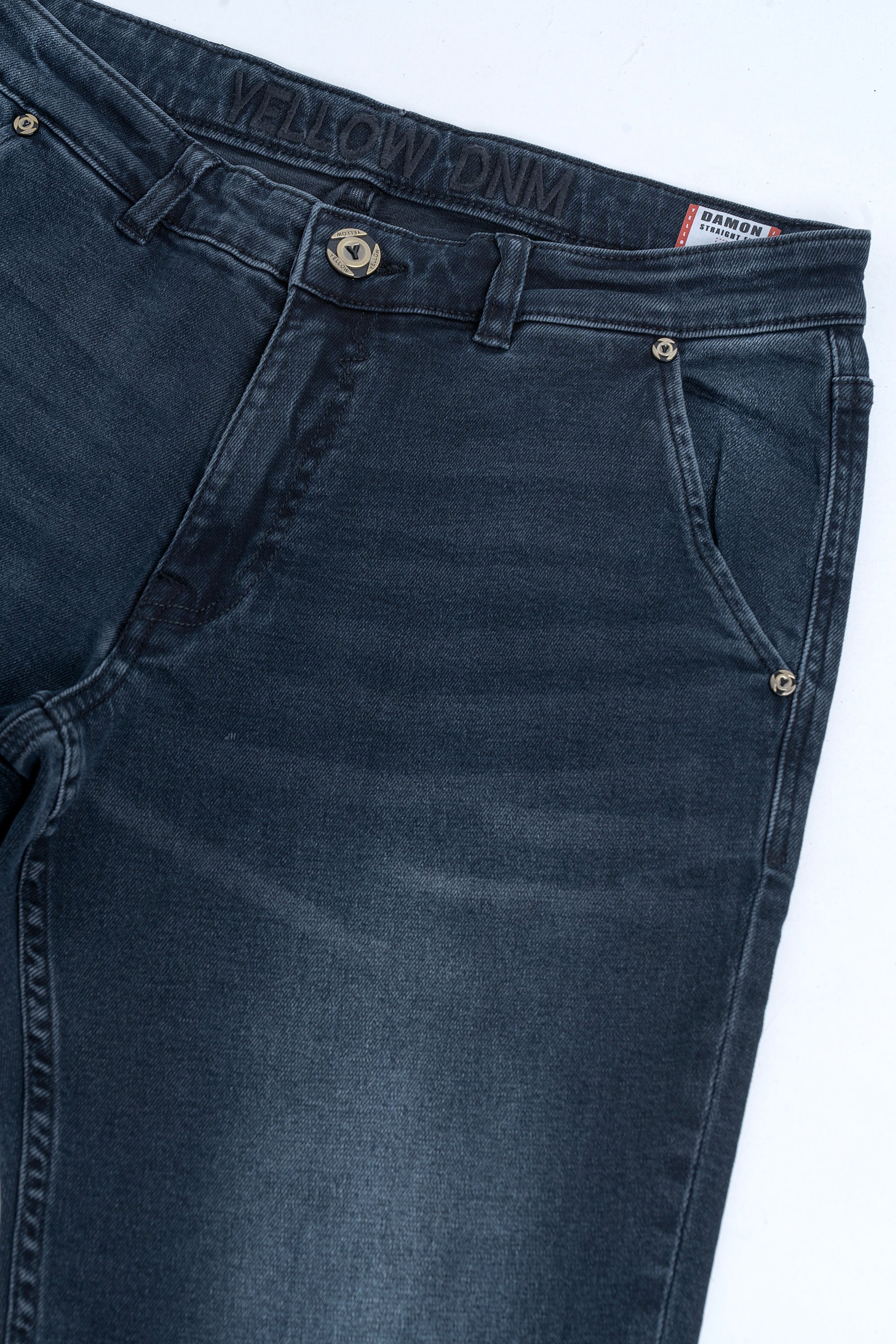 Black fabric with coin pocket detailing gives these stretch jeans a smart twist. This garments made with special fabric made from yarn that gives the customer super comfy wearing experiences. Belt loops, Zip fly & button fastening with YELLOW branded Buttons Signature embroidery at waist inside, brand Signature at back pocket. Straight fit with Extra-soft to the touch, excellent stretch and recovery to the body yet are still easy to wear.