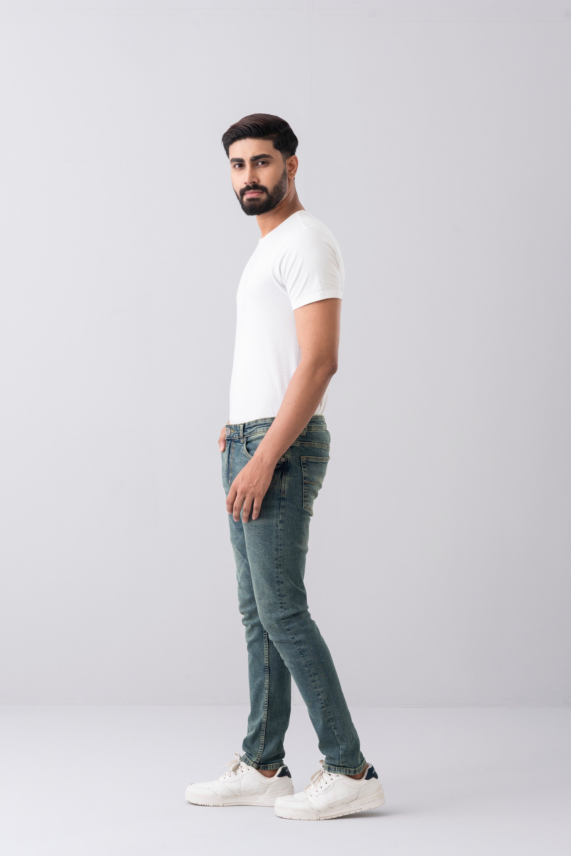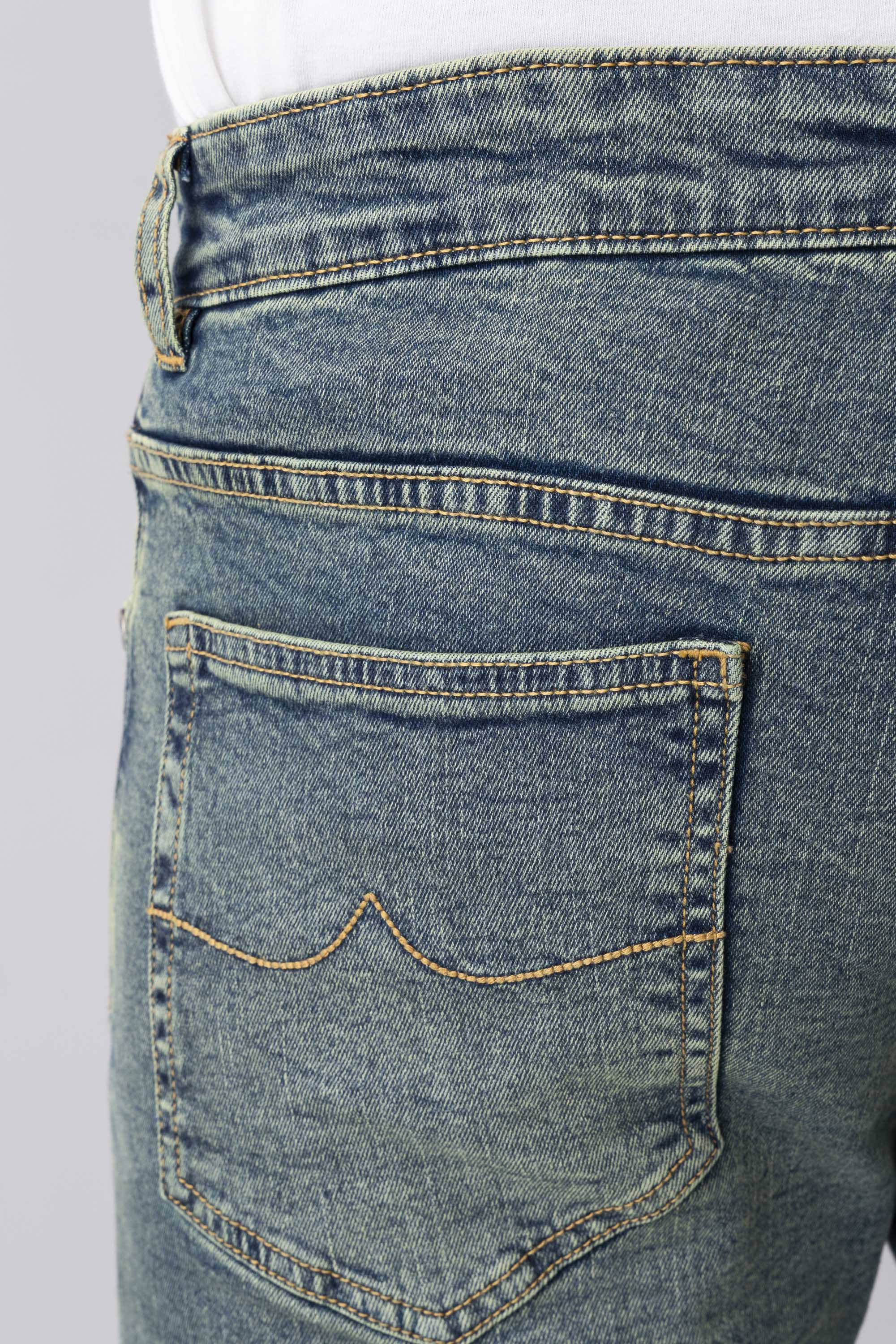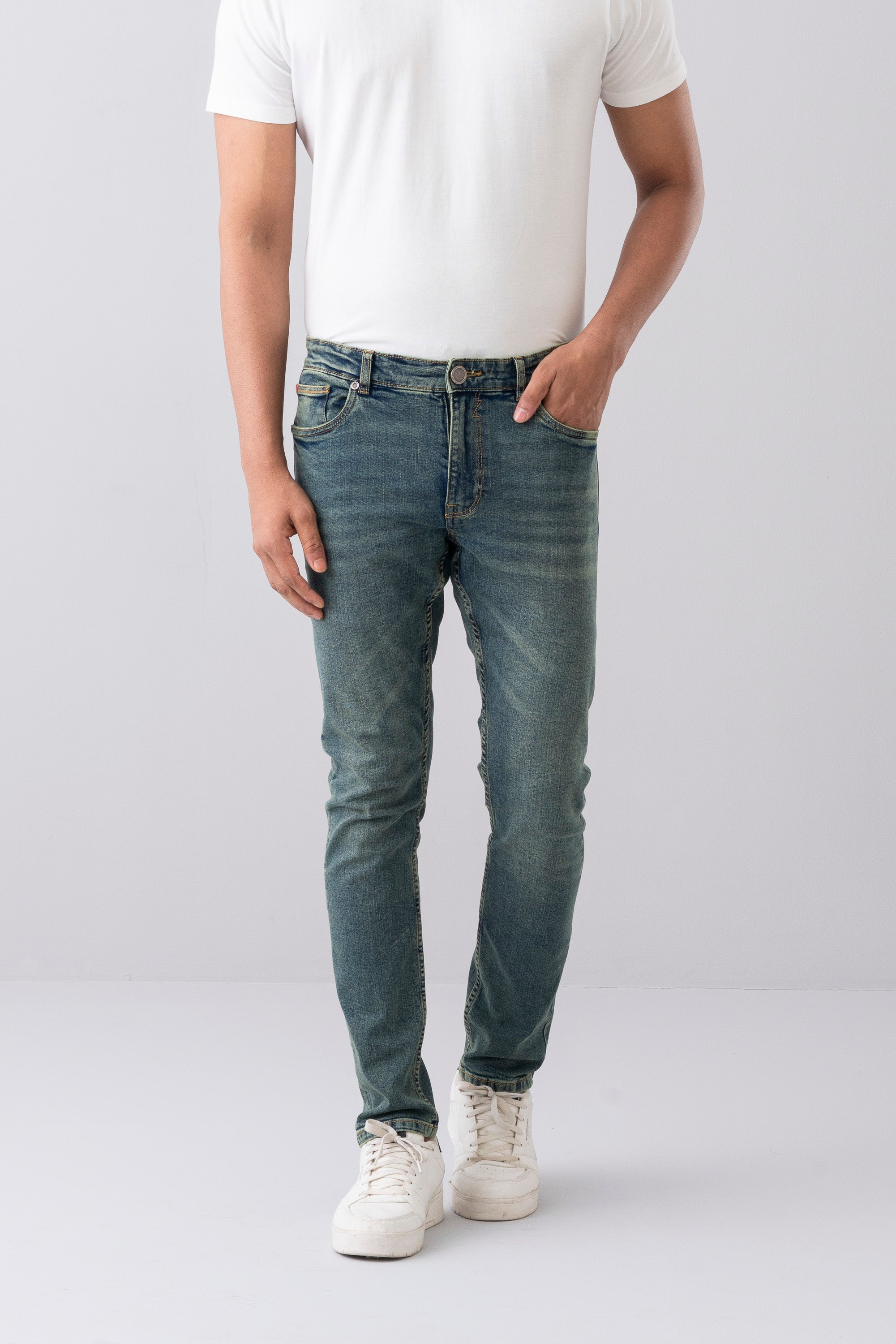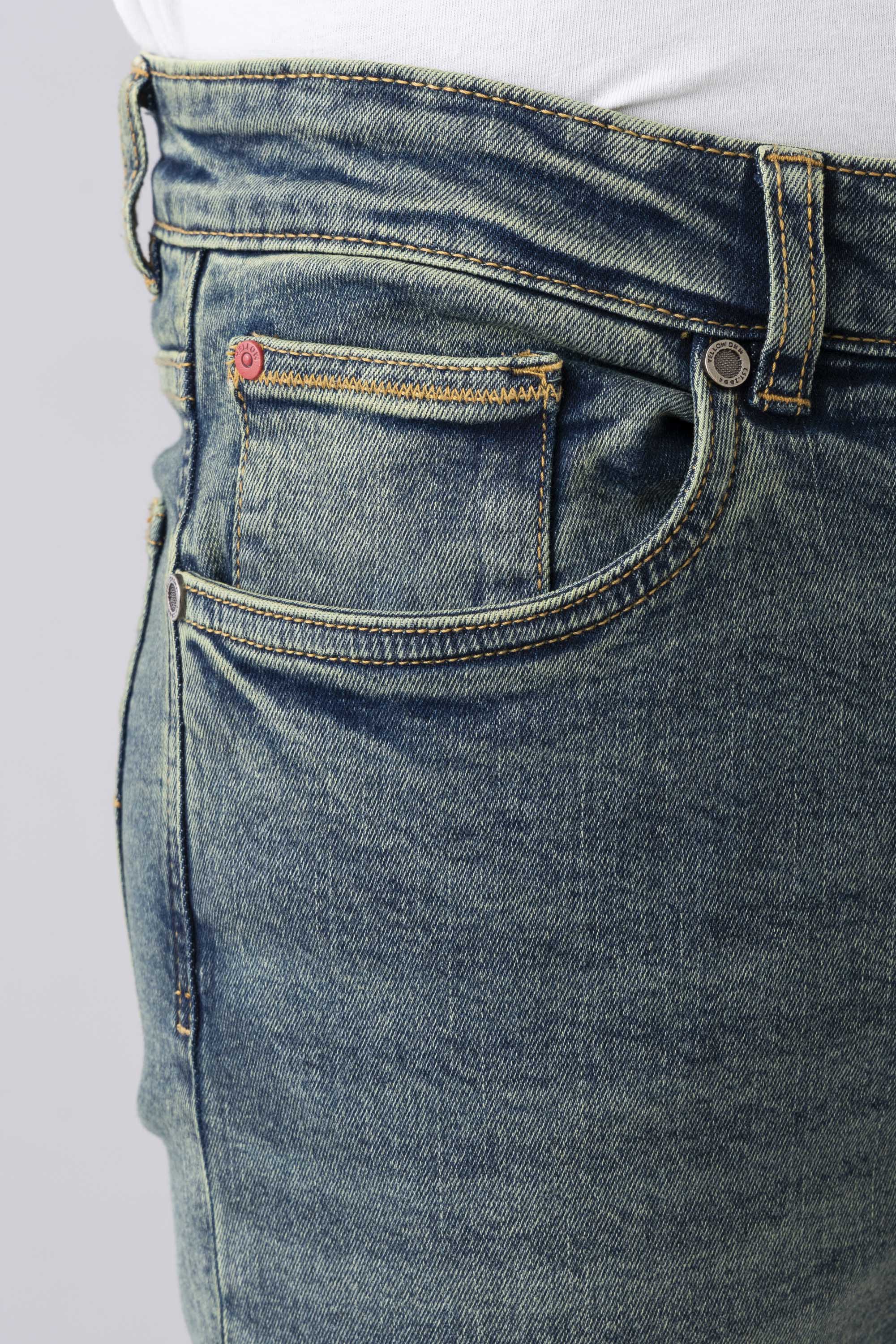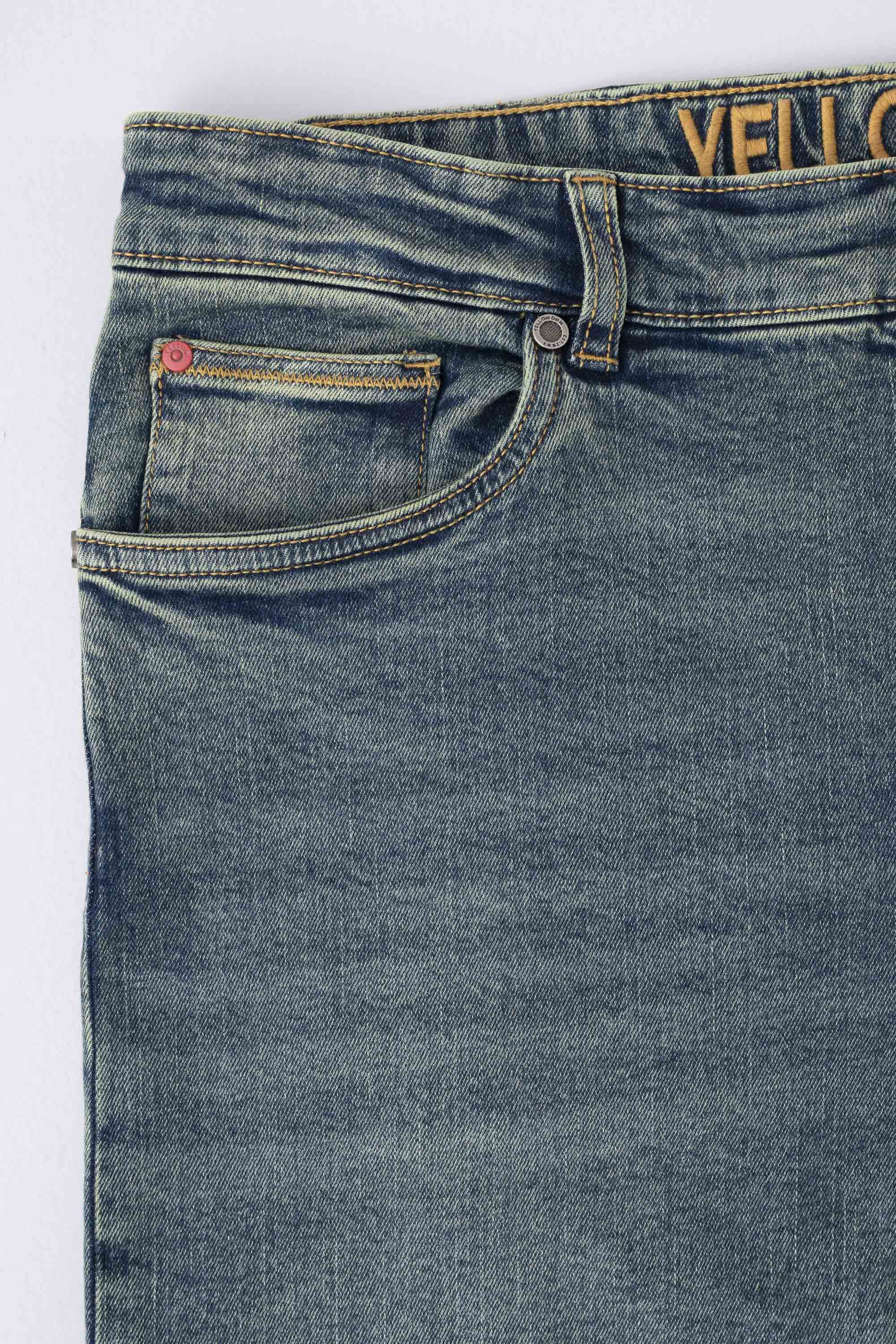 Olive green denim fabric with coin pocket gives these stretch jeans a smart twist.This garments made with special fabric made from yarn that gives the customer super comfy wearing experiences. Belt loops,Zip fly & button fastening with YELLOW branded Buttons, brand Signature at back pocket. Slim fit with Extra-soft to the touch, excellent stretch and recovery to the body yet are still easy to wear.