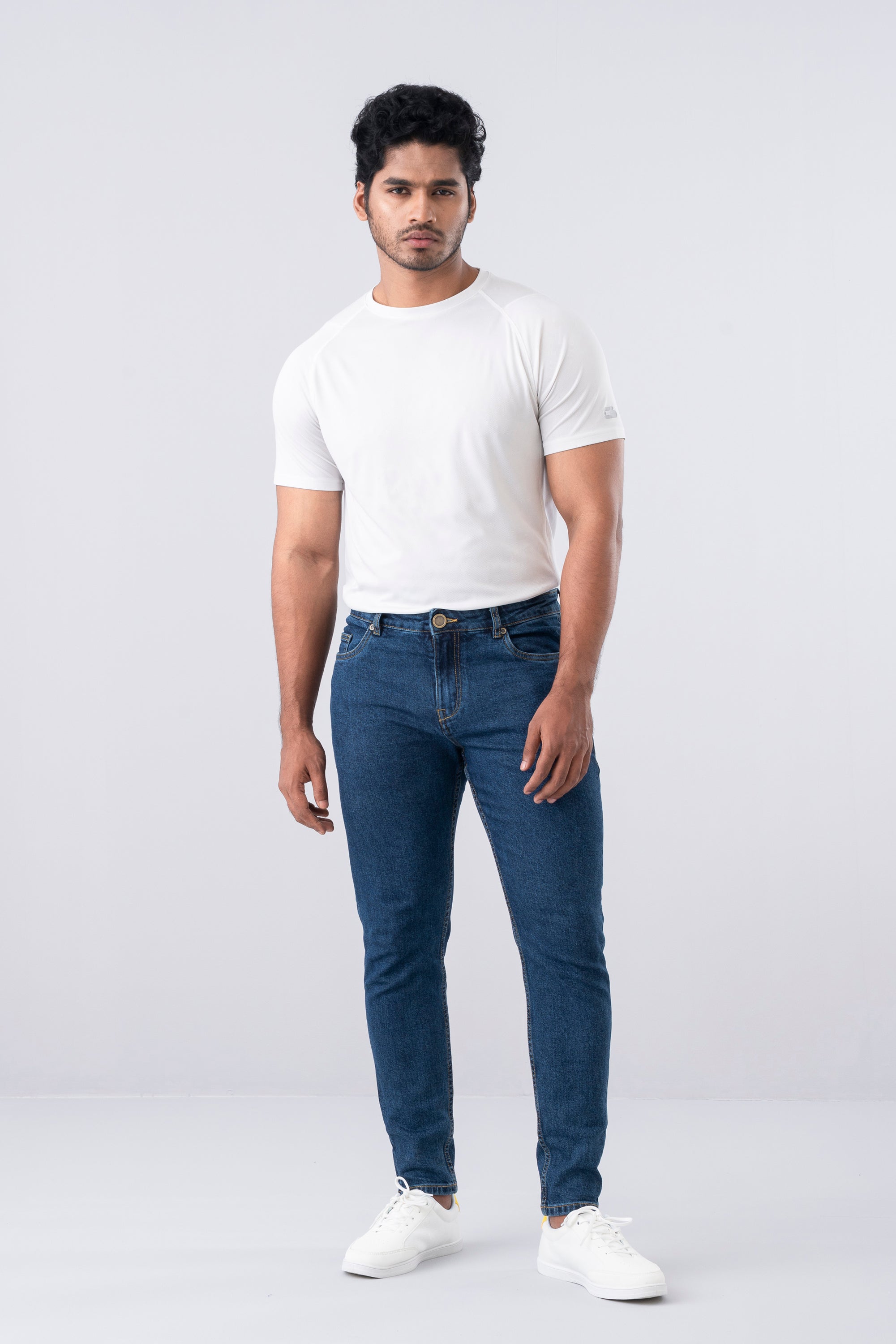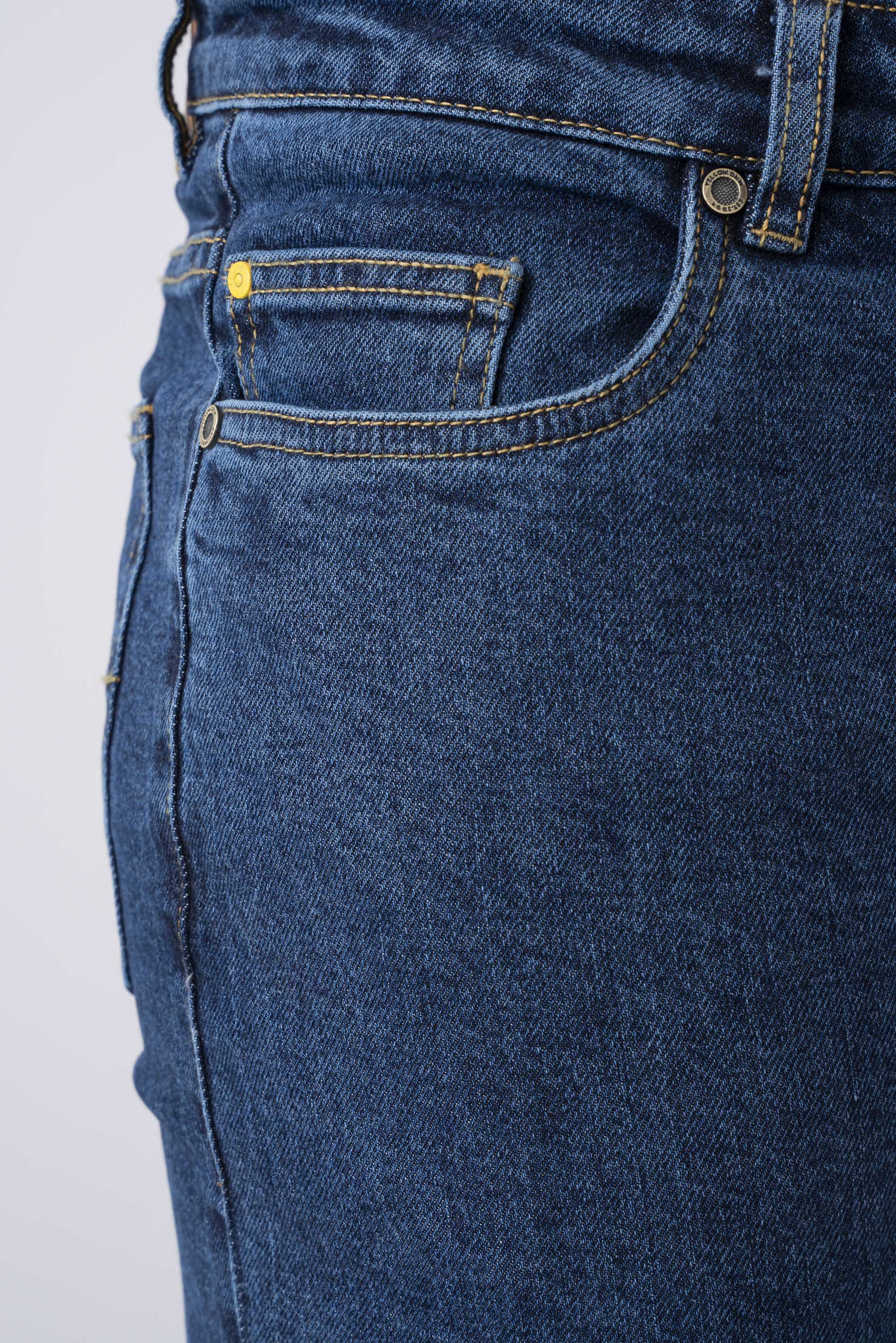 Indigo fabric with coin pocket gives these jeans a smart twist. This garments made with special fabric made from yarn that gives the customer super comfy wearing experiences. Belt loops,Zip fly & button fastening with YELLOW branded Buttons Signature embroidery at waist inside, brand Signature at back pocket. Carrot fit with Extra-soft to the touch.