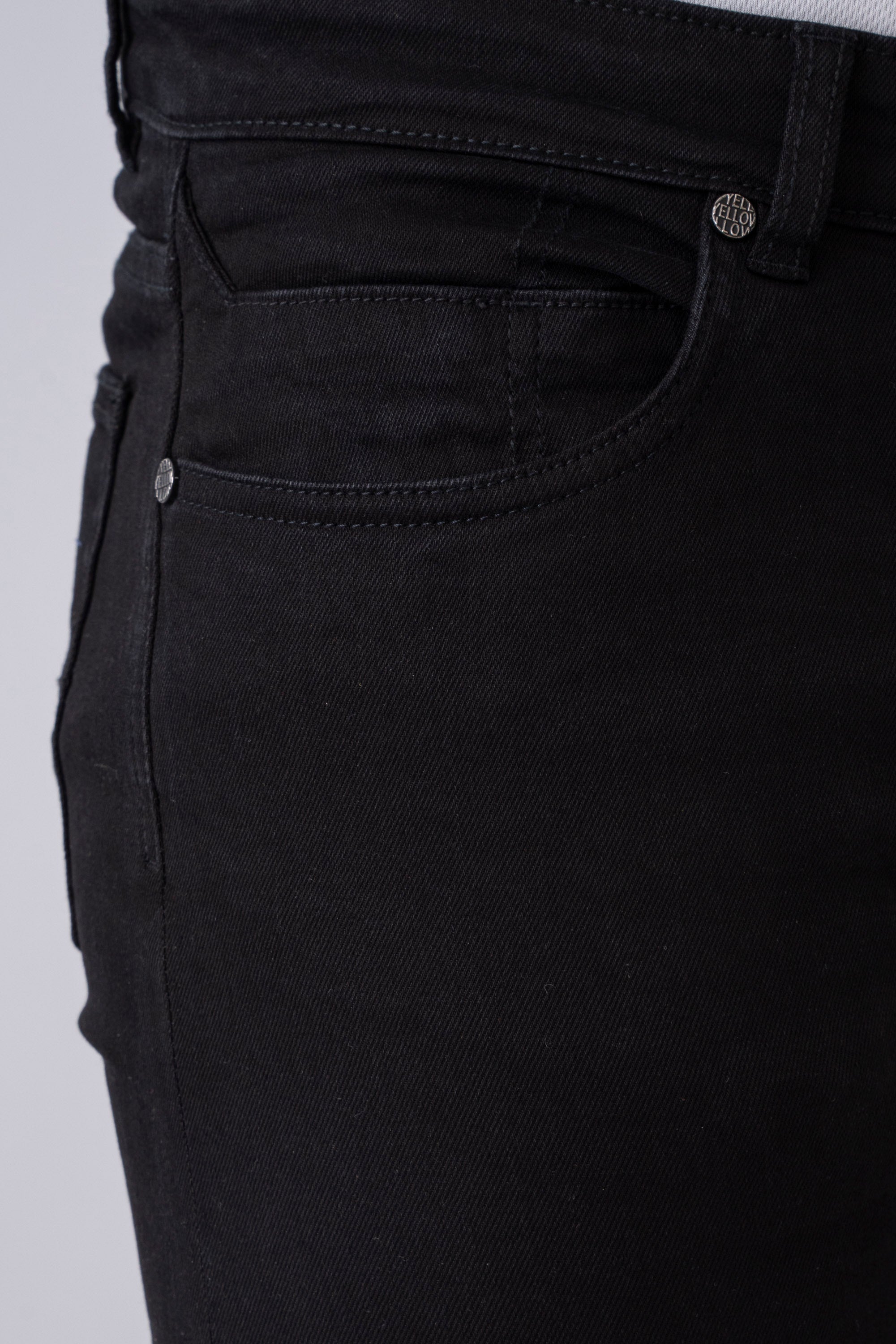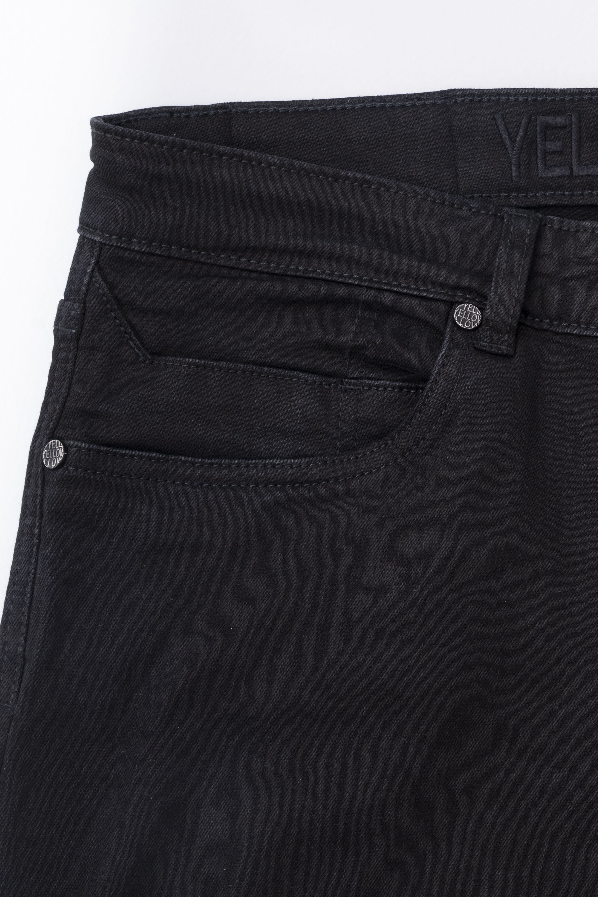 Black fabric with coin pocket detailing gives these stretch jeans a smart twist.This garments made with special fabric made from yarn that gives the customer super comfy wearing experiences. Belt loops, Zip fly & button fastening with YELLOW branded Buttons, Signature embroidery at waist inside, Brand Signature at back pocket