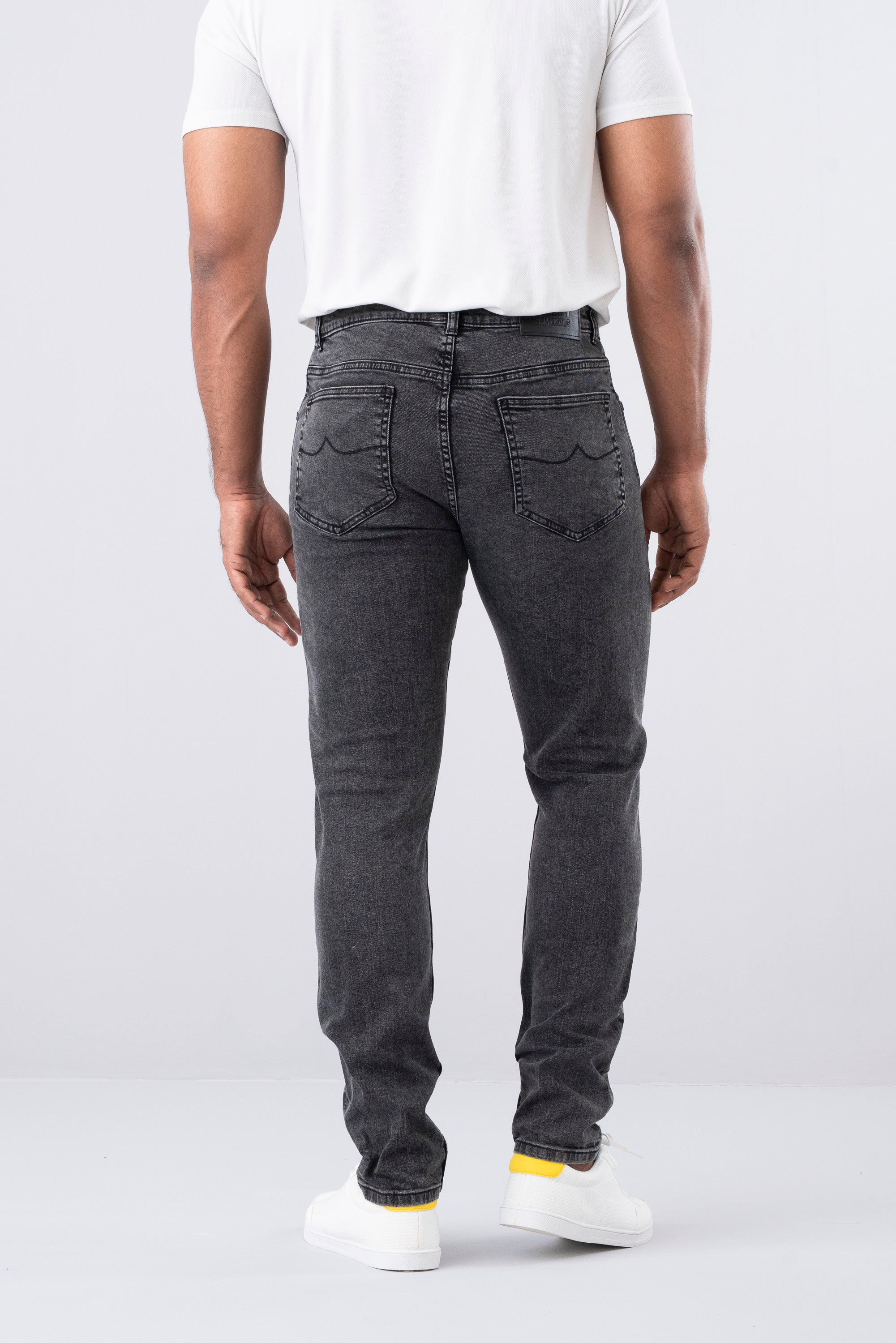Black fabric with coin pocket detailing gives these stretch jeans a smart twist.