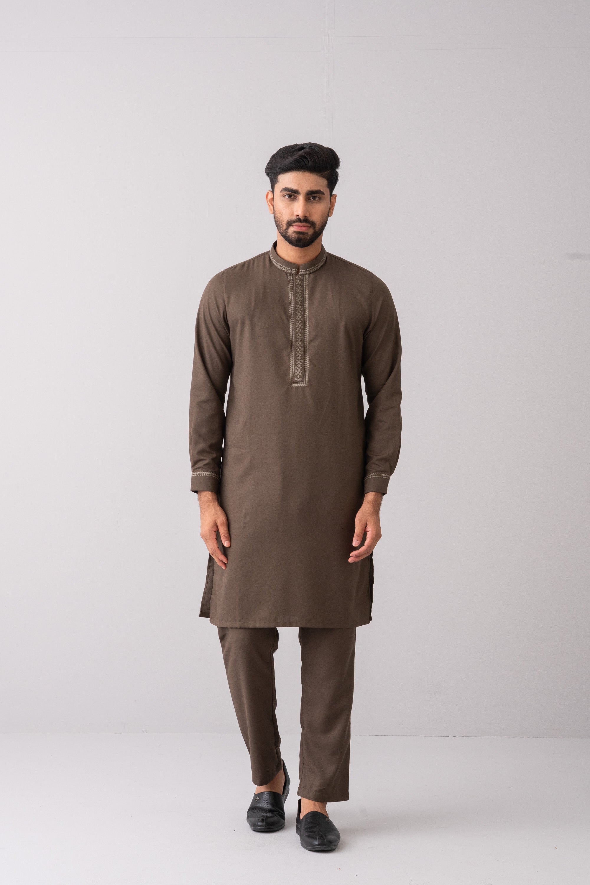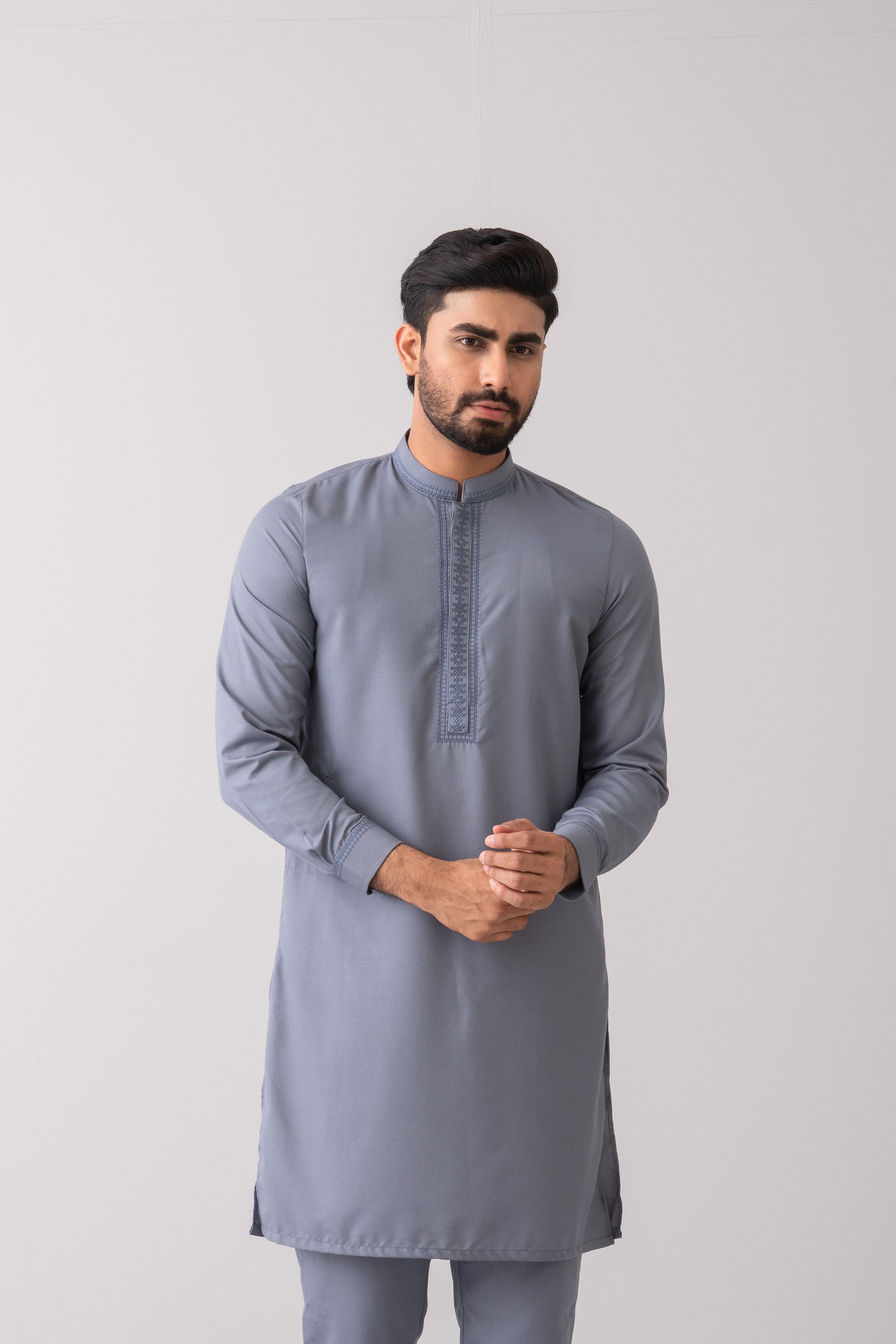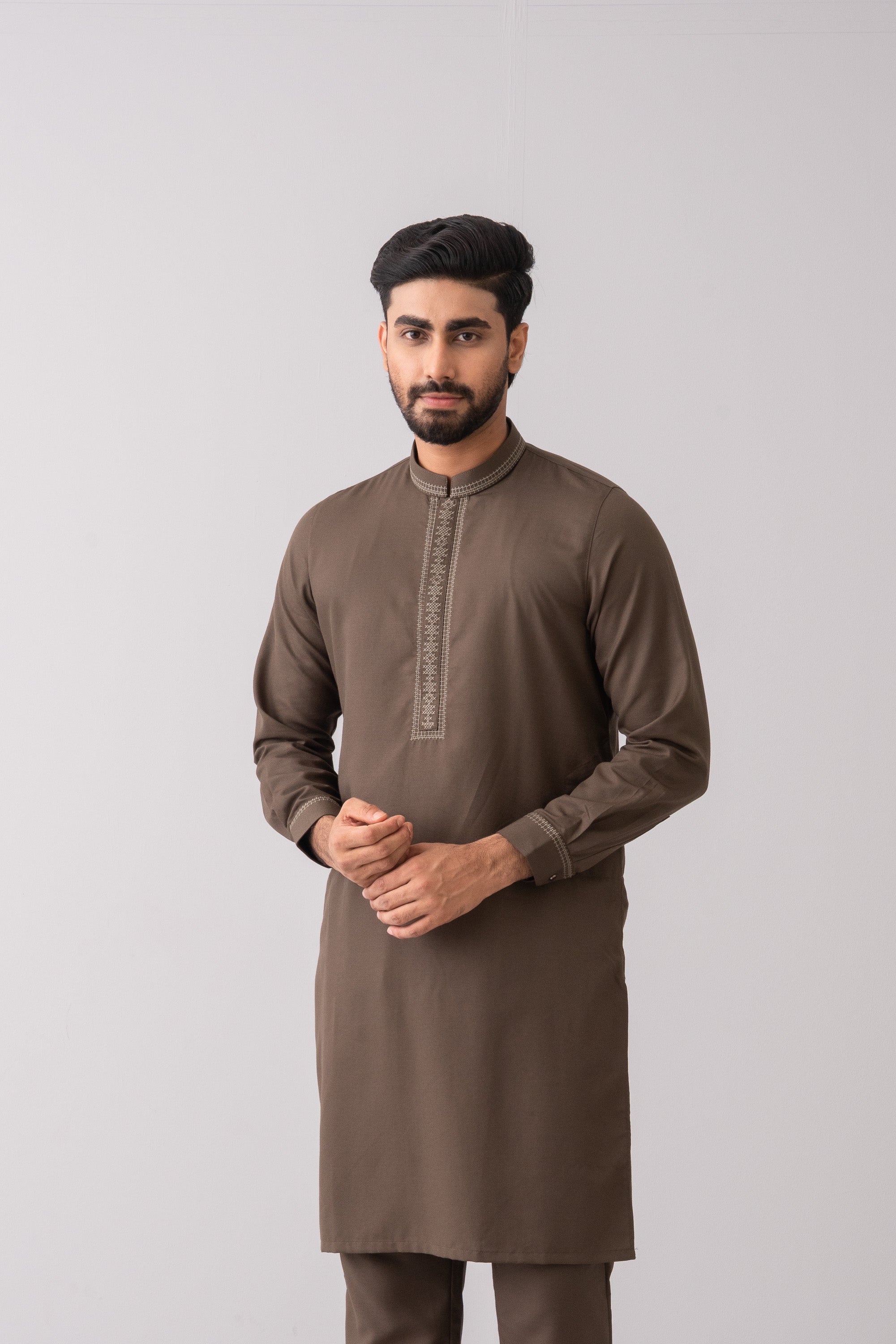 This regular-fit Ethnic kurta set features a pajama and embroidery detailing at band, cuff, placket along with around placket.This semi-formal style made with breathable premium boski fabric for a refined finish. Perfect for a timeless and elegant look.