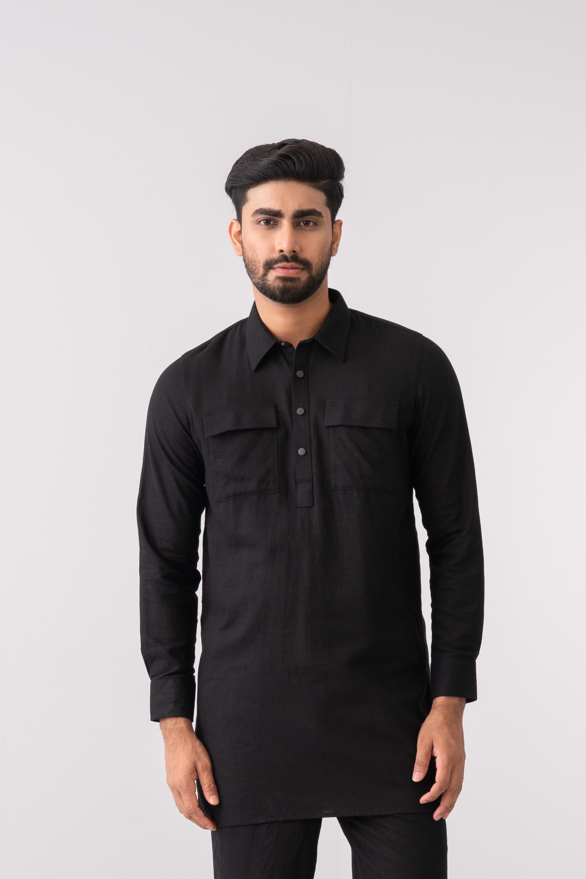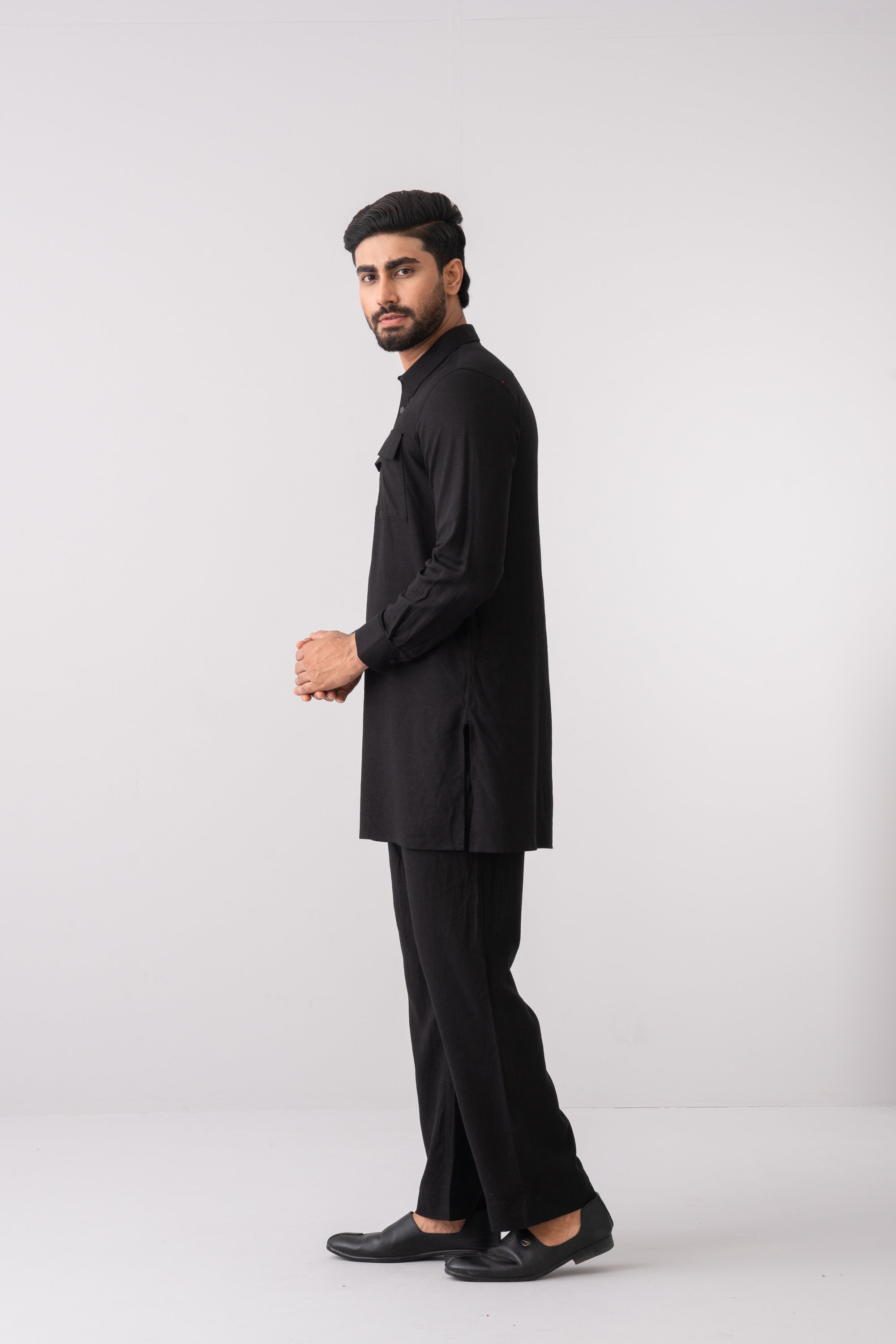 This regular-fit Ethnic kurta set features a pajama and collar, double flap pocket detailing along with DTM snap buttons.This semi-formal style made with breathable premium blended fabric for a refined finish. Perfect for a timeless and elegant look.