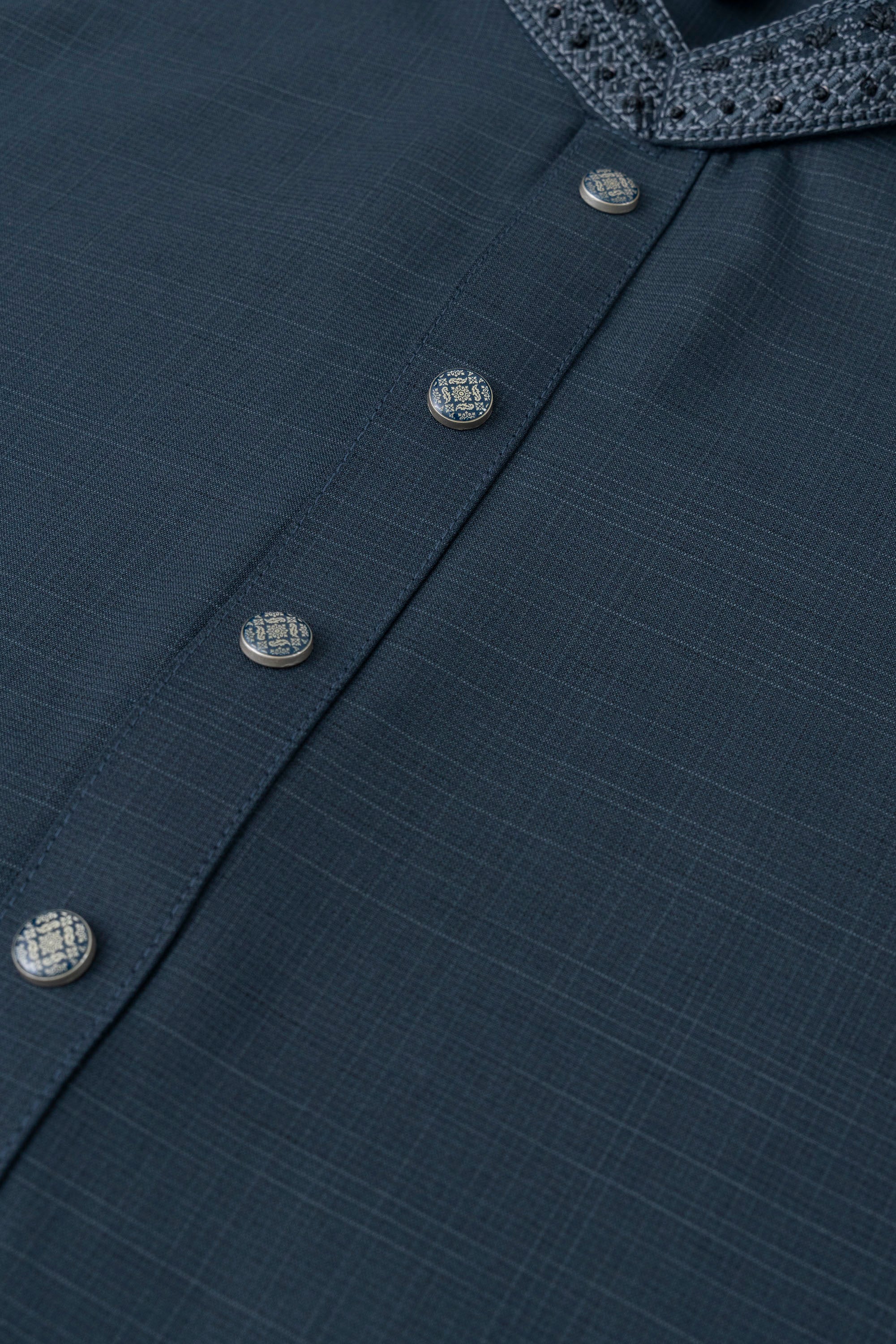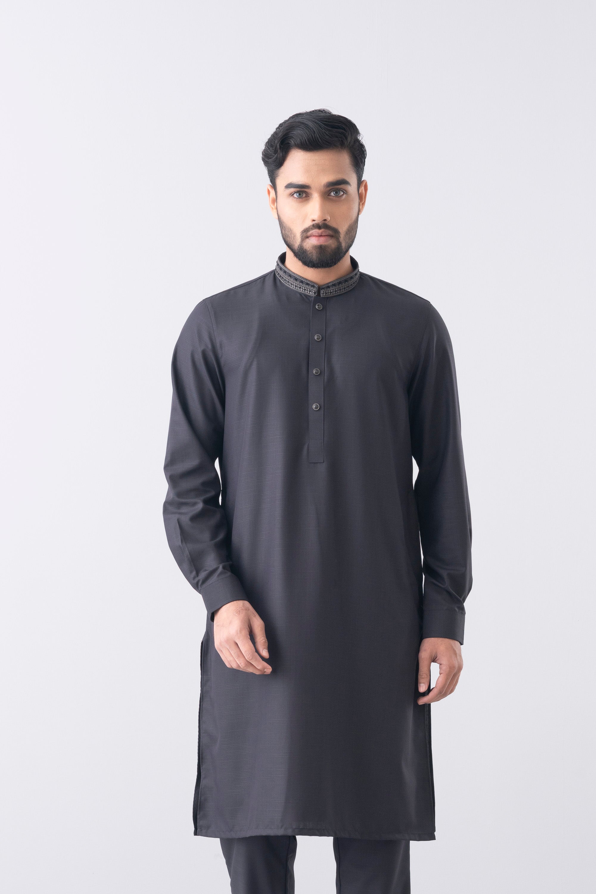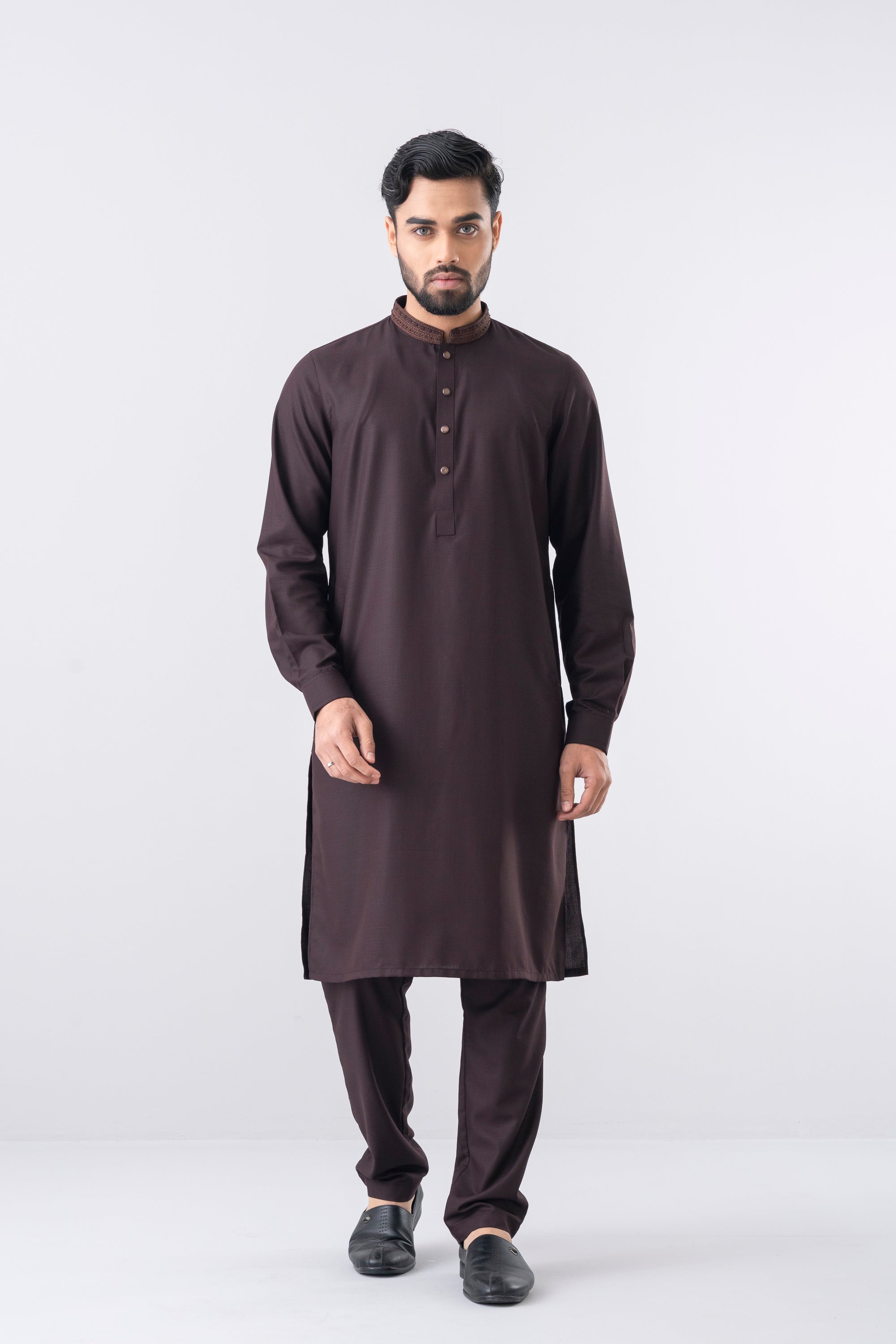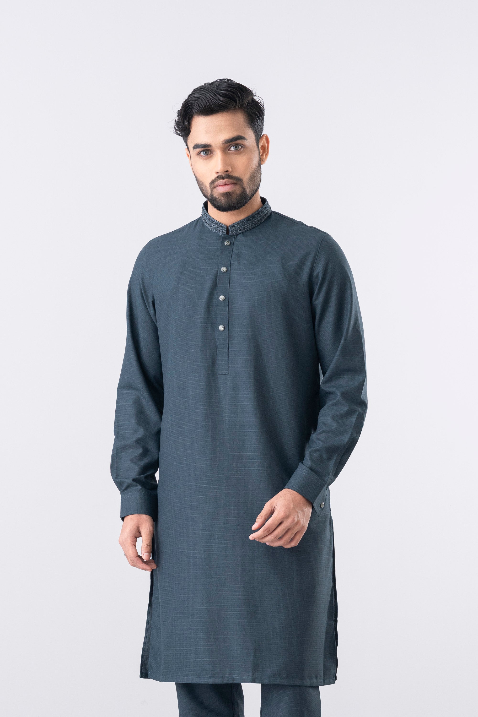 This regular-fit Ethnic kurta set features a pajama and embroidery detailing at band and placket.This formal style made with breathable premium fabric contains 100% viscose for a refined finish. Perfect for a timeless and elegant look.