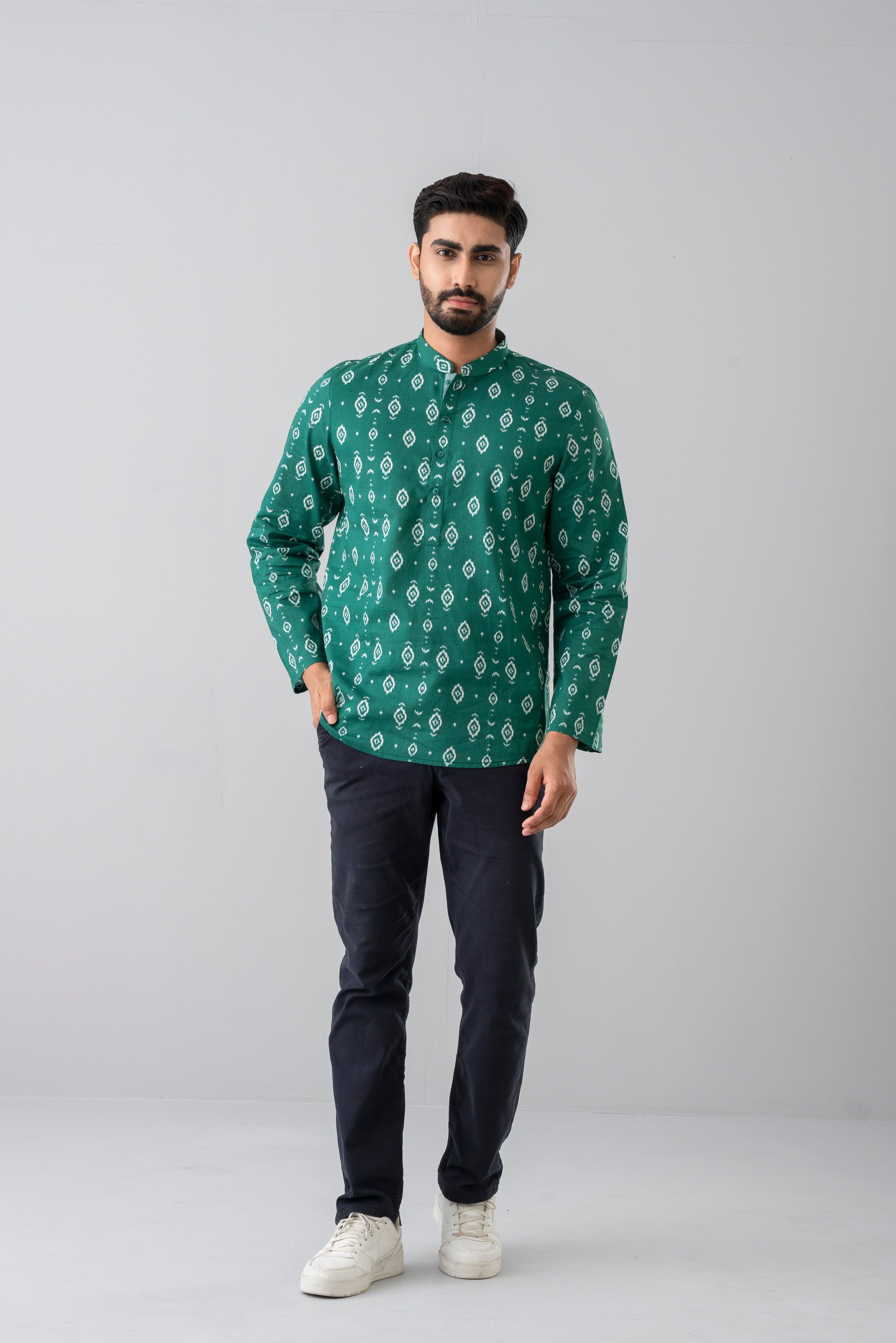 A regular-fit Fatuwa crafted from 100% cotton breathable fabric, featuring classical print with contrast at inside band and moon offers a stylish yet comfortable daily wear look. Perfect for effortless elegance in regular wear.