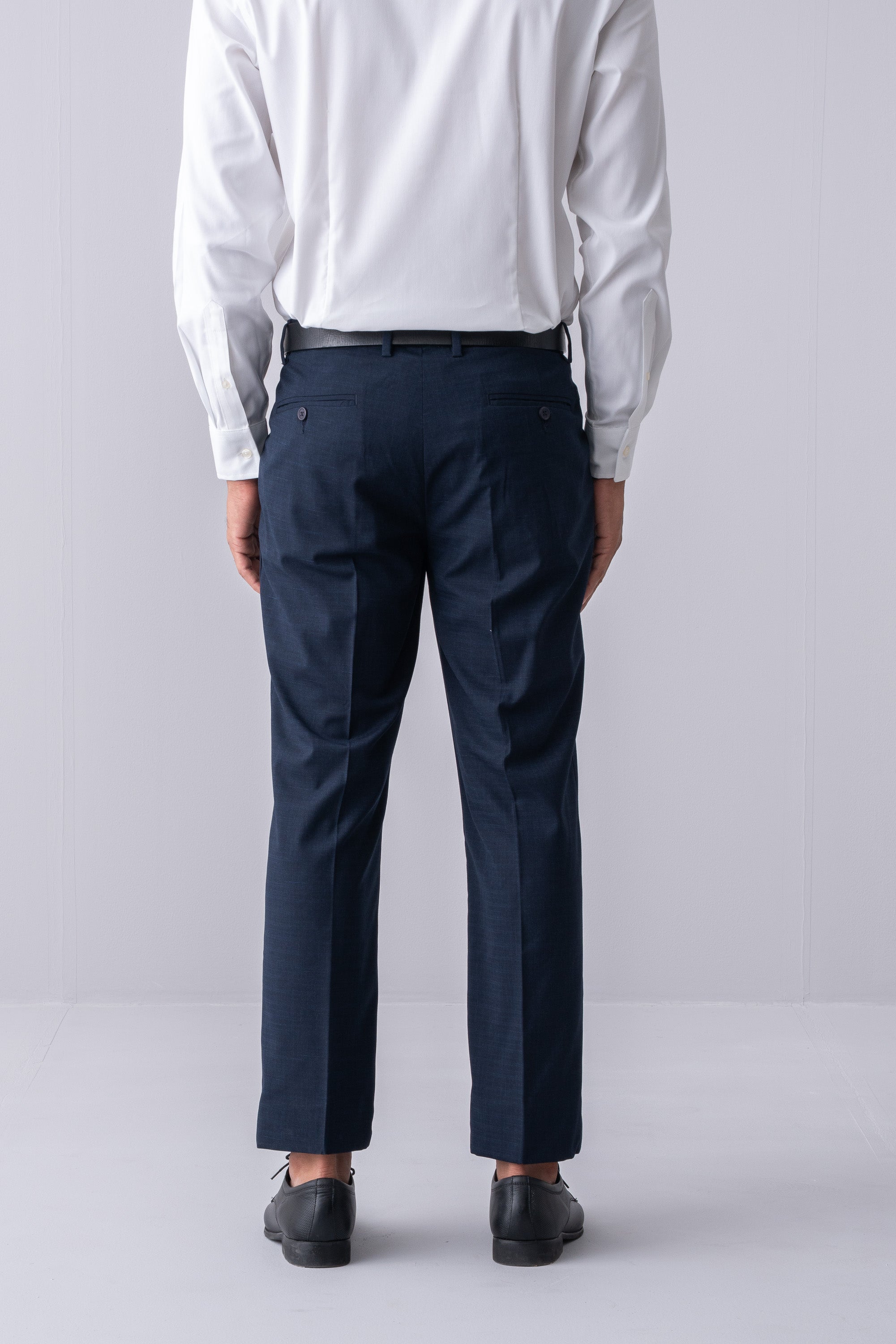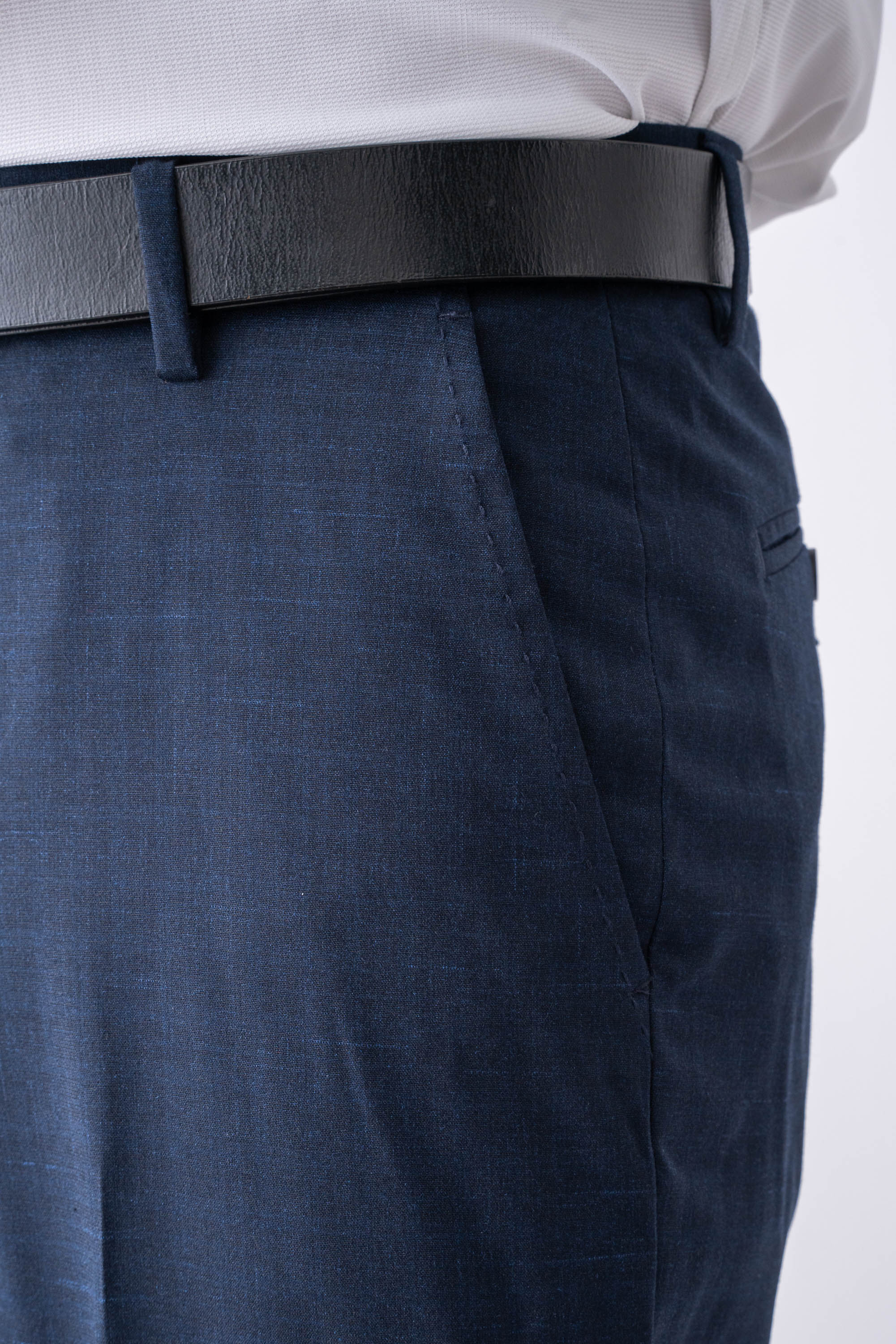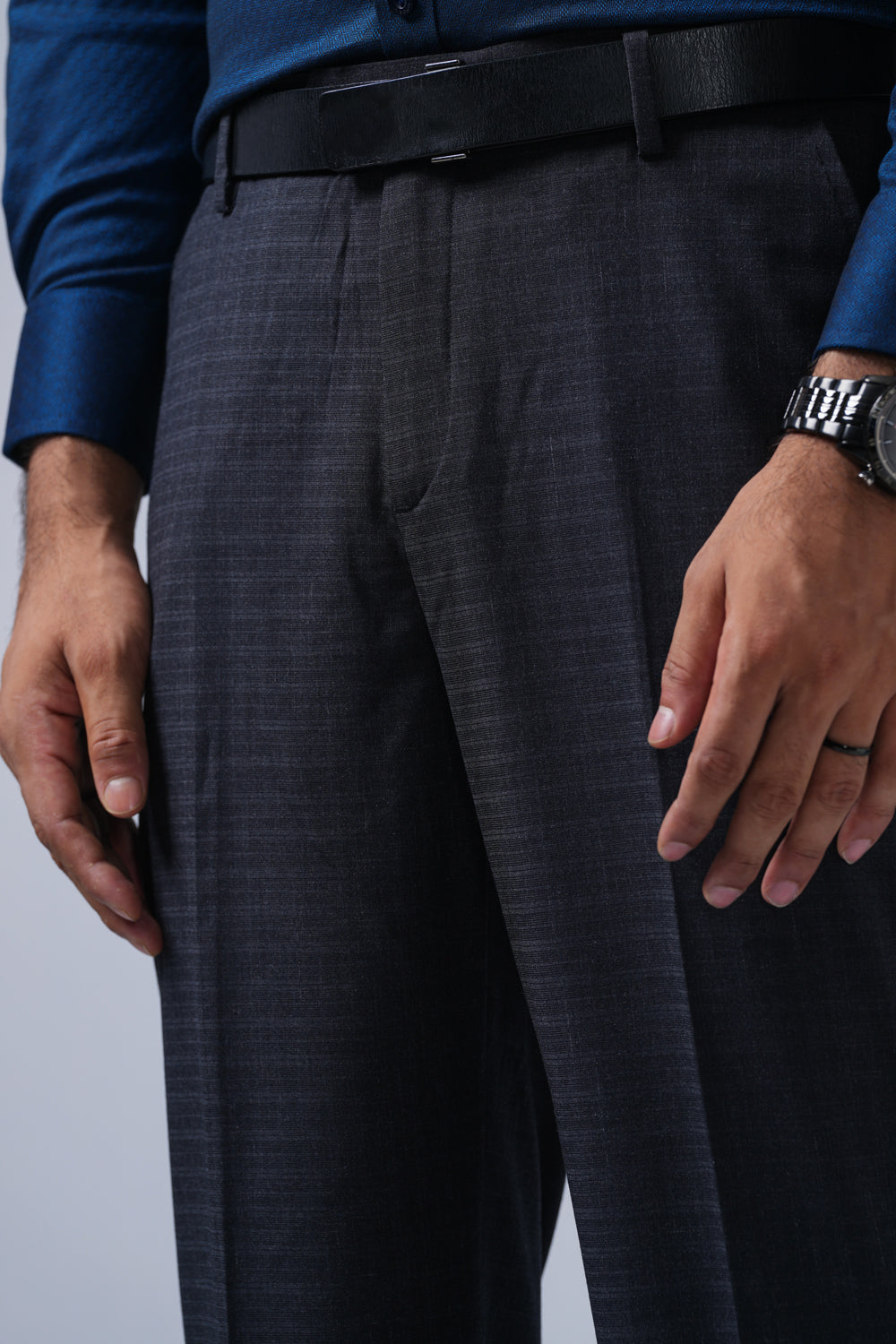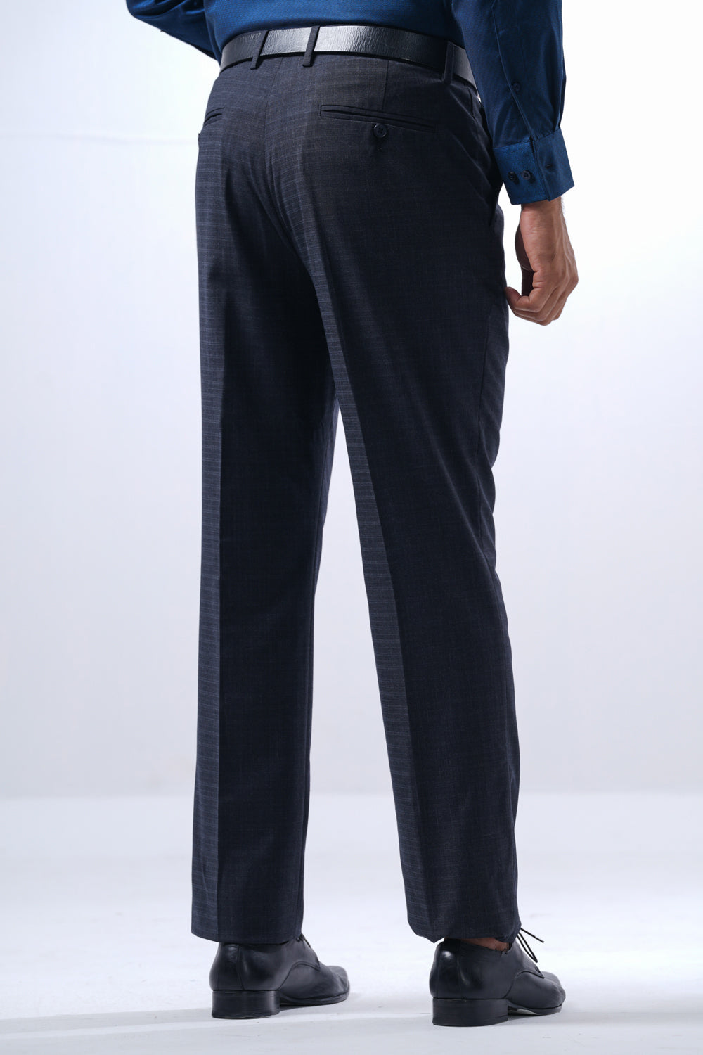 Designed for elegance and comfort, these Regular Fit Formal Pants feature a shelf body check pattern with a subtle shine, adding a refined touch to your look. Crafted from fine yarn, they offer a soft hand feel, ensuring ease of wear throughout the day. The saddle stitch detailing at the pockets enhances the design with a sophisticated finish. Perfect for professional settings and formal occasions, these pants effortlessly combine style and functionality.