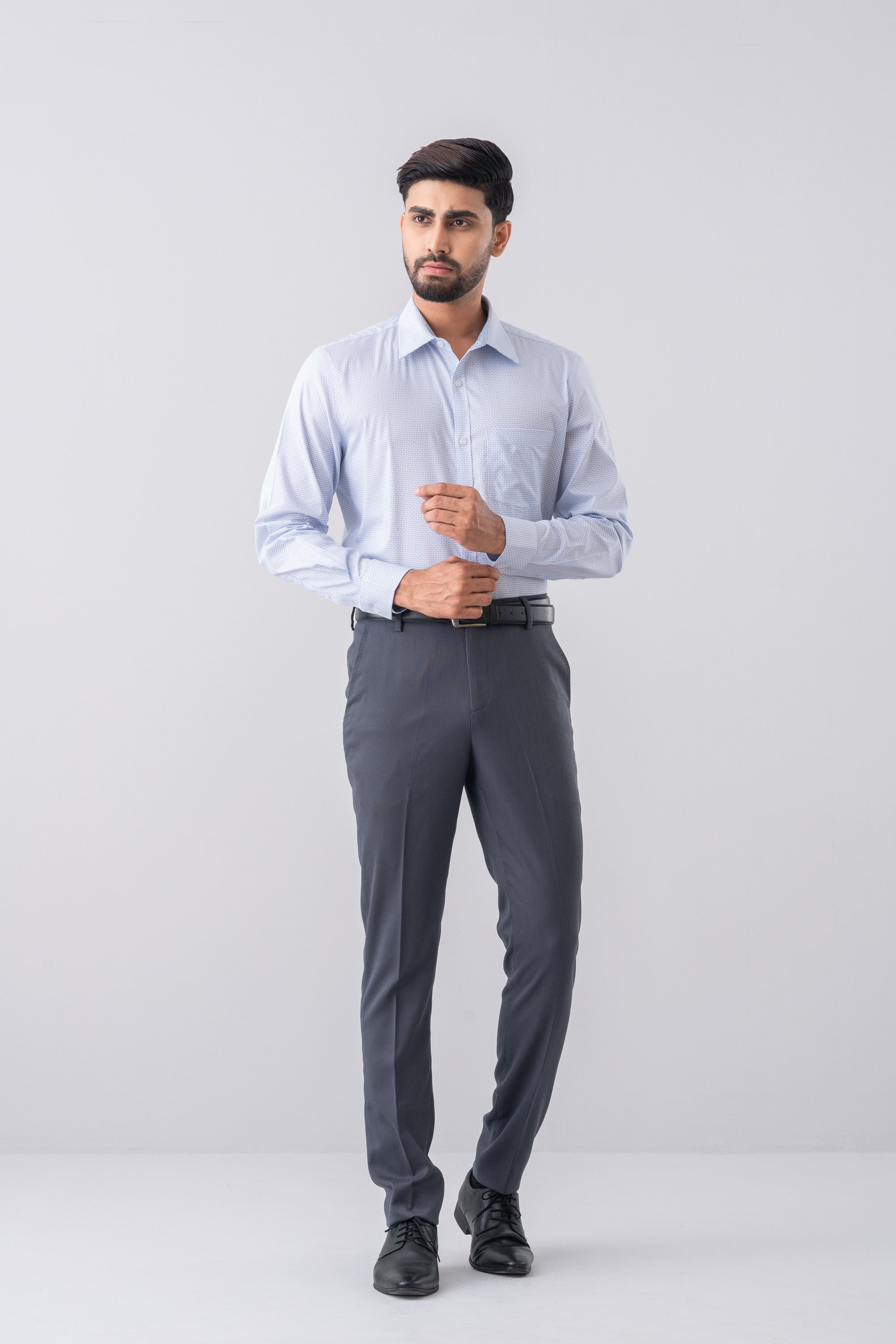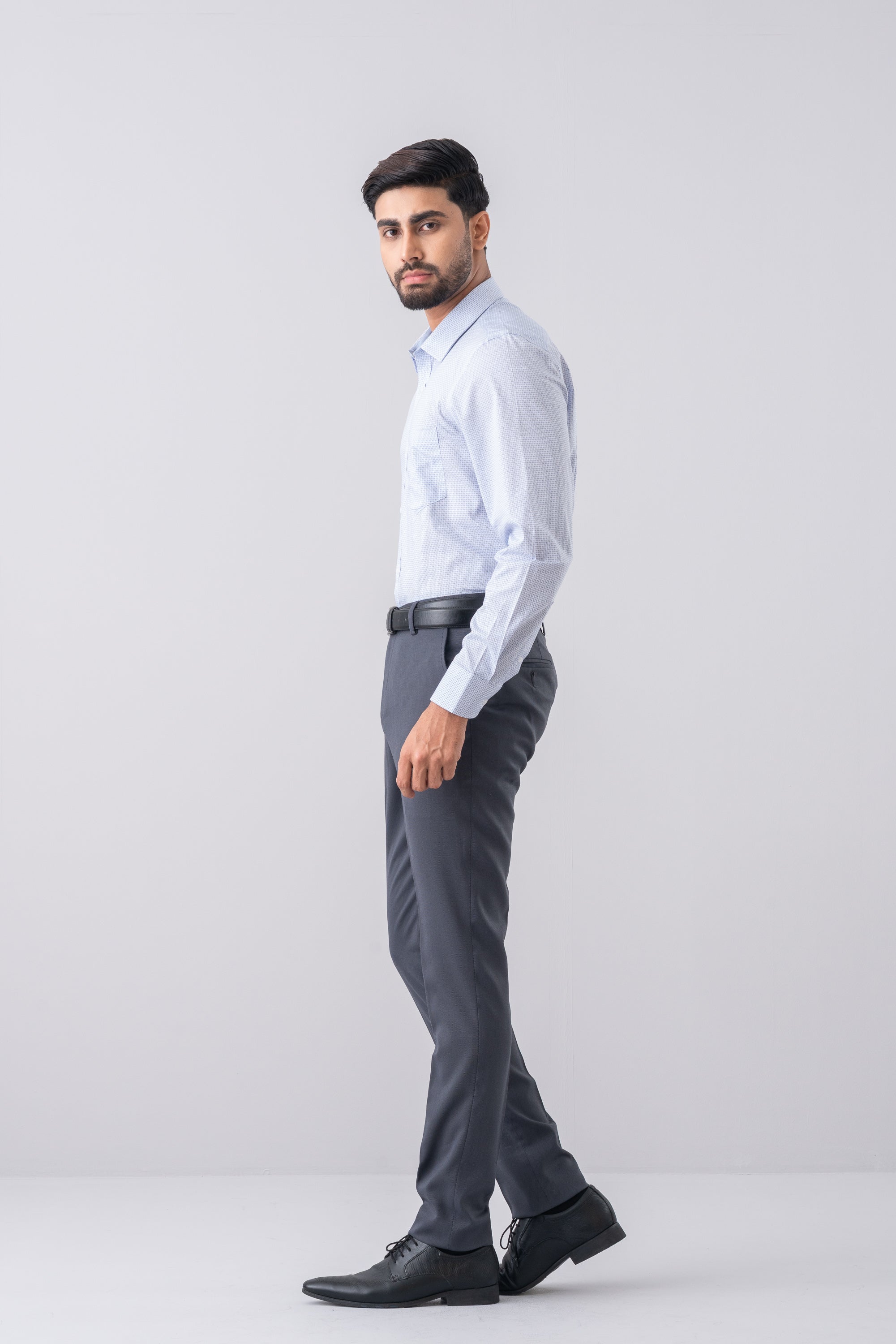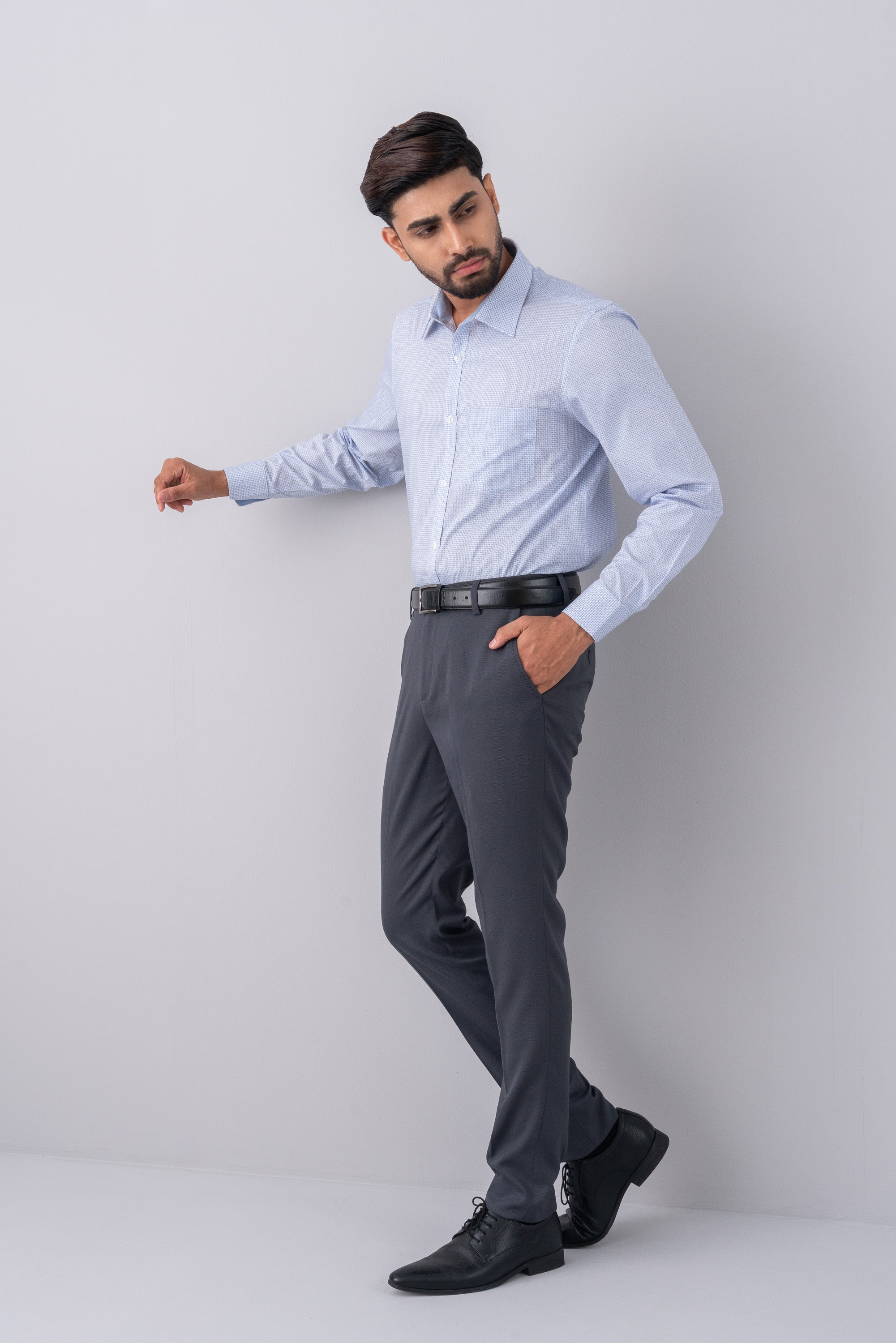 Slim formal pant is designed with a sharp, tailored silhouette that delivers a clean and modern look. Its smooth, refined surface enhances the sleek appearance, while the built-in comfort stretch ensures ease of movement throughout the day. Perfect for a polished and professional style.