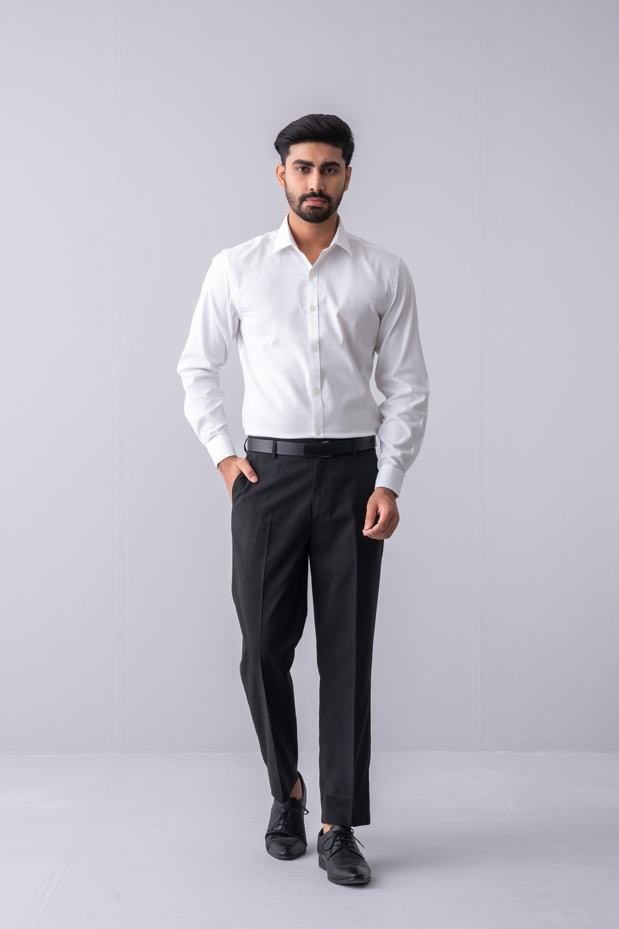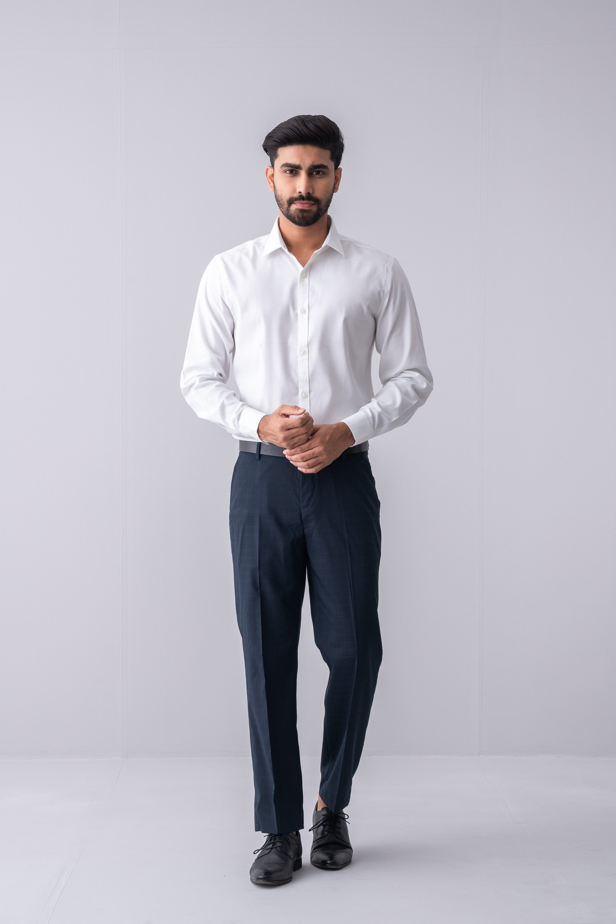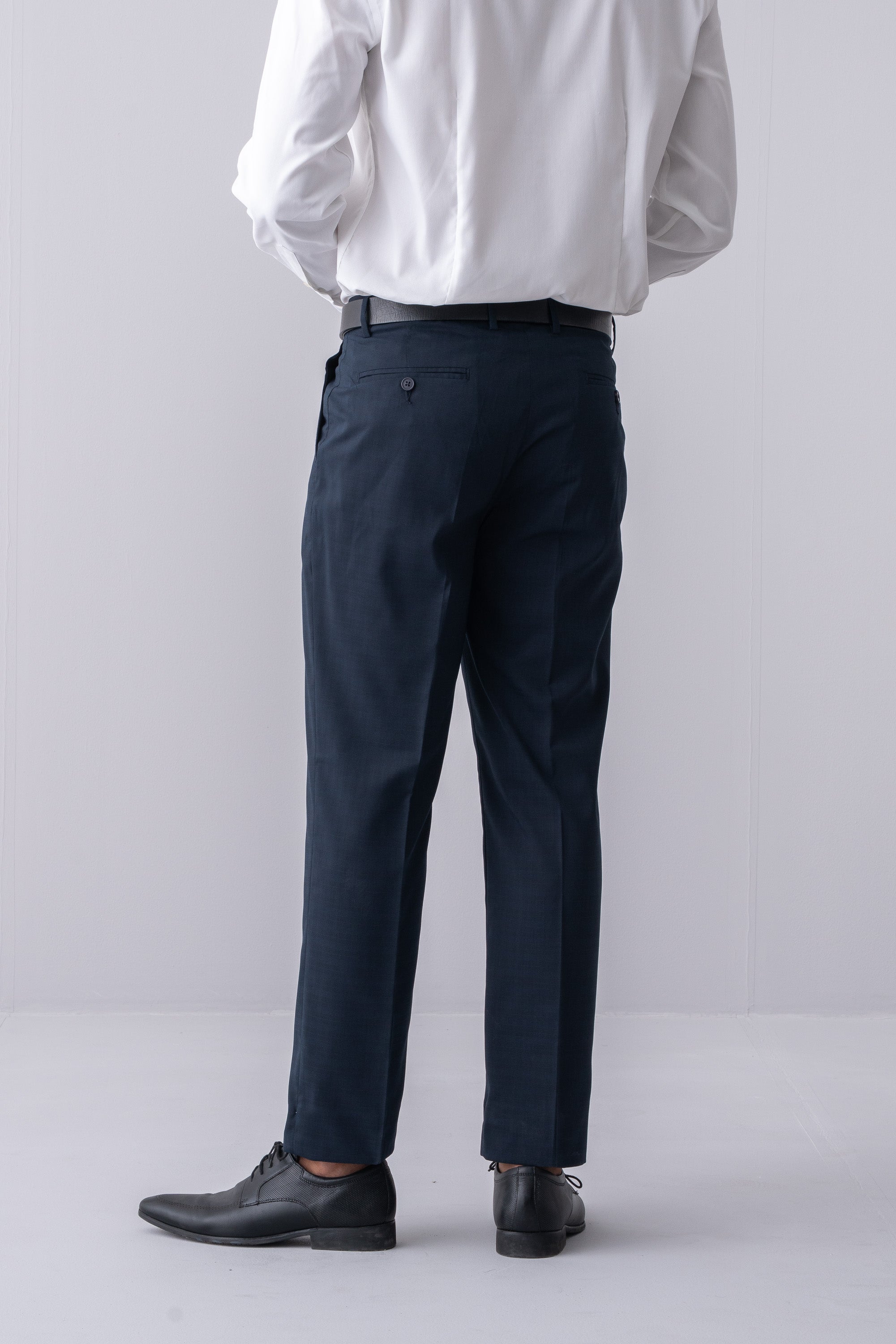 Designed for elegance and comfort, these Regular Fit Formal Pants feature a shelf body check pattern with a subtle shine, adding a refined touch to your look. Crafted from fine yarn, they offer a soft hand feel, ensuring ease of wear throughout the day. The saddle stitch detailing at the pockets enhances the design with a sophisticated finish. Perfect for professional settings and formal occasions, these pants effortlessly combine style and functionality.