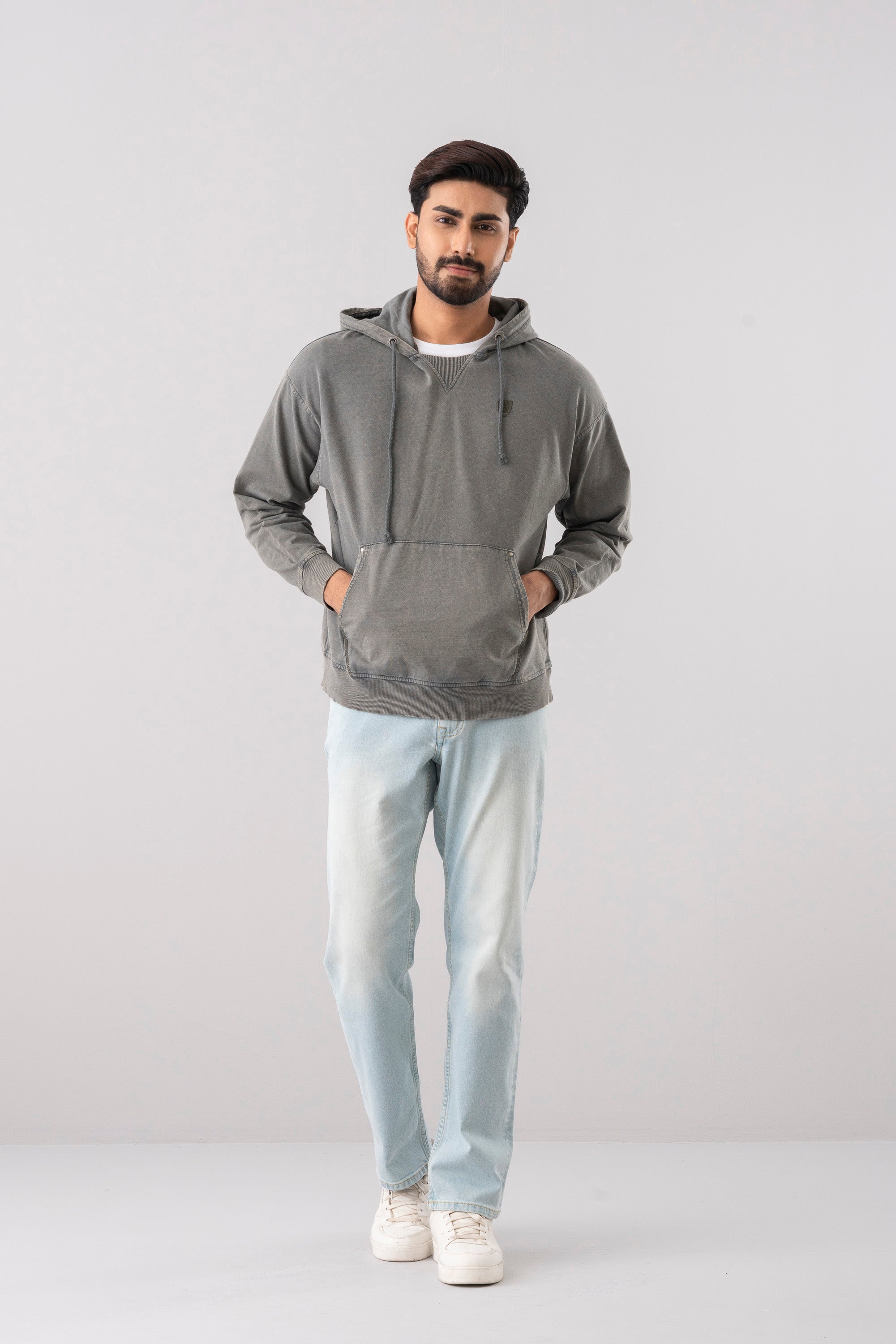 The mid-weight terry fabric provides a soft, breathable texture with a cozy interior feel—perfect for layering through all seasons. Whether paired with jeans or joggers, this hoodie delivers laid-back confidence with a refined streetwear vibe.