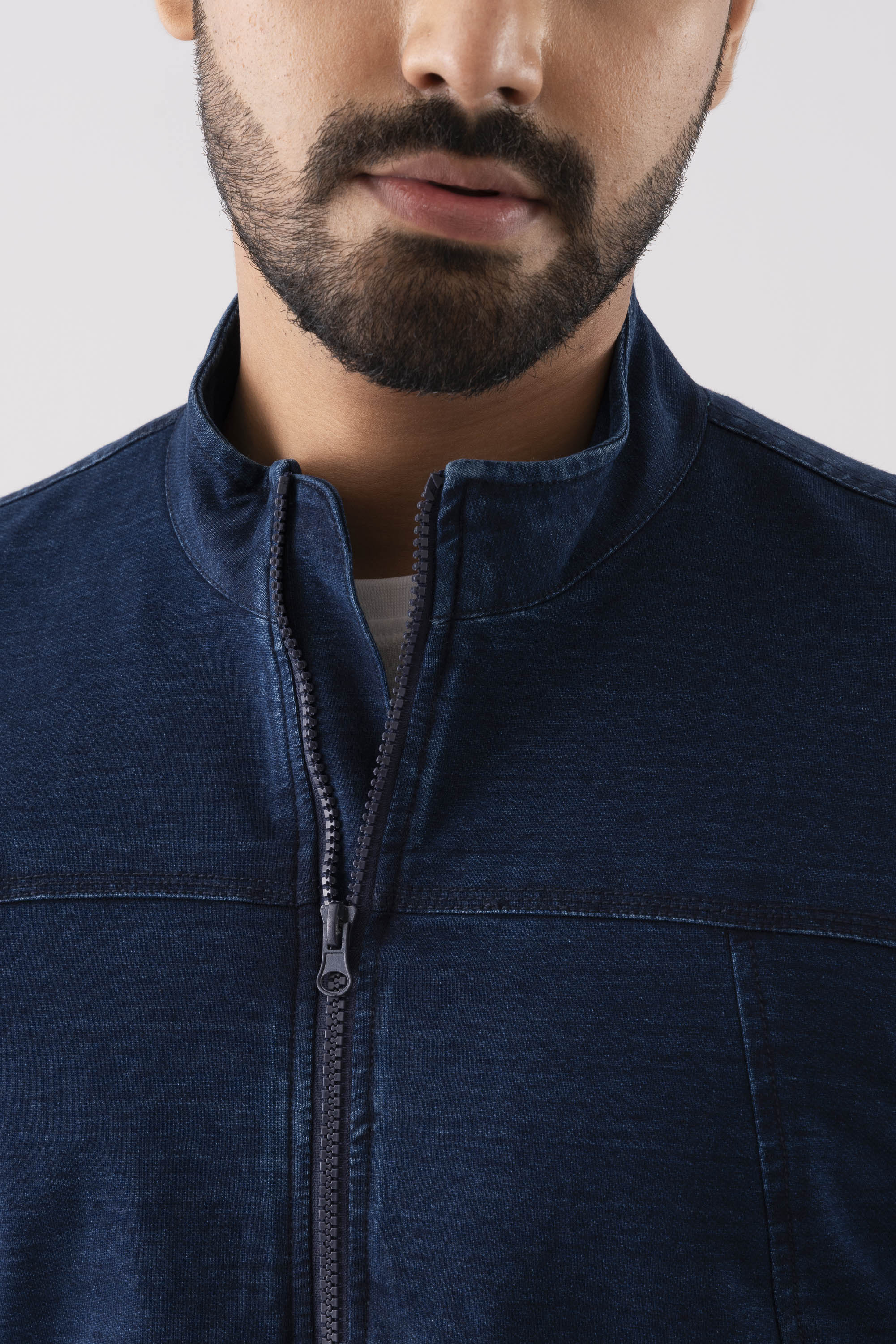 The Indigo Jacket is designed with a sleek high neck and refined cut-and-sew detailing, offering a modern and structured look. Crafted from super soft fabric, it ensures all-day comfort while maintaining a polished appearance. The contrast thread detailing adds a touch of sophistication, making it a versatile piece for both casual and elevated styling.
