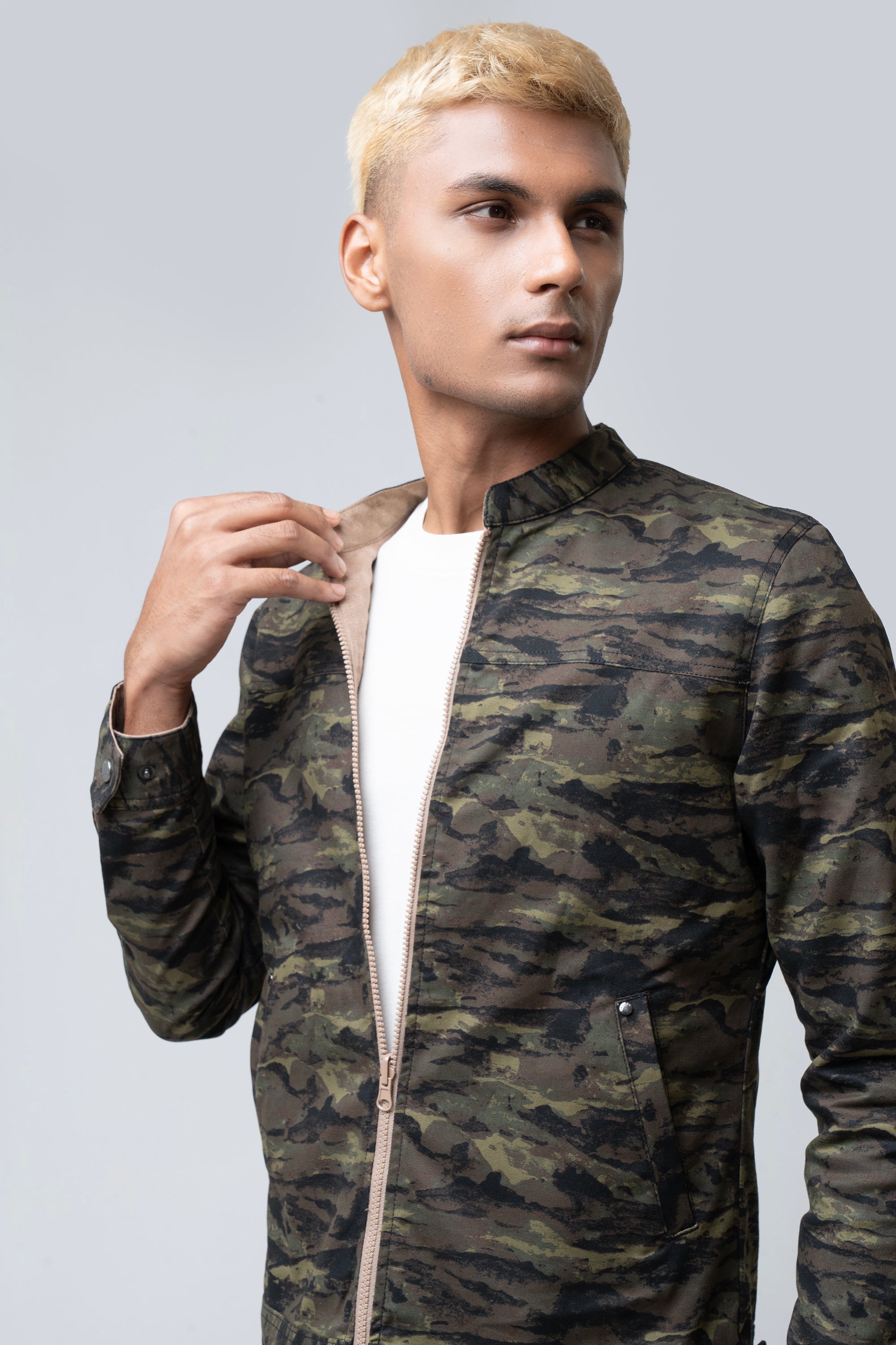 Crafted for versatility and modern appeal, this reversible jacket features a camouflage-printed outer layer for a bold, adventurous look, while the inner side showcases soft suede fabric for a smooth, refined finish. Designed with comfort and functionality in mind, it effortlessly transitions from casual outdoor wear to a polished everyday style.