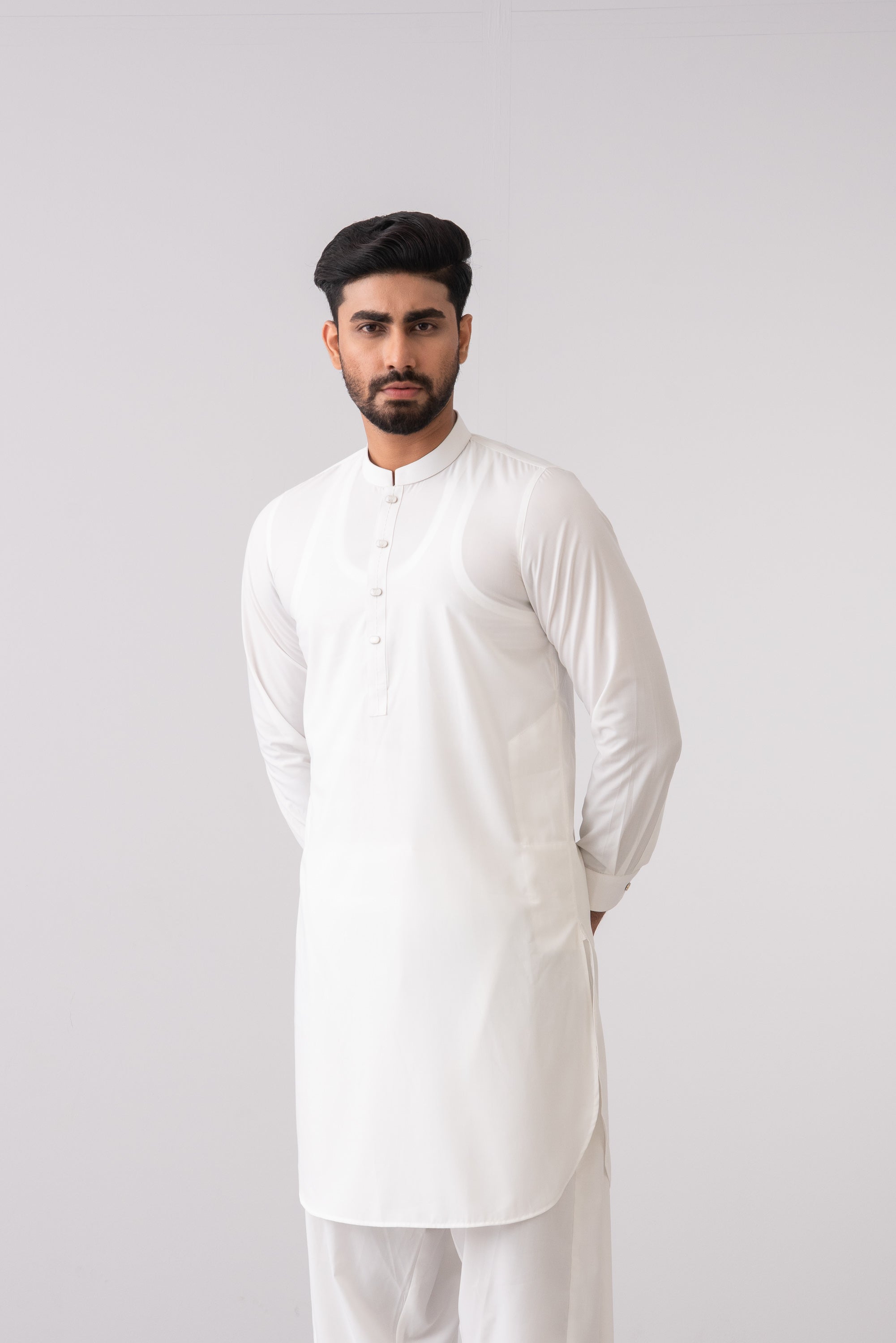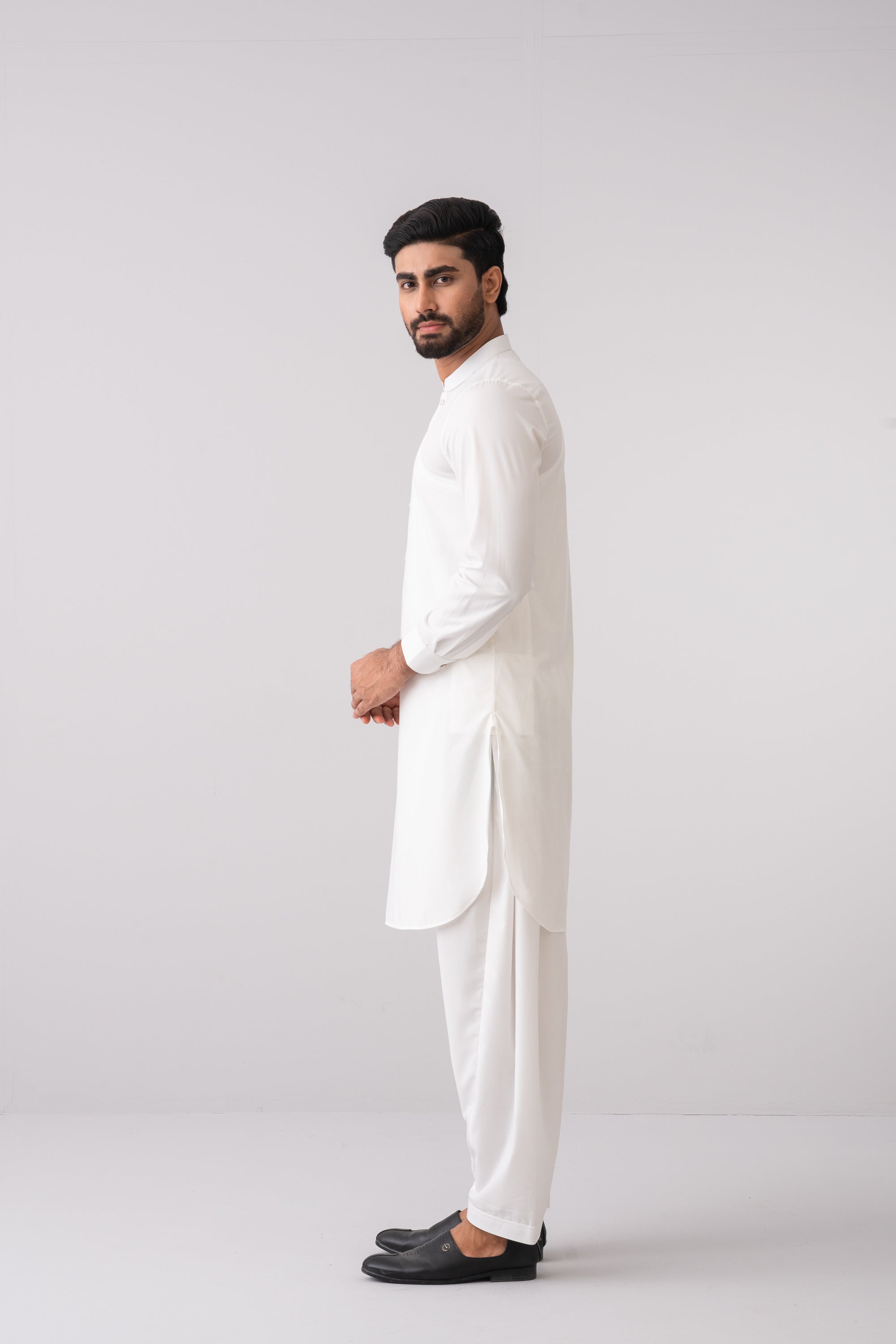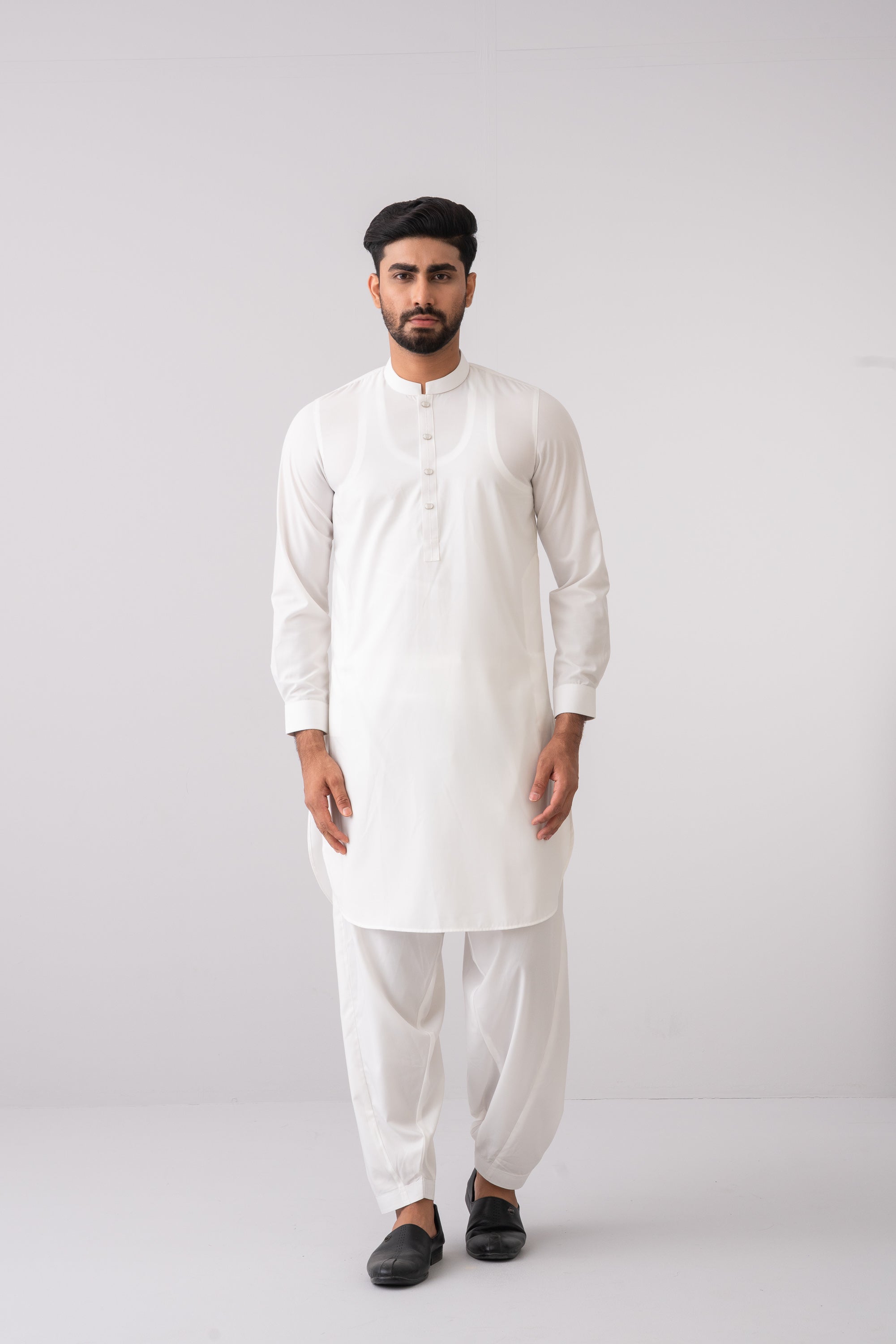 This regular-fit Kabli set features a shalwar and skip stitch detailing at placket along with Yellow branded snap buttons.This style made with breathable premium blended fabric for a refined finish. Perfect for a timeless and elegant look.