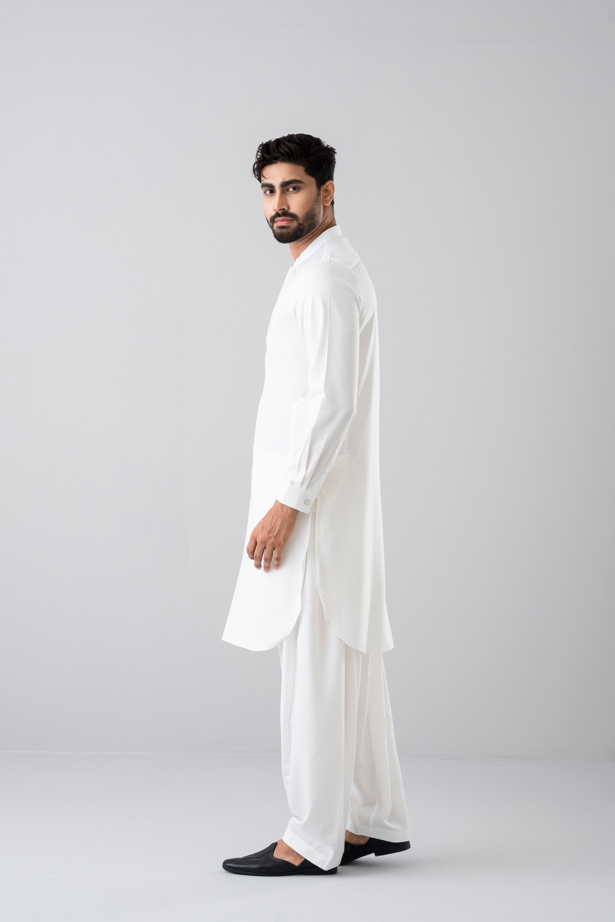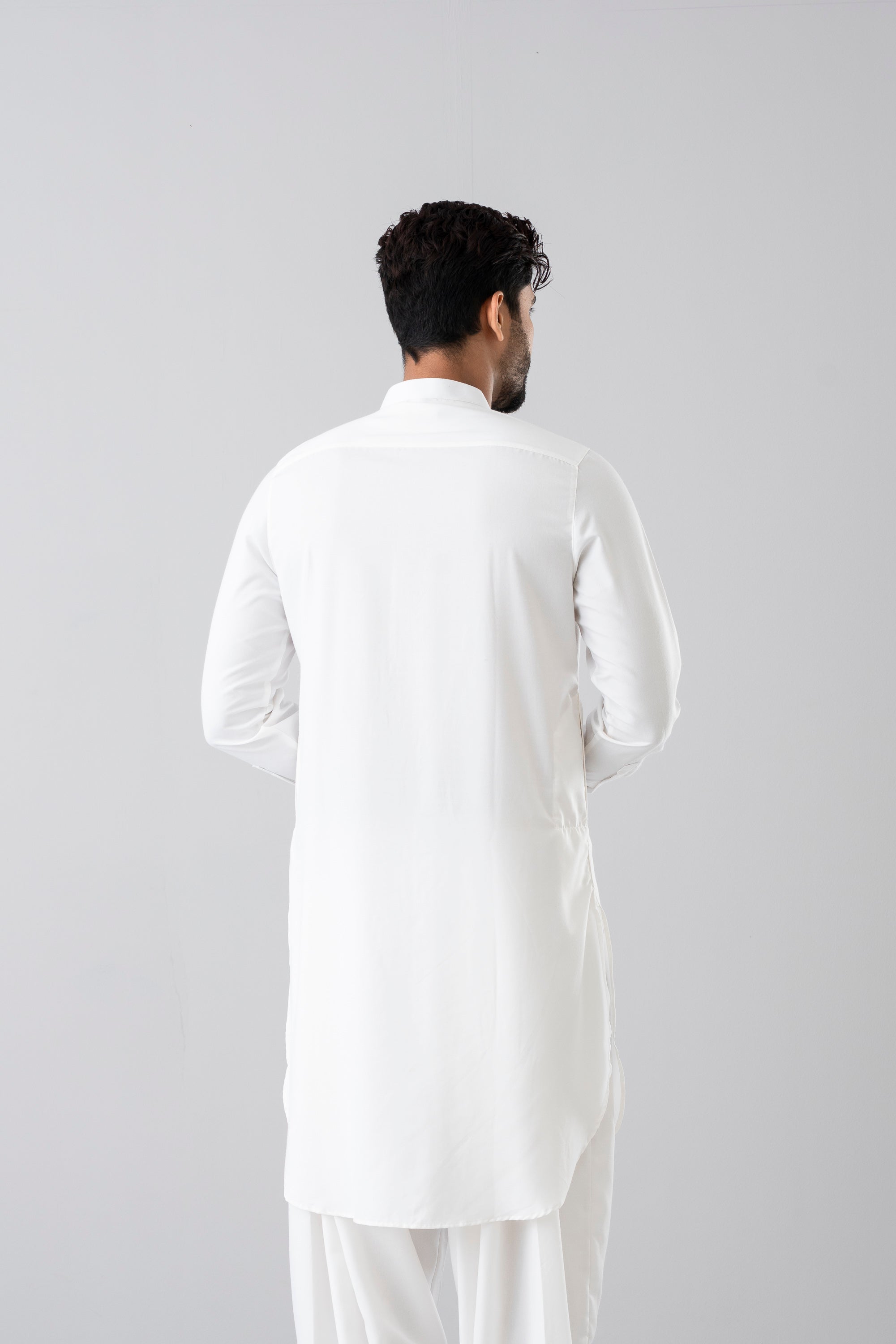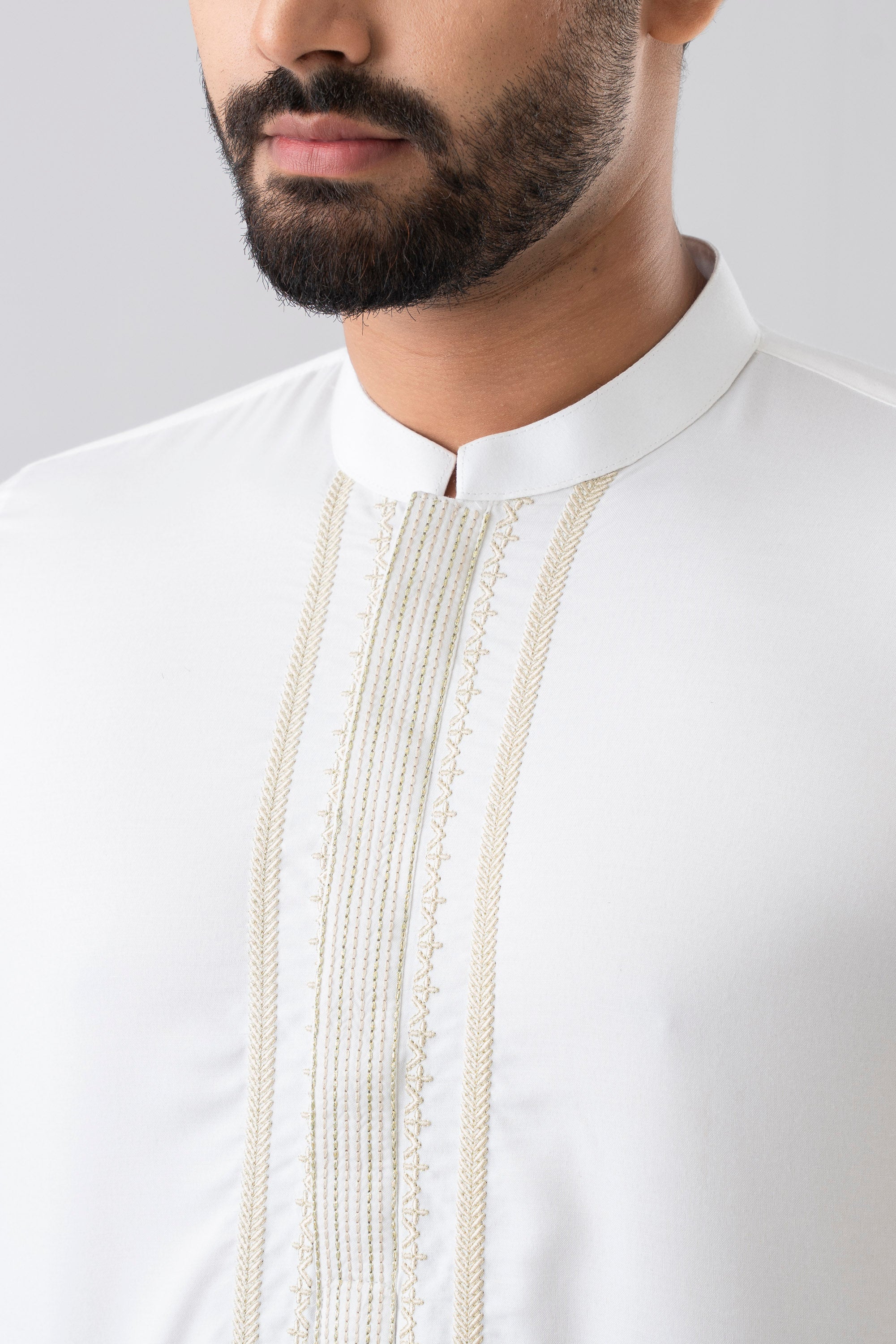 This regular-fit Kabli set features a shalwar and a beautiful Machine Embroidery around placket and also in placket. Made from breathable premium blended fabric includes matching snap buttons on cuff for a refined finish, perfect for an elegant look.