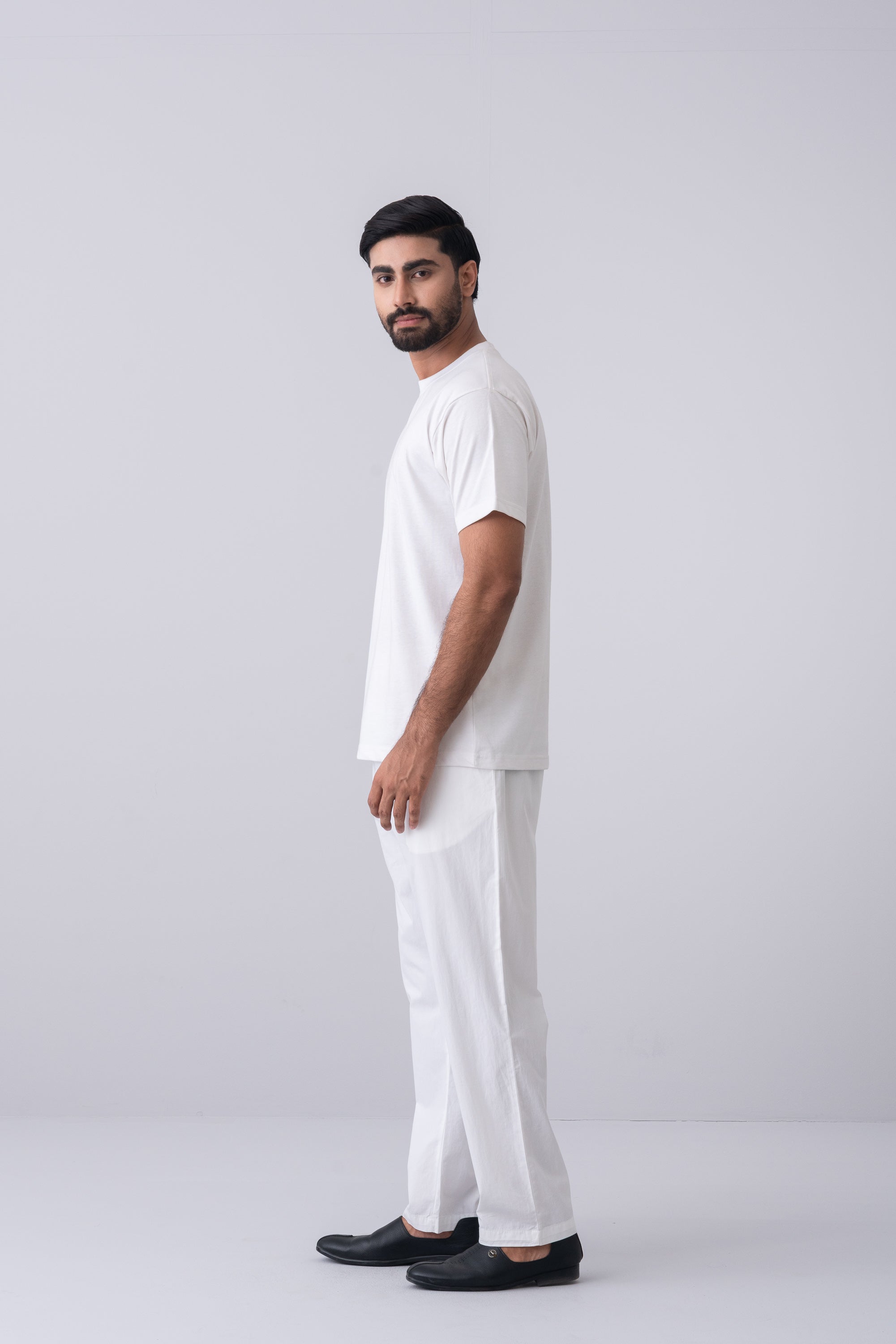This men's pajama, crafted from 100% cotton fabric, features a regular fit with an elastic waist, side pockets, and a back pocket for added convenience and comfort.