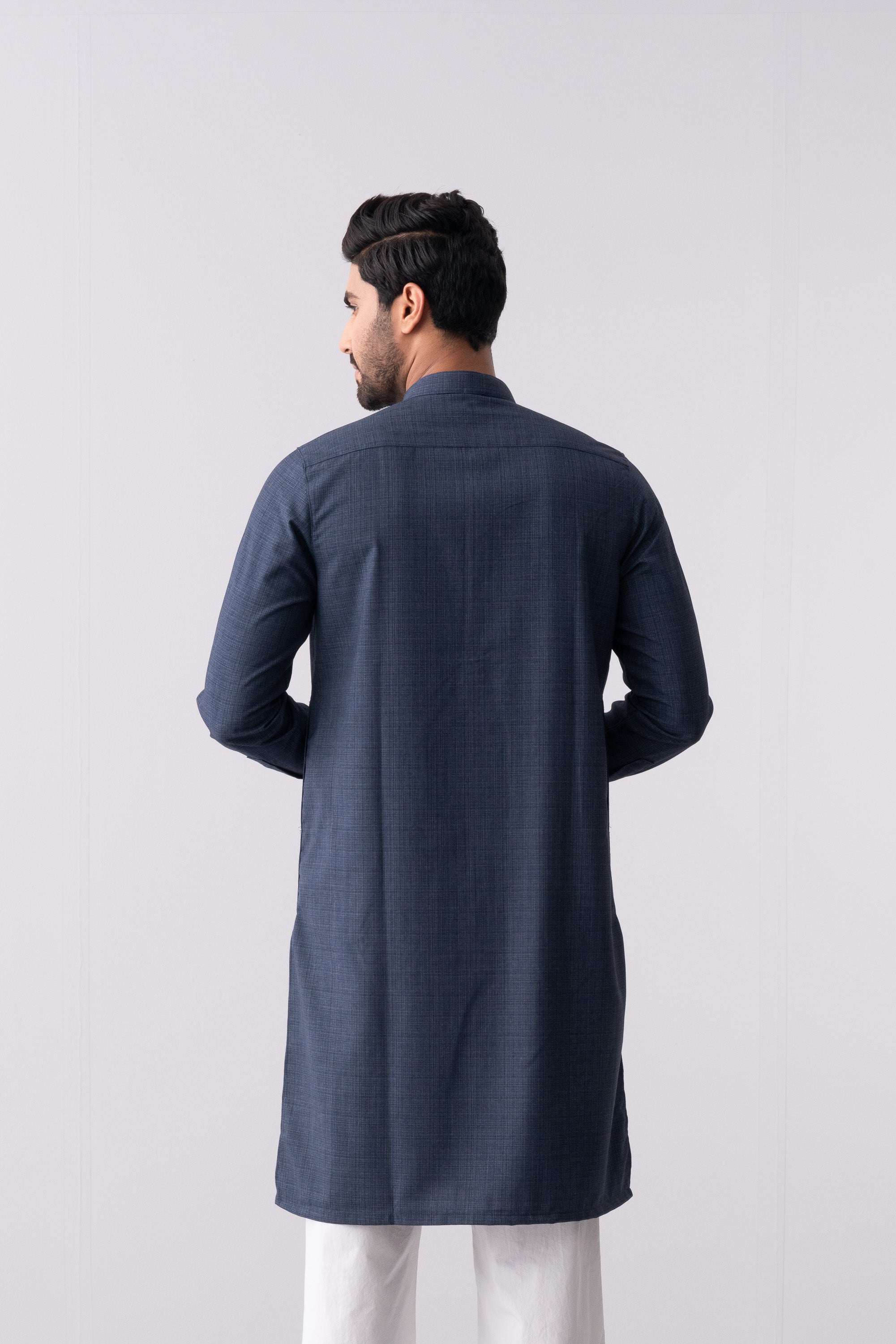 A regular-fit Panjabi crafted from premium TR fabric with 70% tencel and 30% rayon breathable fabric, featuring decorative snap buttons, offers a stylish yet comfortable formal look. Perfect for effortless elegance and all-day ease.