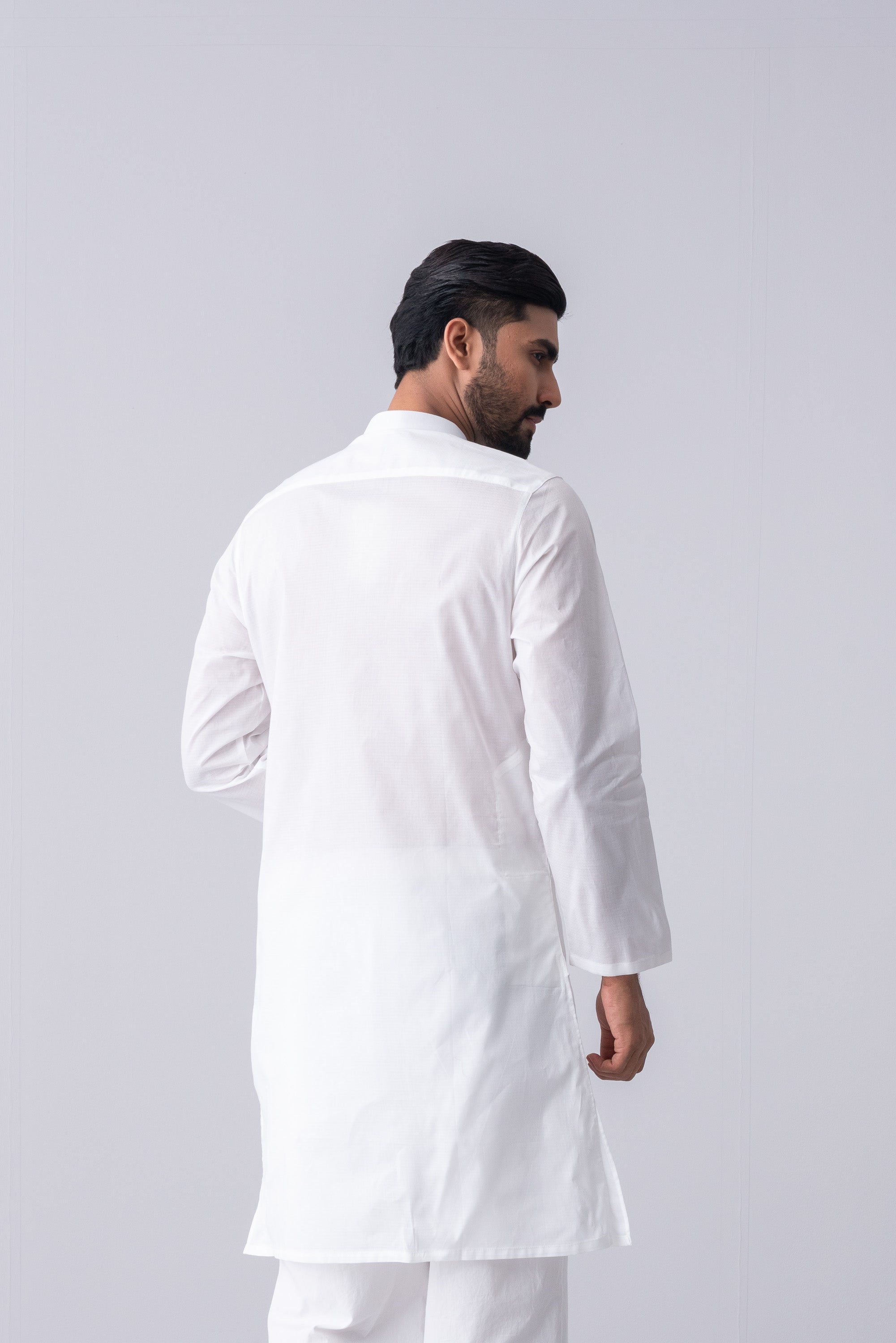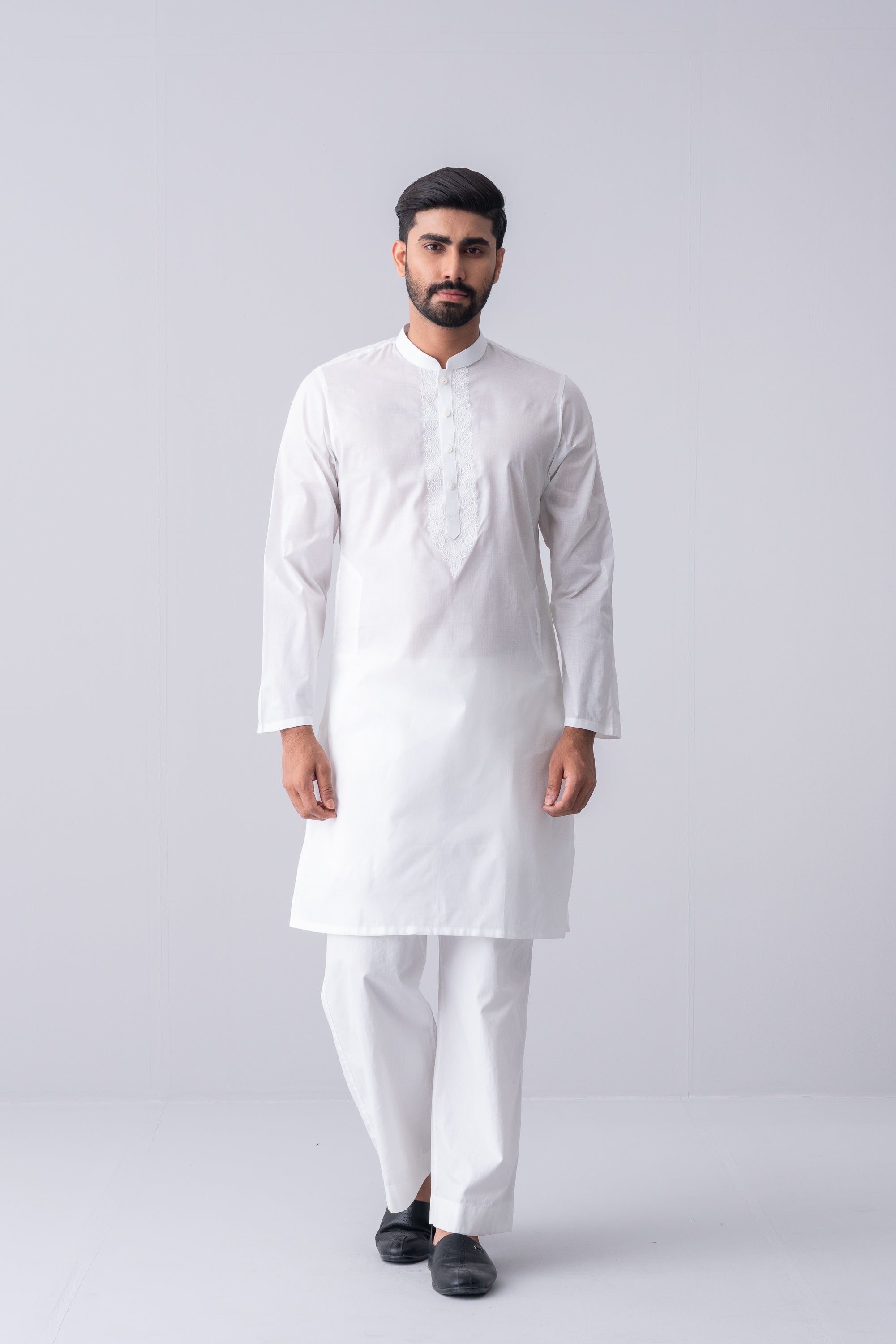 A slim-fit Panjabi crafted from 100% cotton breathable fabric, featuring embroidery on around placket and shell buttons, offers a stylish yet comfortable semi-formal look. Perfect for effortless elegance for every occasion .