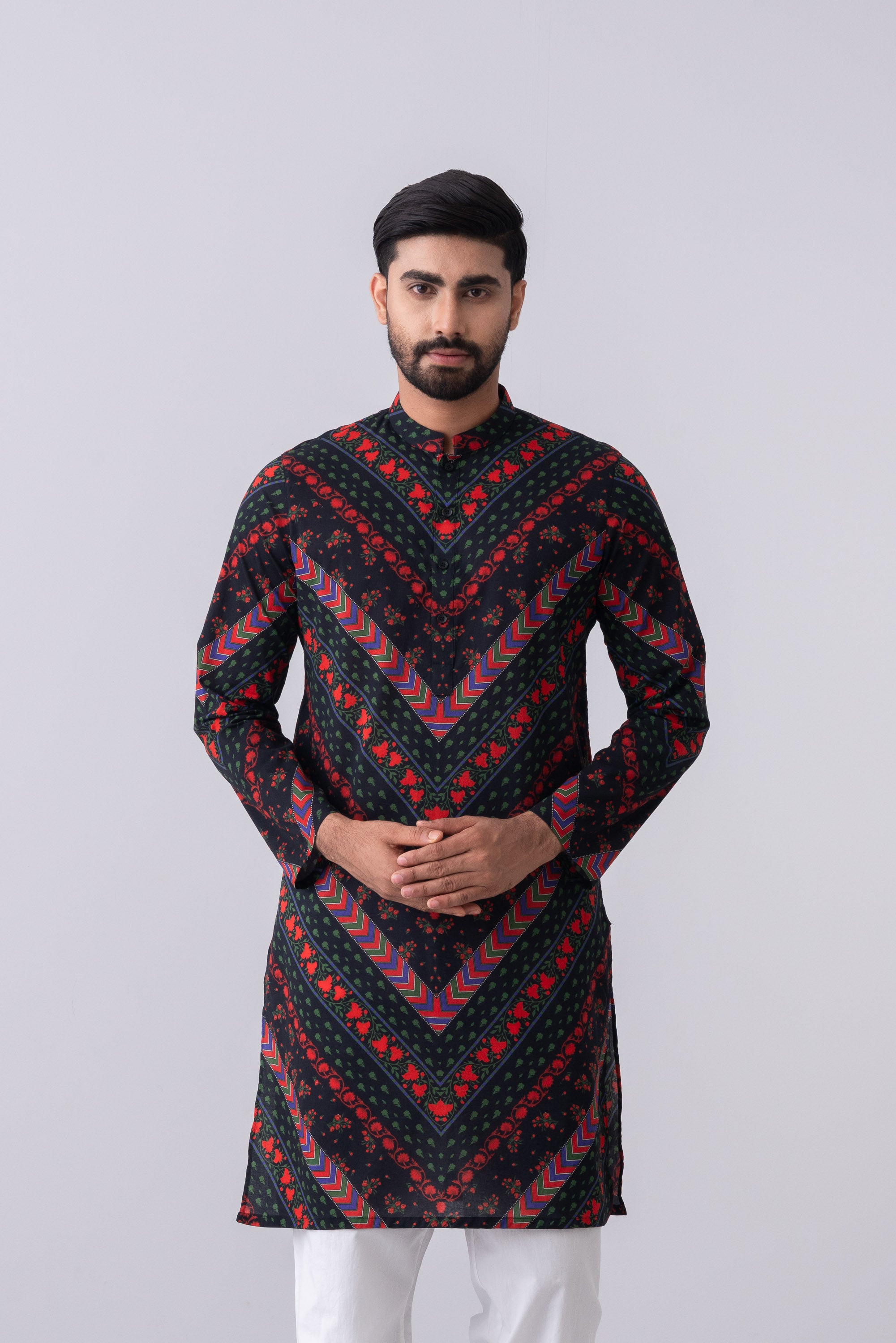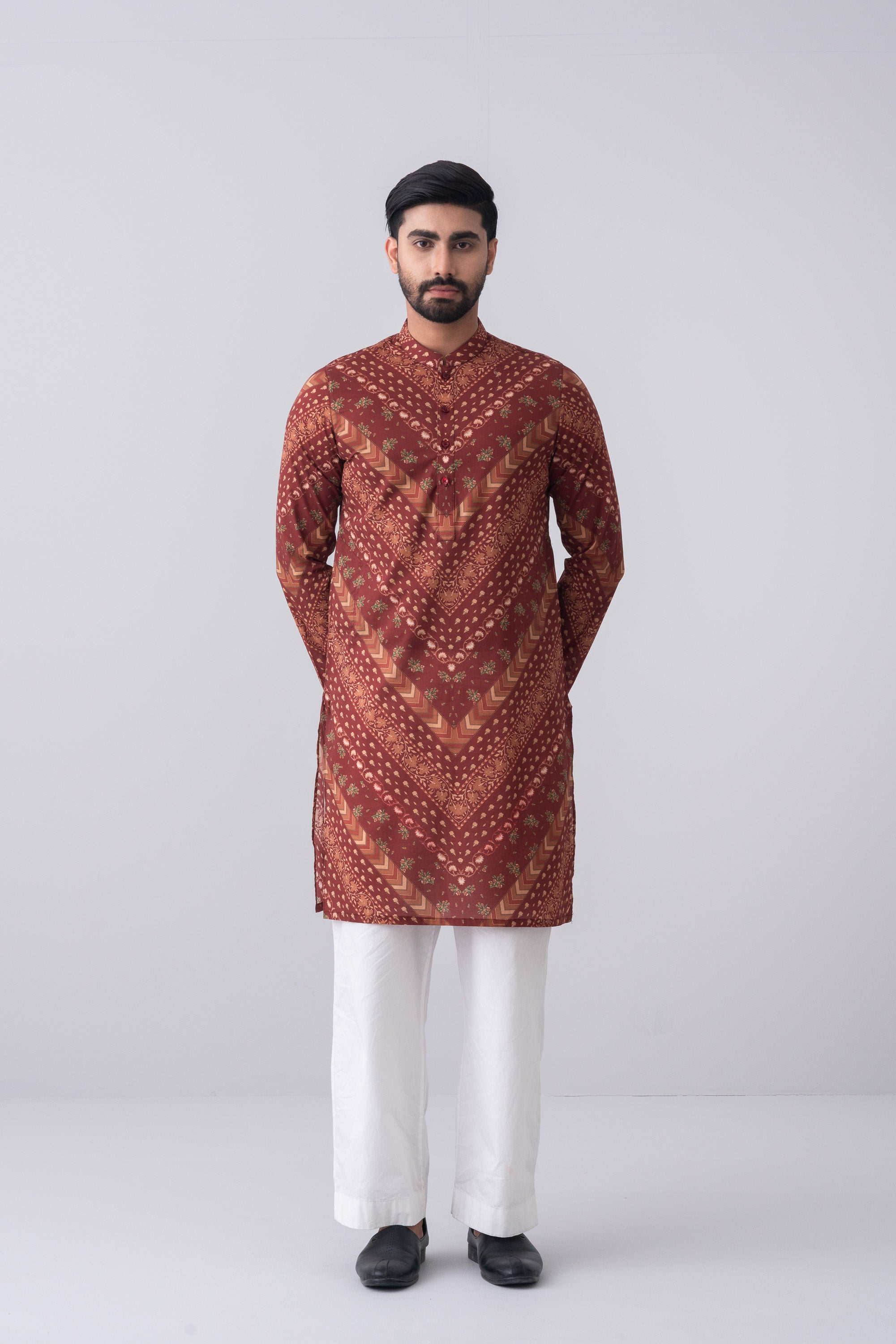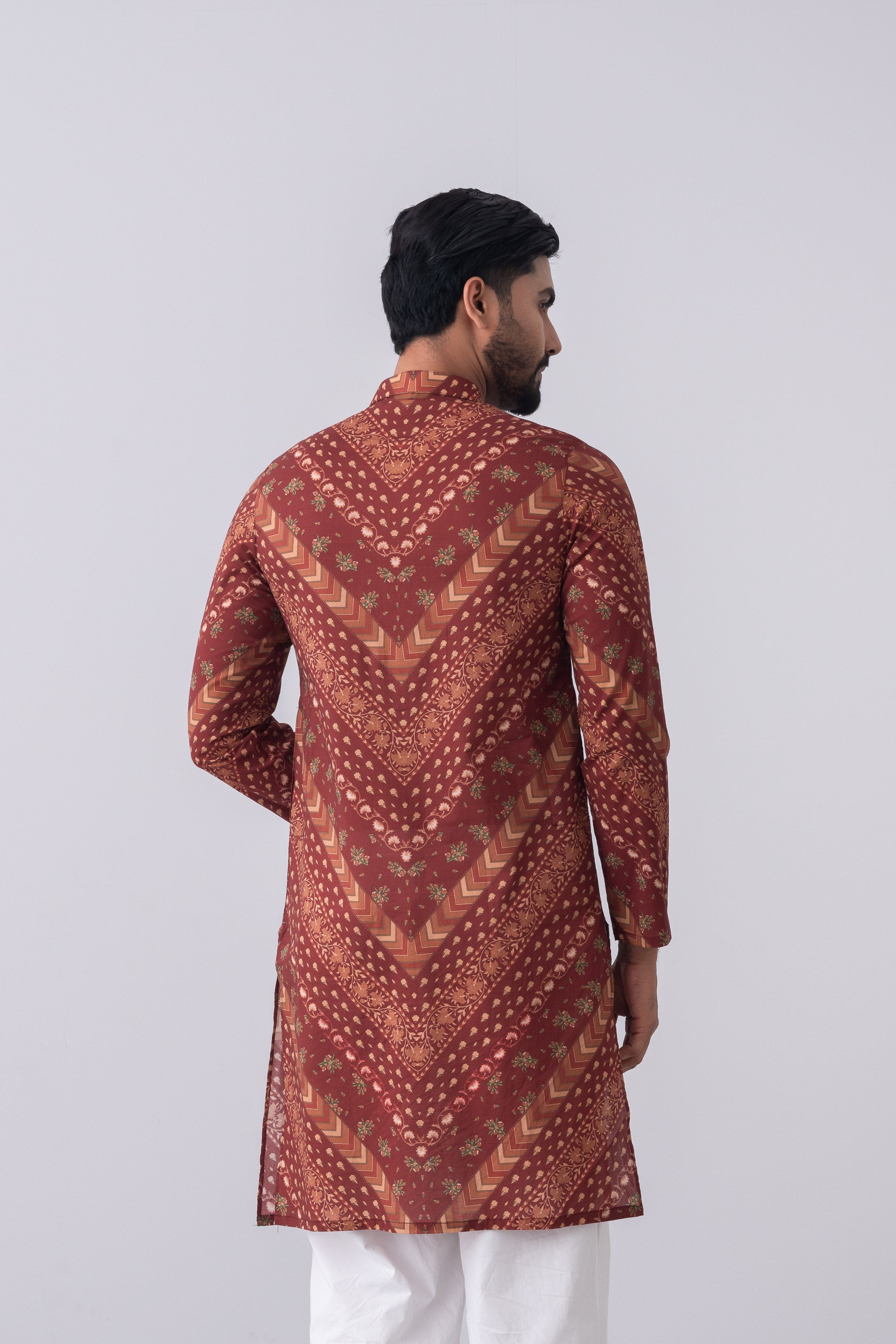 Celebrate Pohela Boishakh in comfort and style with this floral printed Panjabi, crafted from breathable cotton to keep you cool during the summer festivities. The vibrant floral pattern captures the essence of the season, making it perfect for New Year celebrations, fairs, and cultural events. Its lightweight fabric ensures ease and comfort all day long, while the classic design adds a touch of elegance. Pair it with pajama for a festive yet effortlessly stylish look.