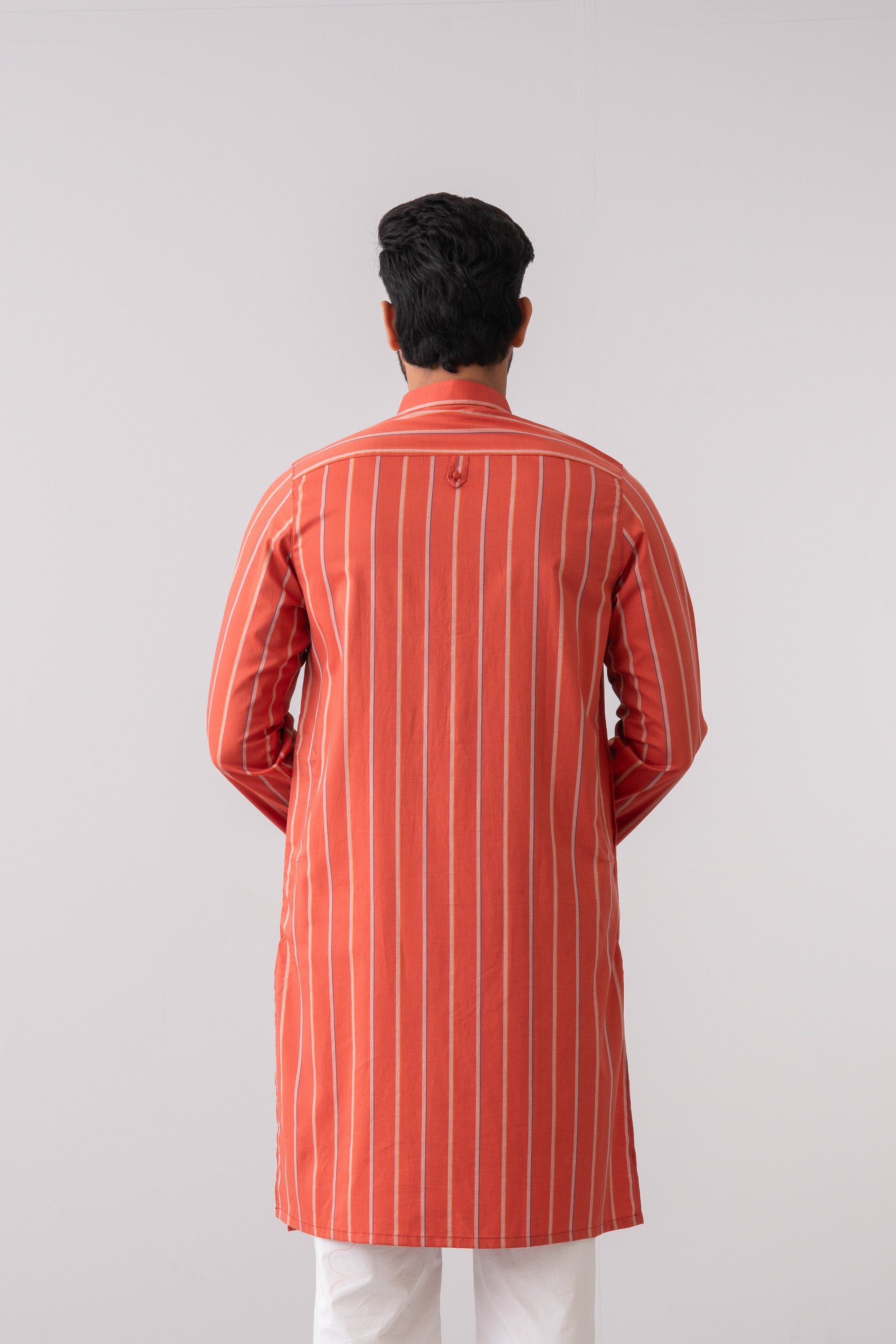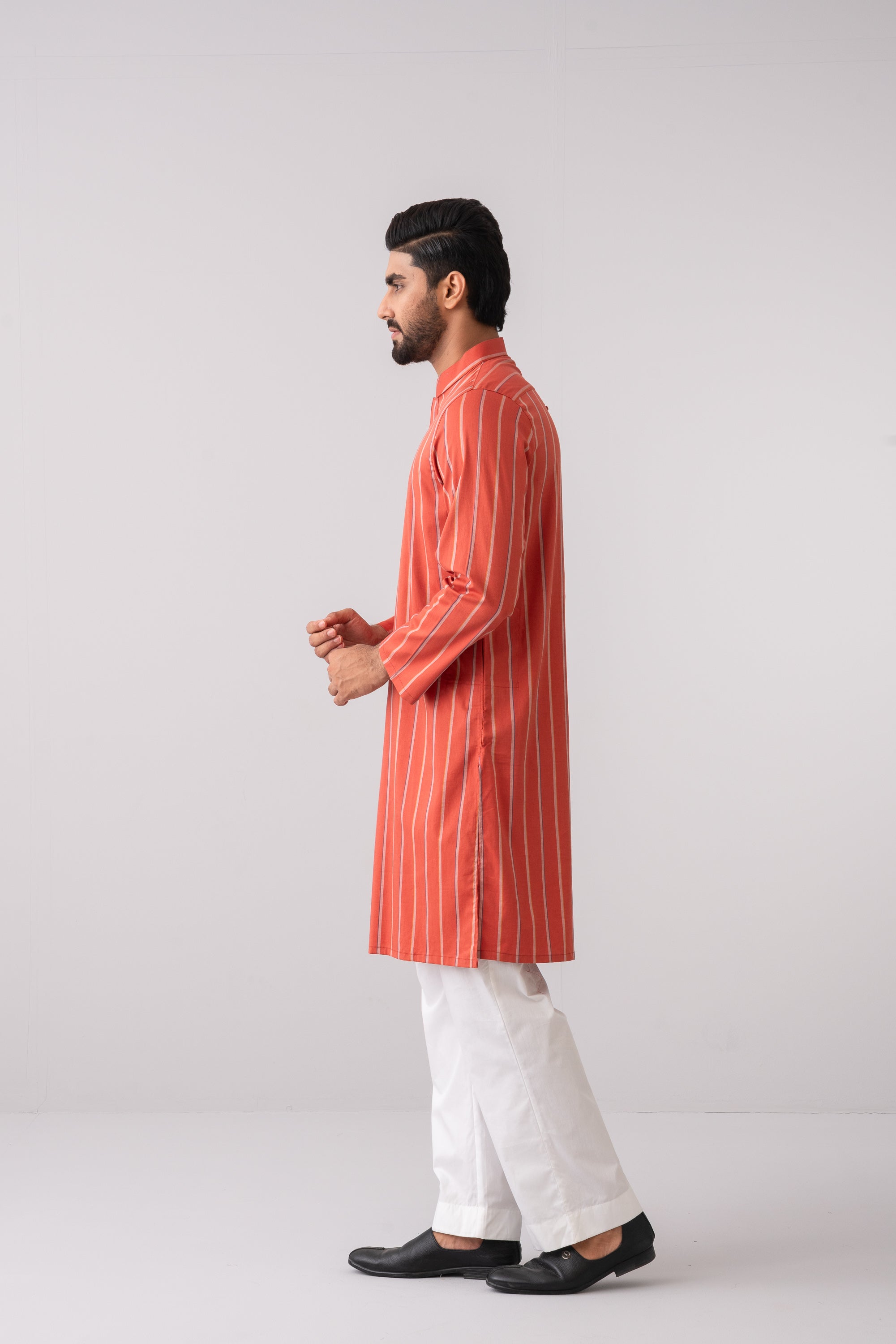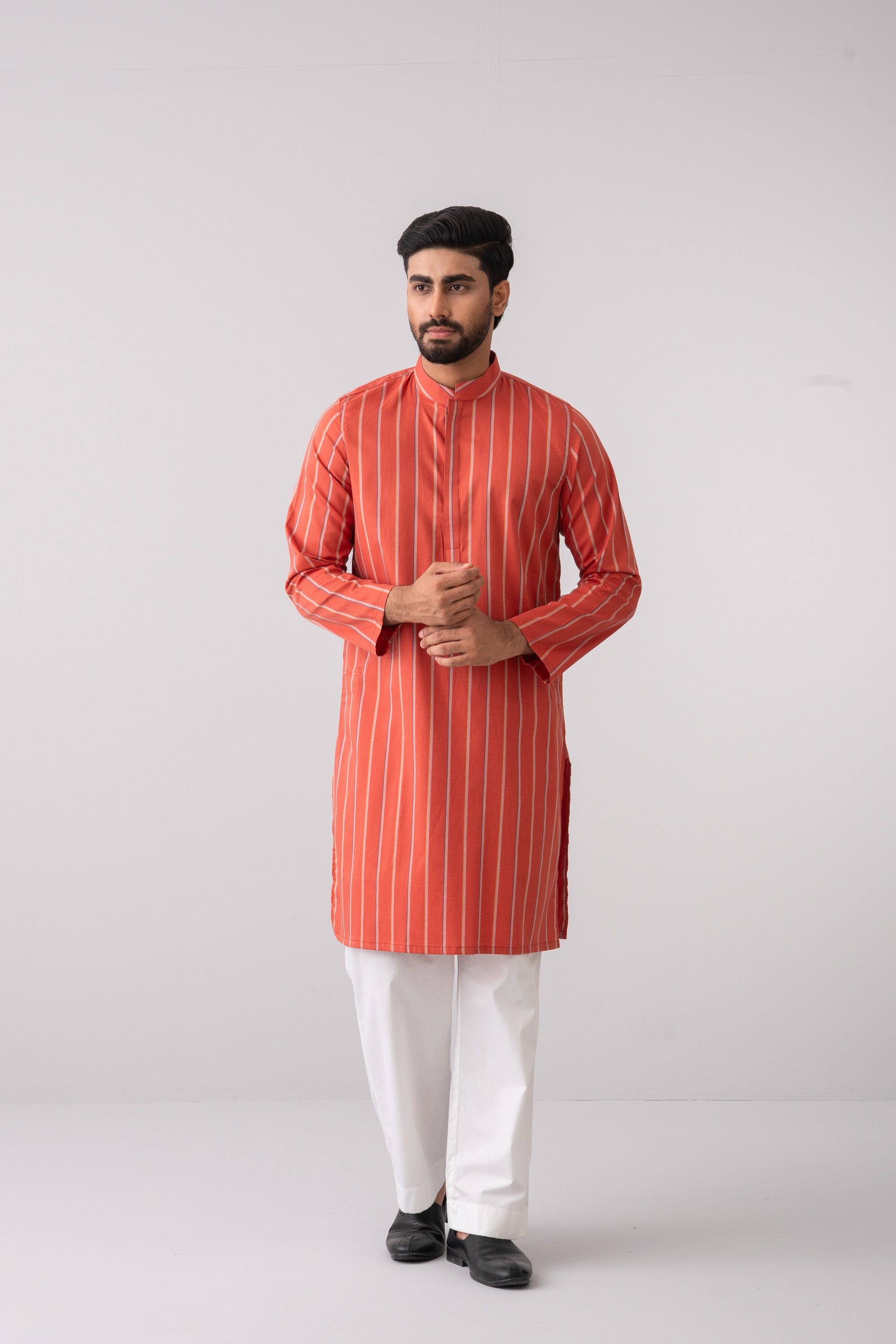 A regular fit Panjabi crafted from 60’s yarn dyed 100% cotton breathable fabric, featuring