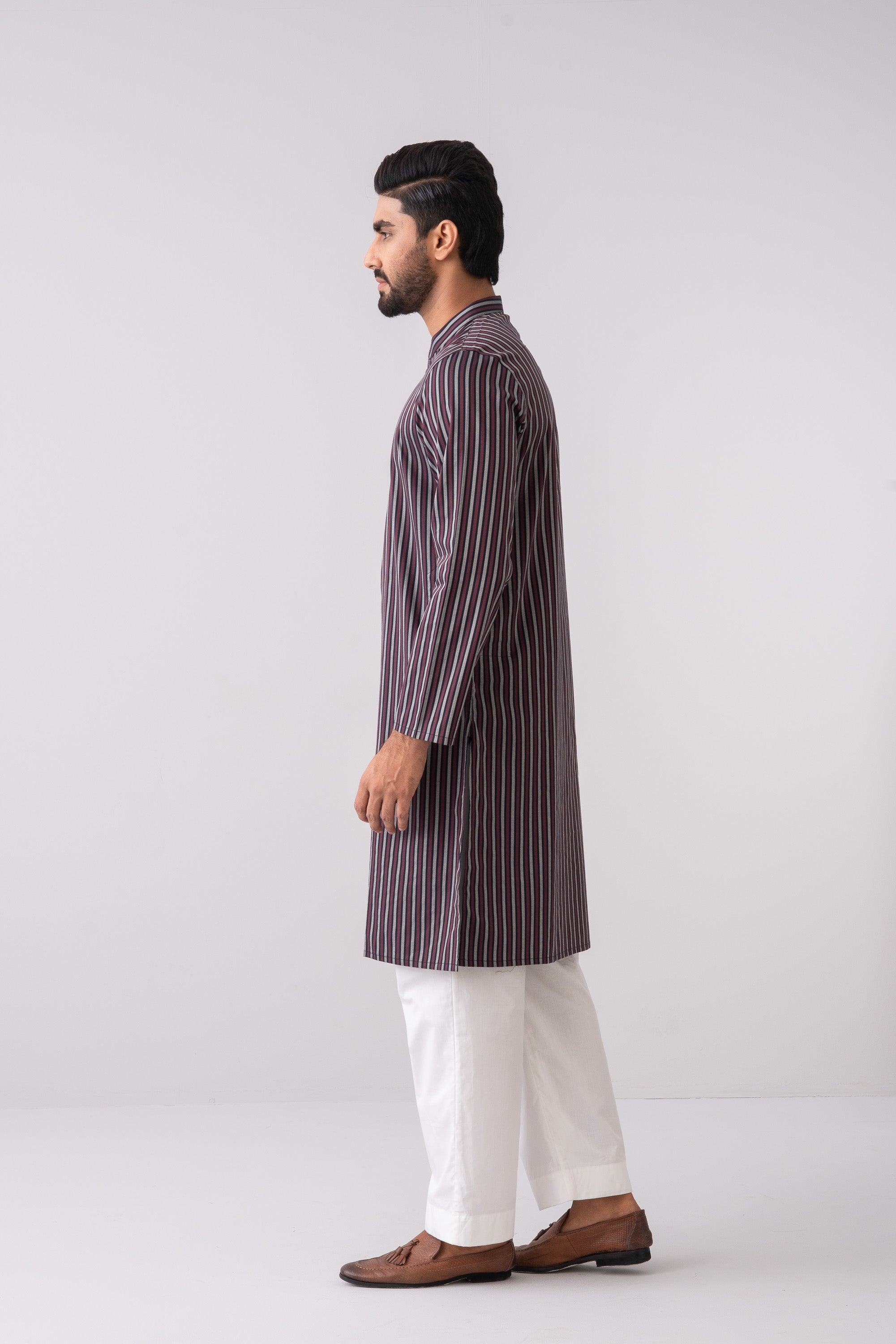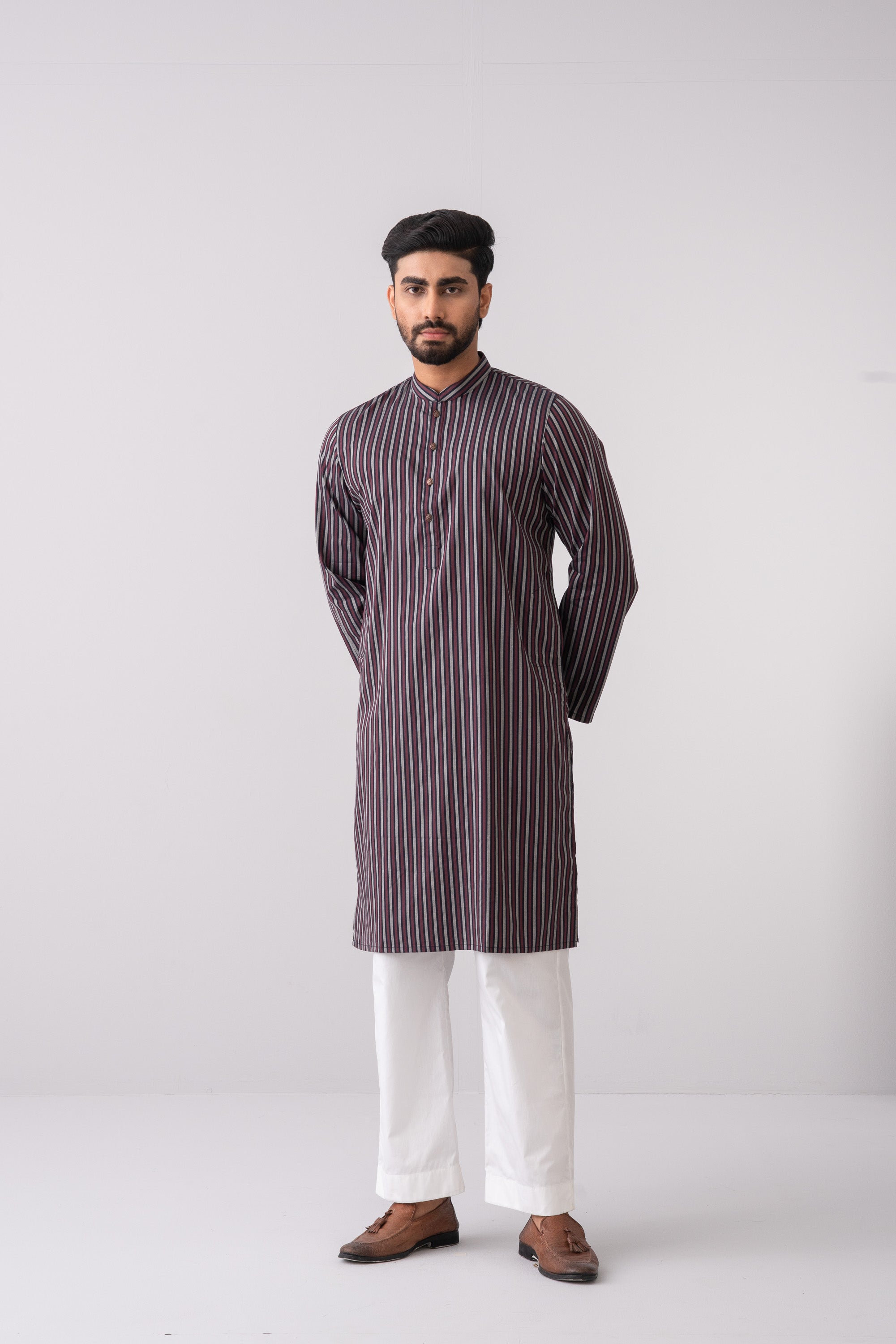 Stay stylish and comfortable every day with this men's basic Panjabi, crafted from breathable yarn-dyed fabric. Designed with a classic mandarin band collar and detailed with decorative metal buttons, it offers a clean, refined look perfect for daily wear.