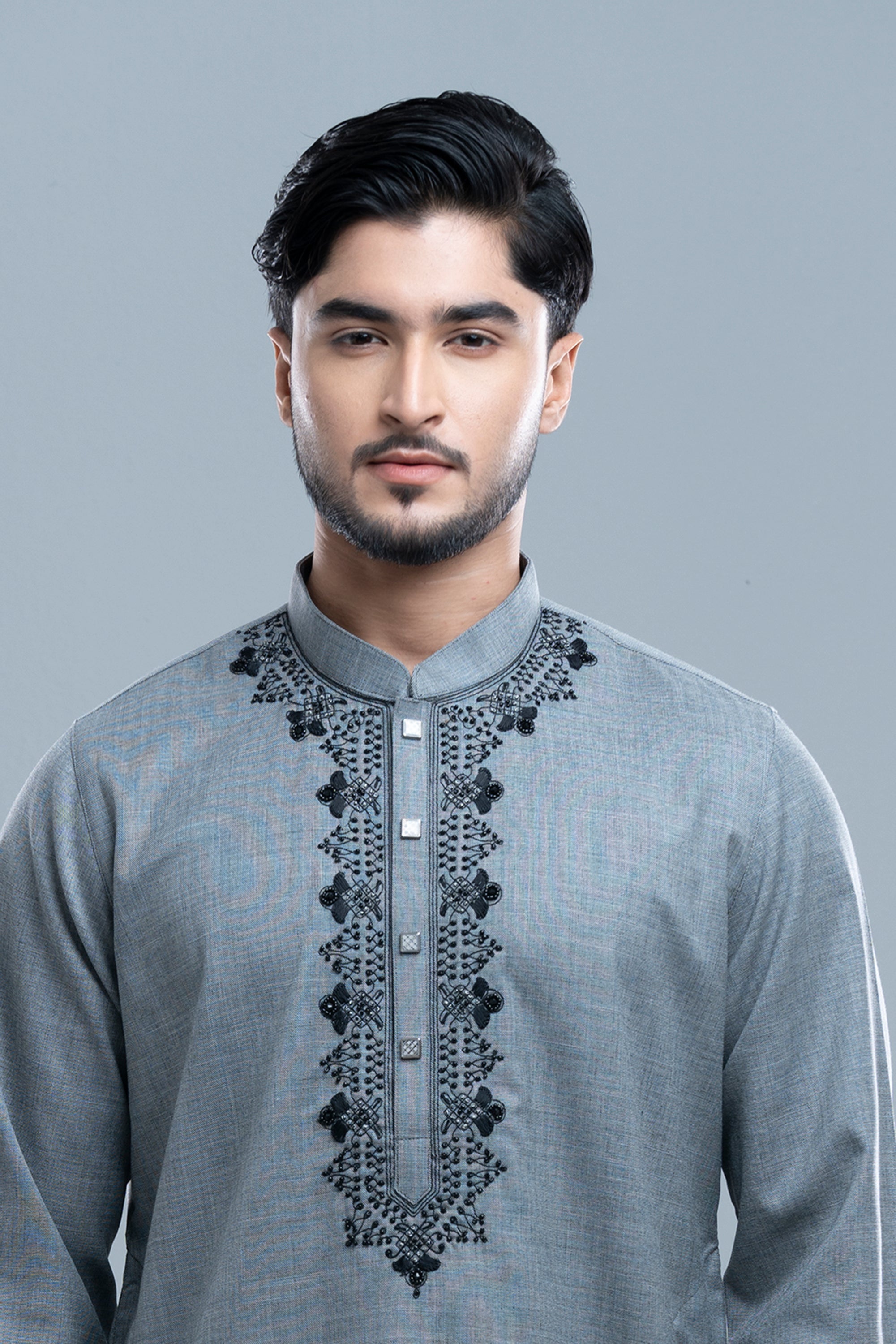 A regular-fit Panjabi crafted from premium TR fabric with 94% tencel 5% rayon and