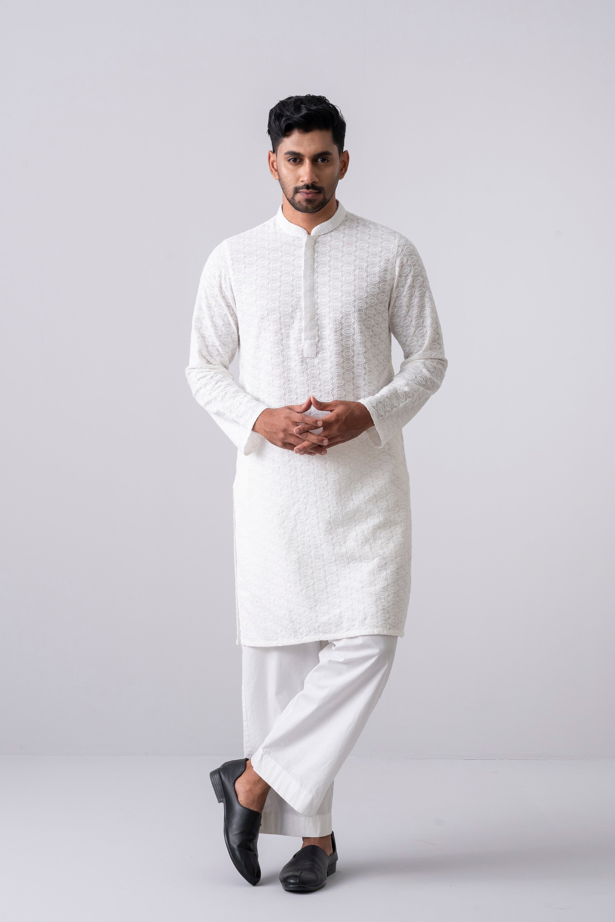 A regular-fit Panjabi crafted from 100% cotton fabric with hidden placket detailing