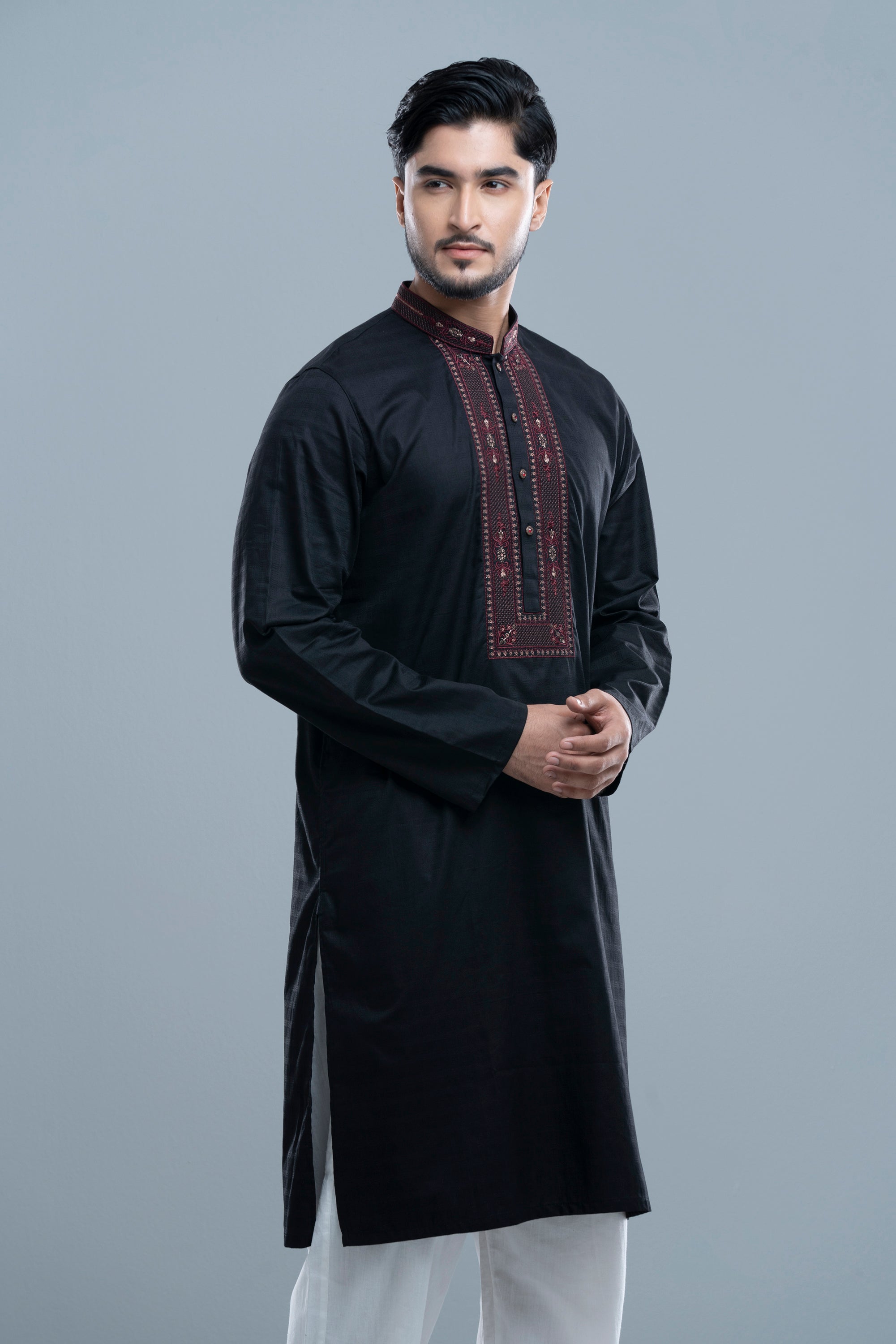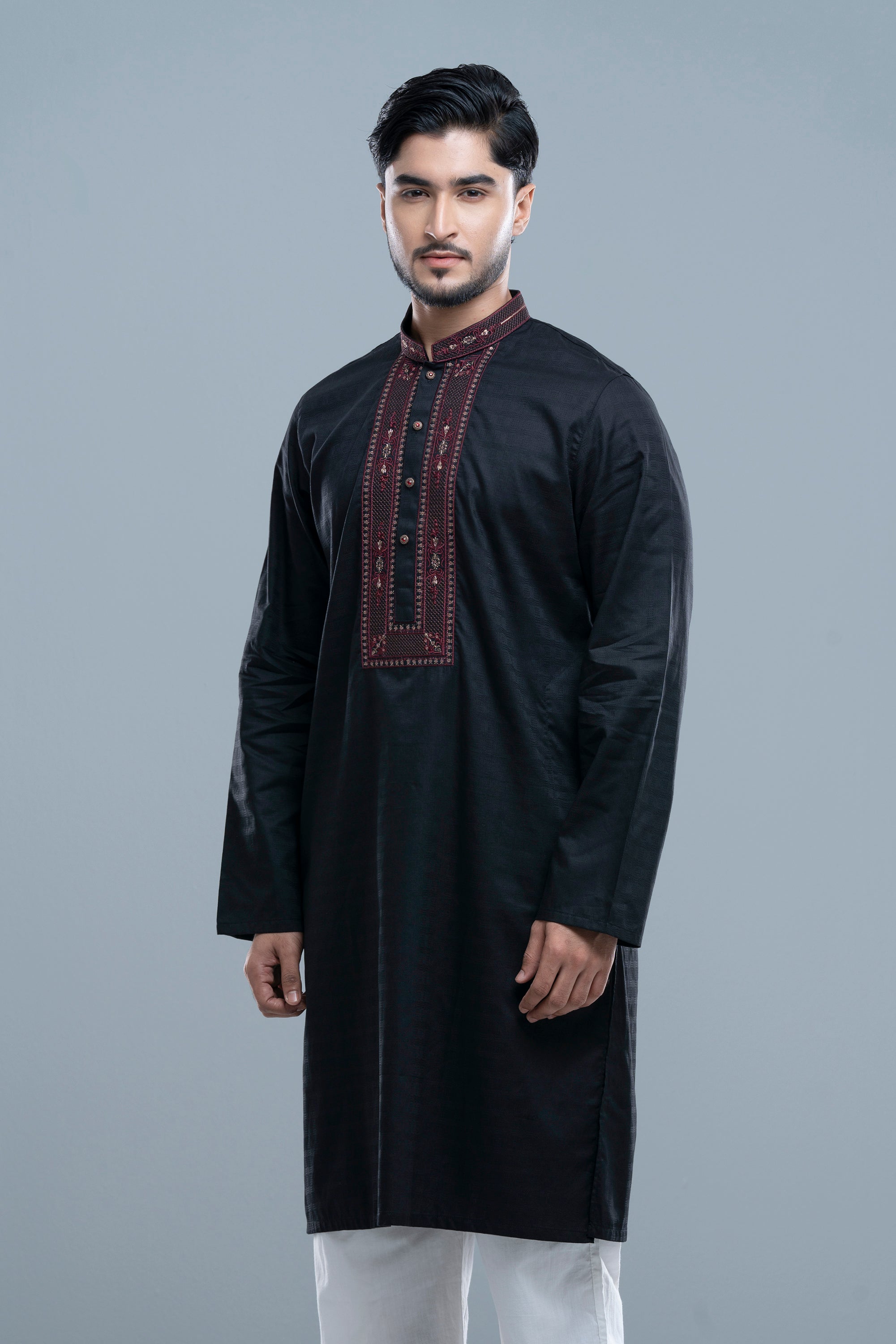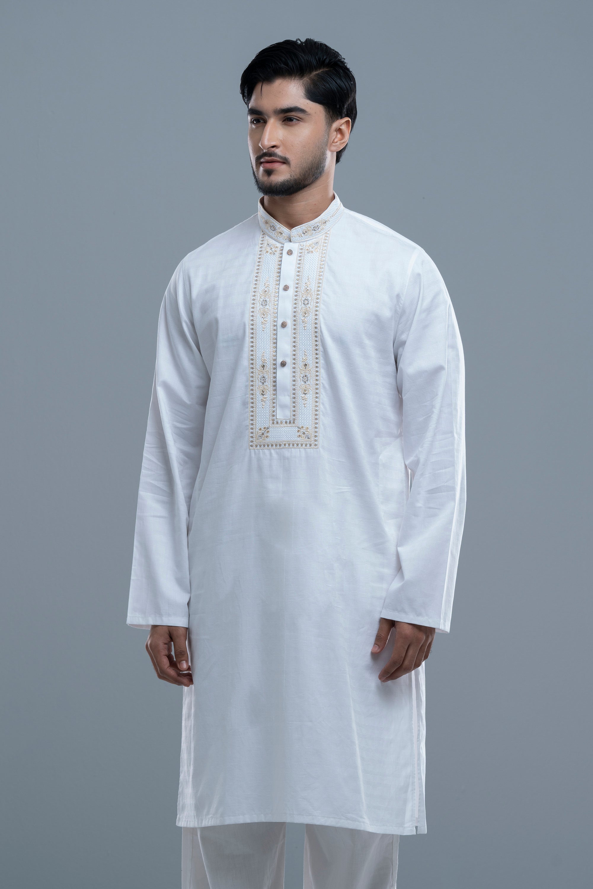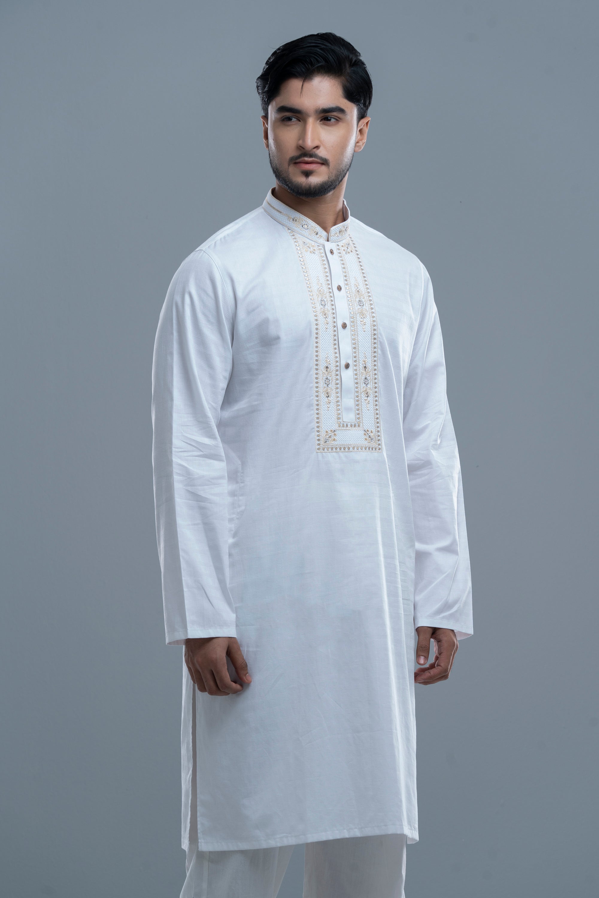 A regular-fit Panjabi crafted from 100% cotton fabric with classical embroidery