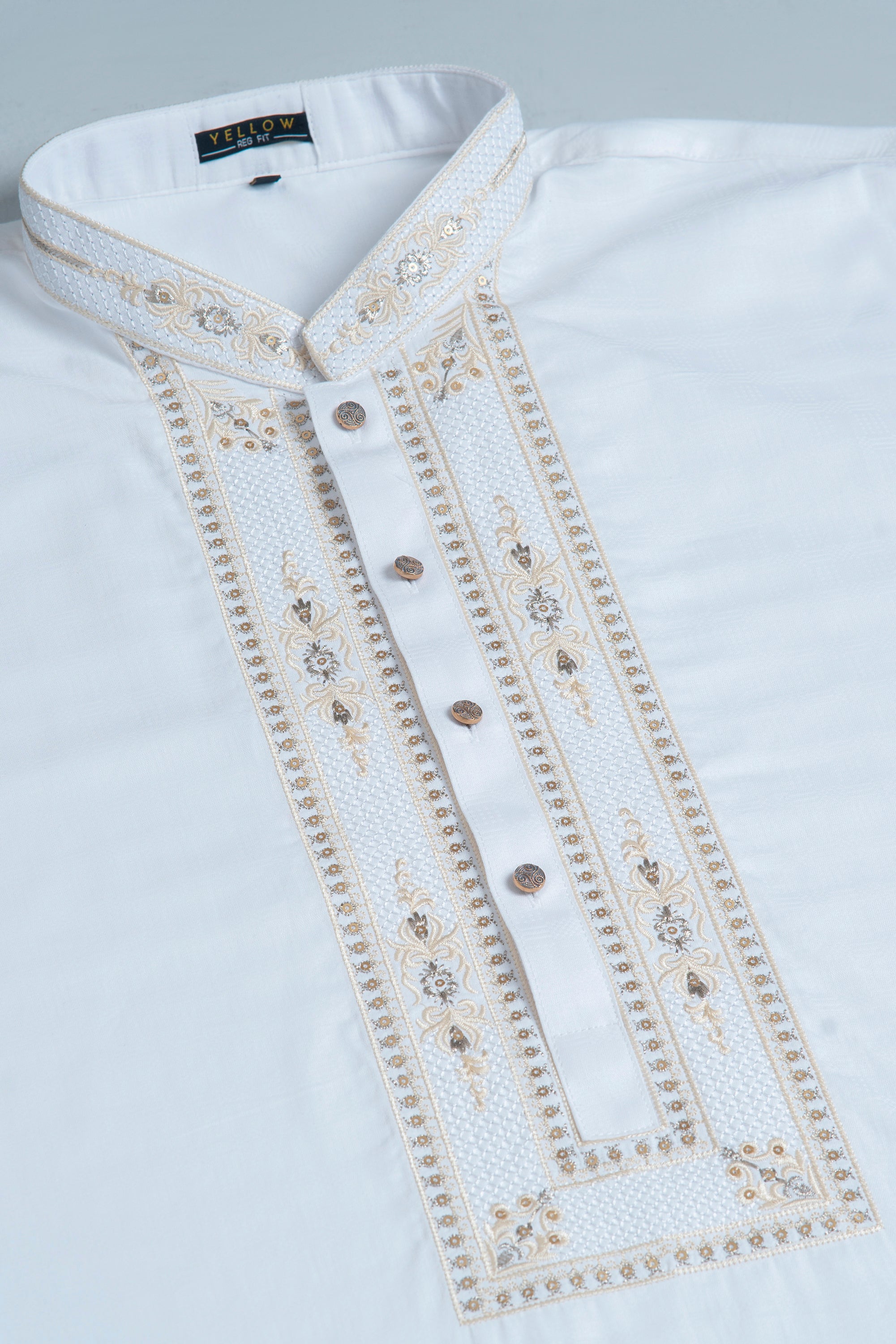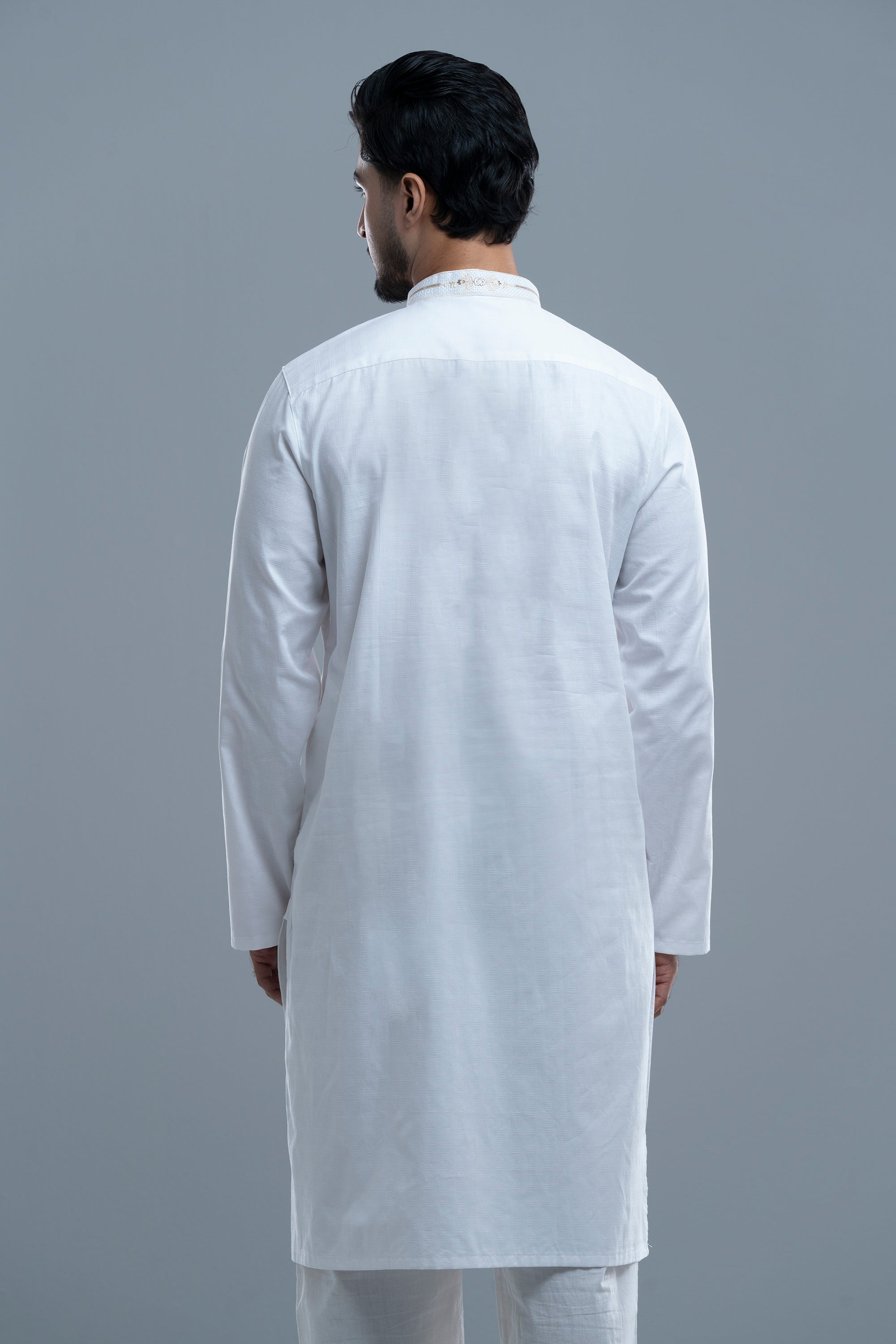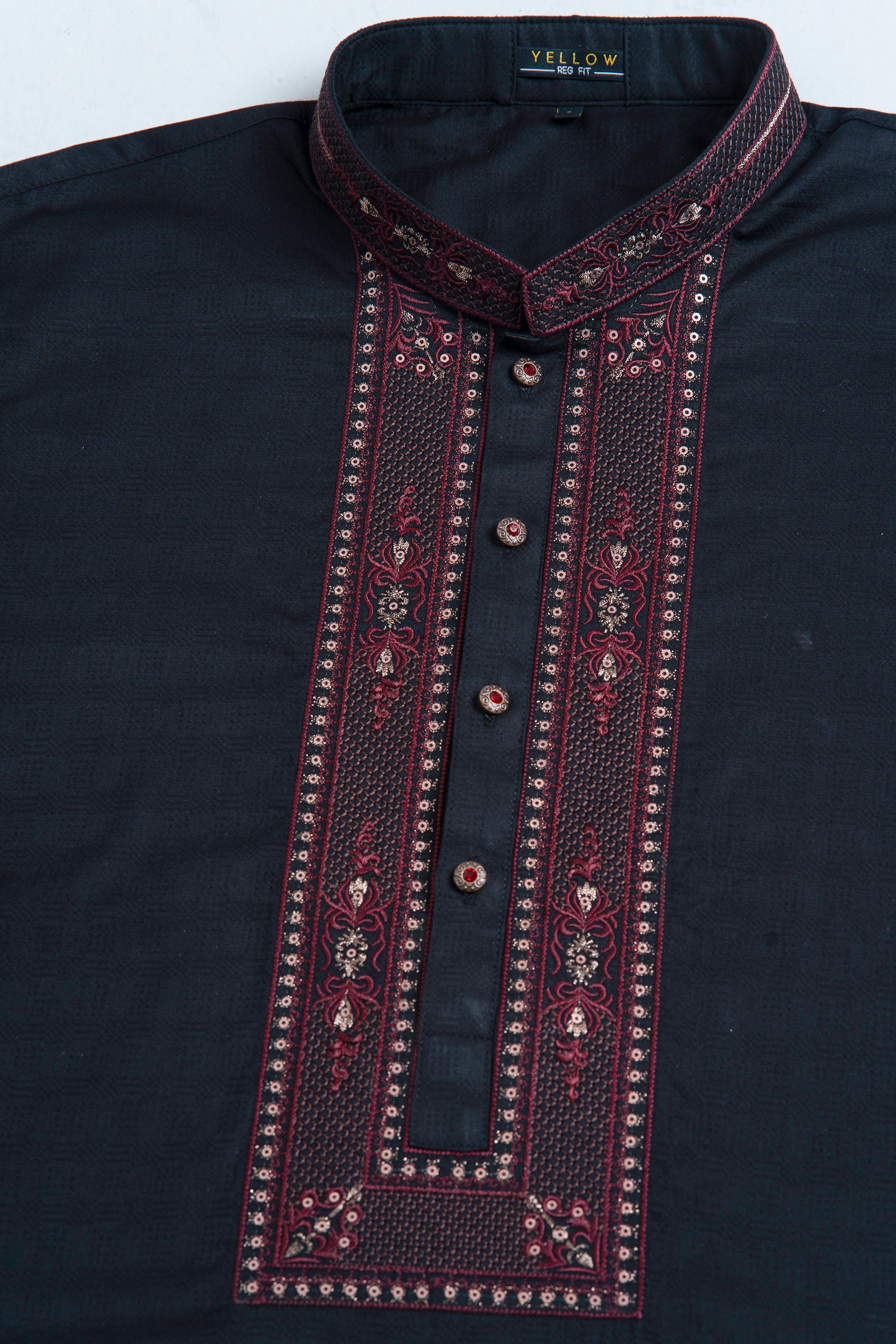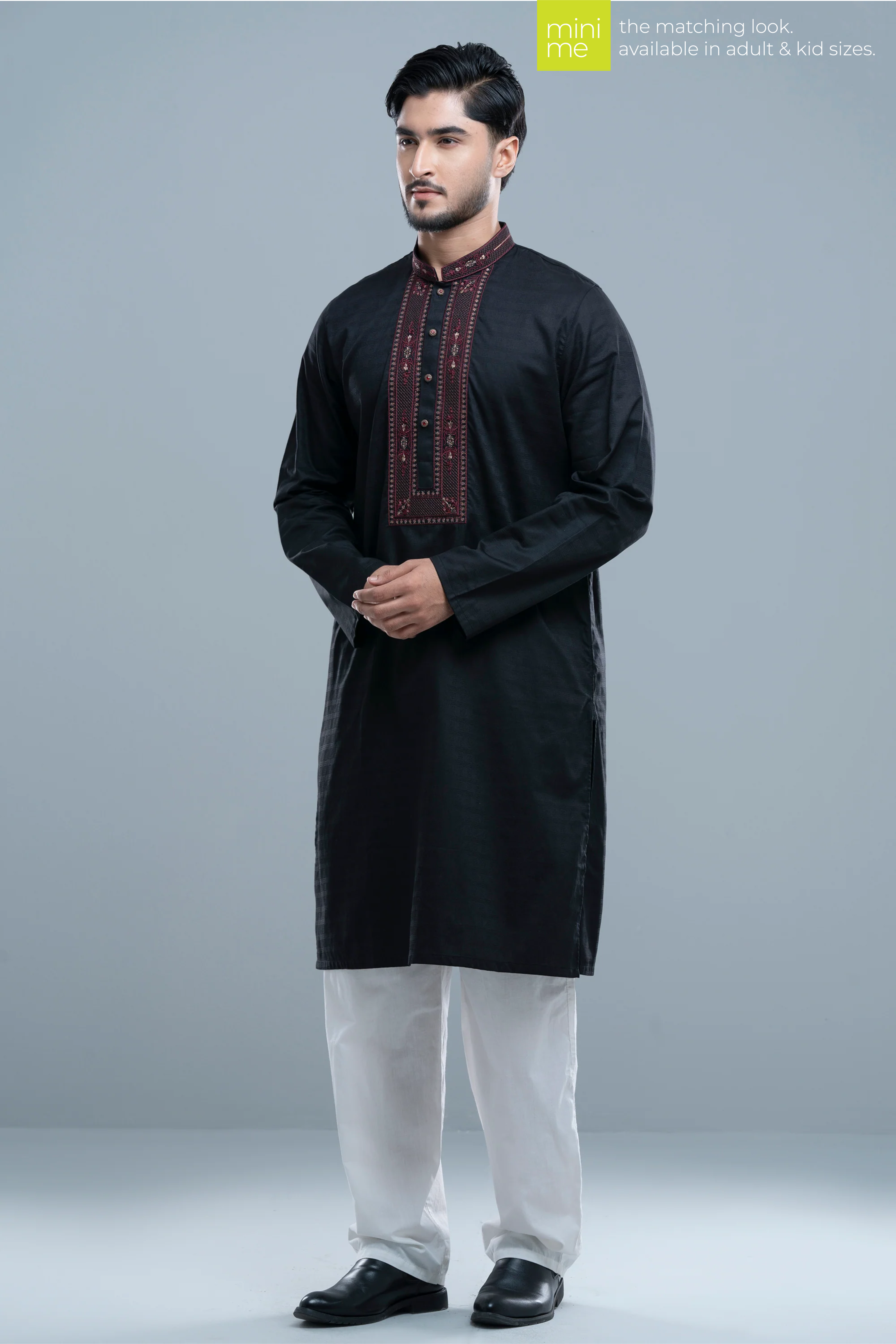 A regular-fit Panjabi crafted from 100% cotton fabric with classical embroidery