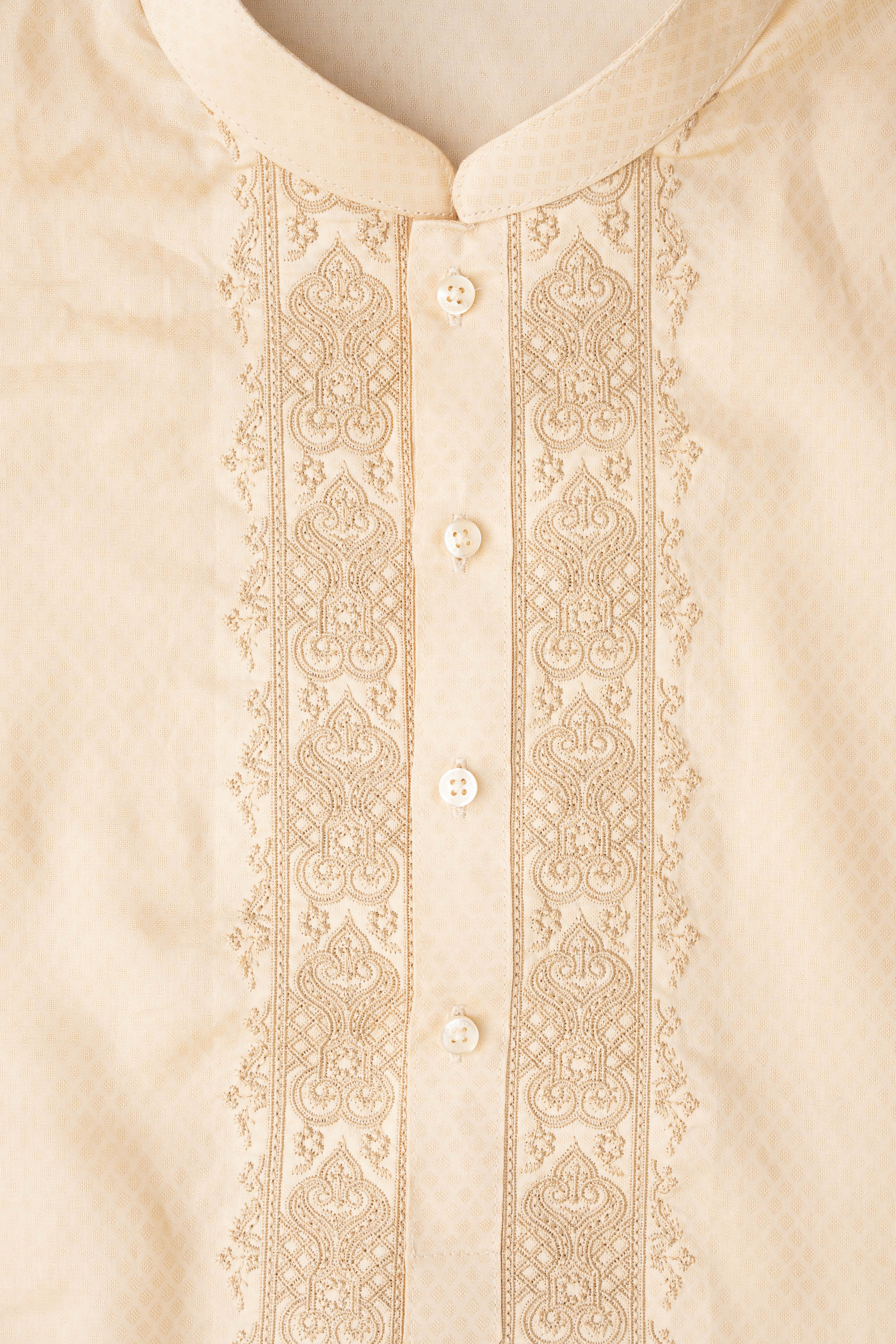 A regular-fit Panjabi crafted from 100% cotton fabric with classical embroidery embellishment on around placket with DTM button detailing offers a stylish yet comfortable semi-formal look. This design combines comfort and subtle elegance, making it ideal for a refined and stylish appearance
