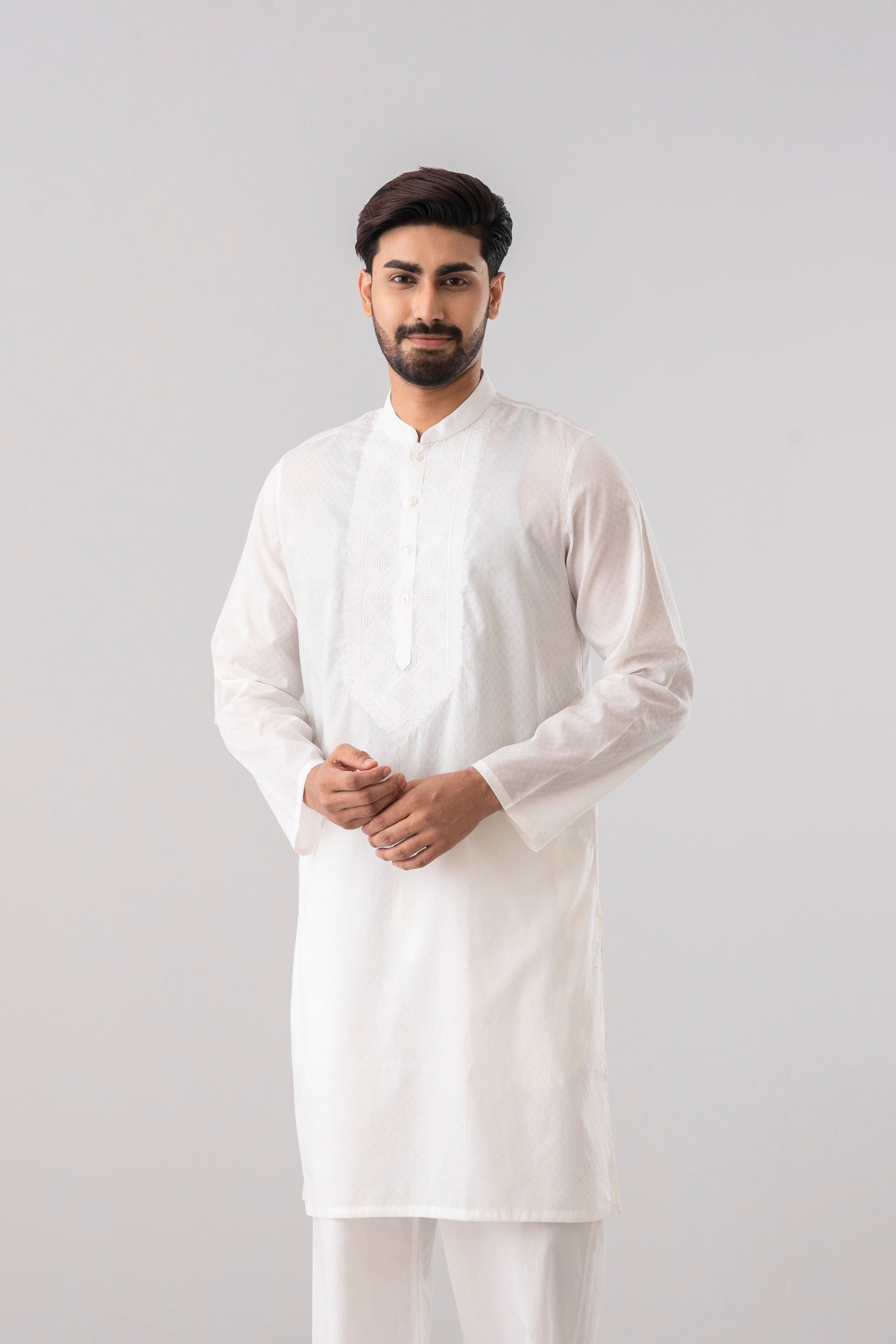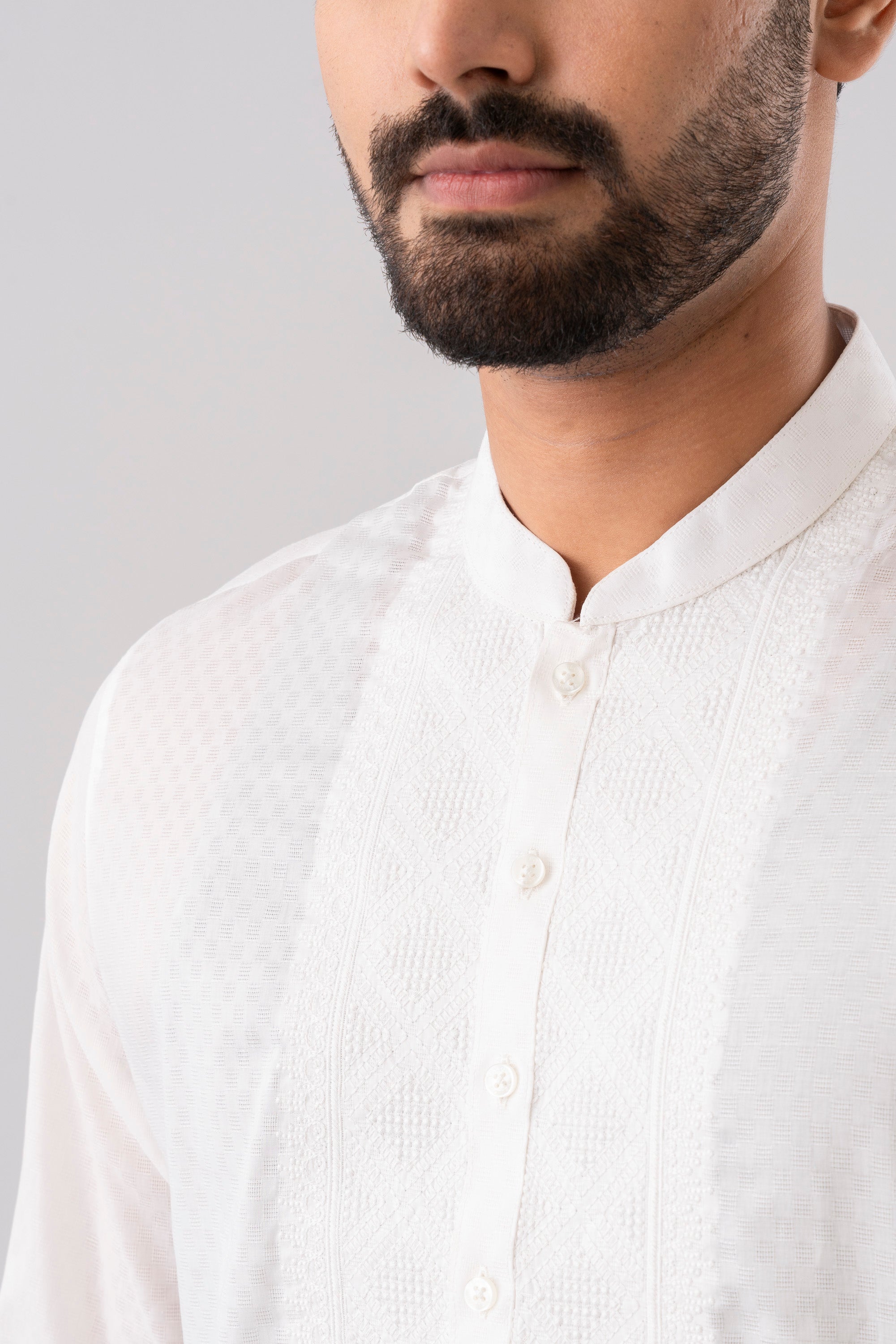 A regular-fit Panjabi crafted from 100% cotton fabric with classical embroidery
