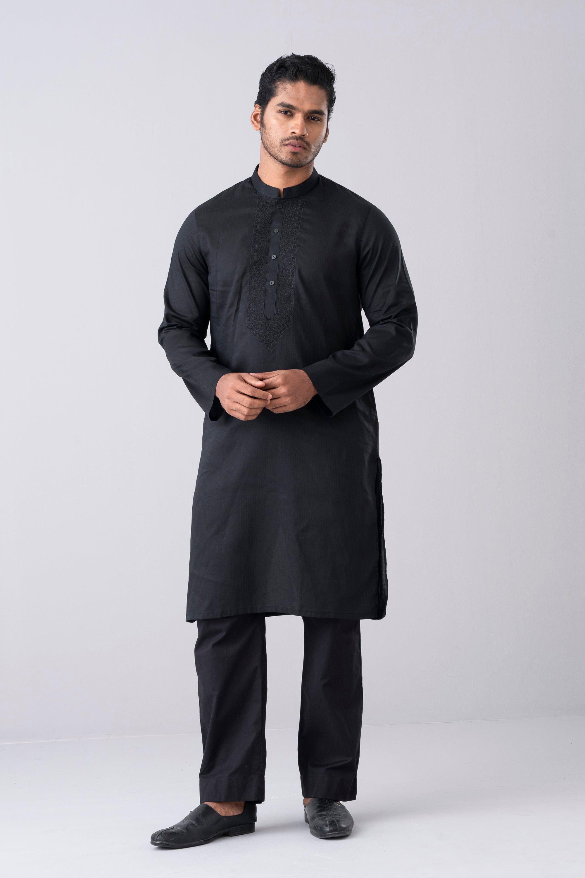 A regular-fit Panjabi crafted from 100% cotton fabric with classical embroidery