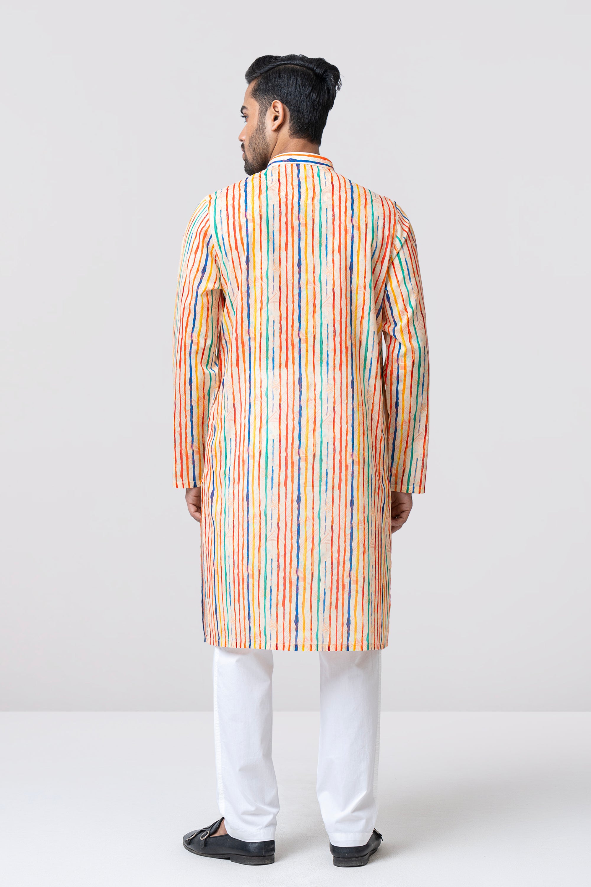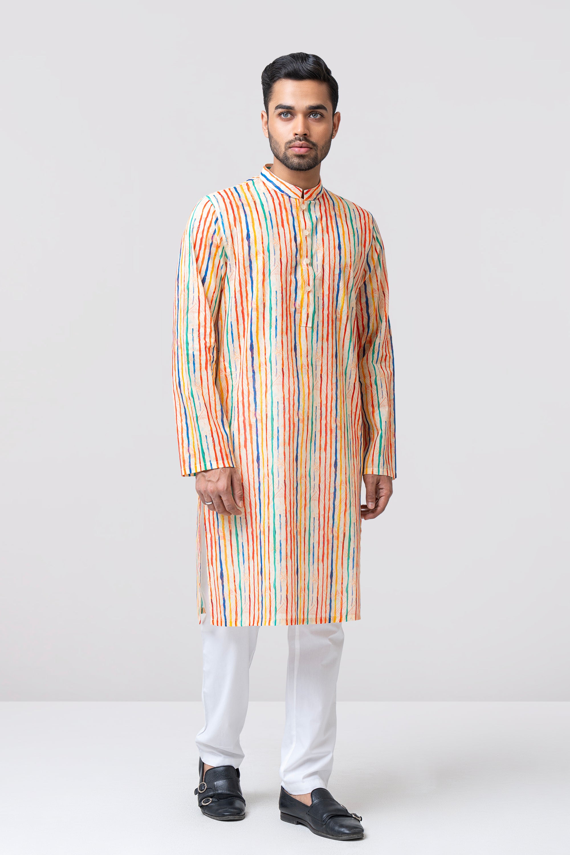 A regular-fit Panjabi crafted from 100% cotton fabric, featuring an elegant allover print, offers a stylish and comfortable daily wear look. Perfect for a blend of tradition and modern elegance.
