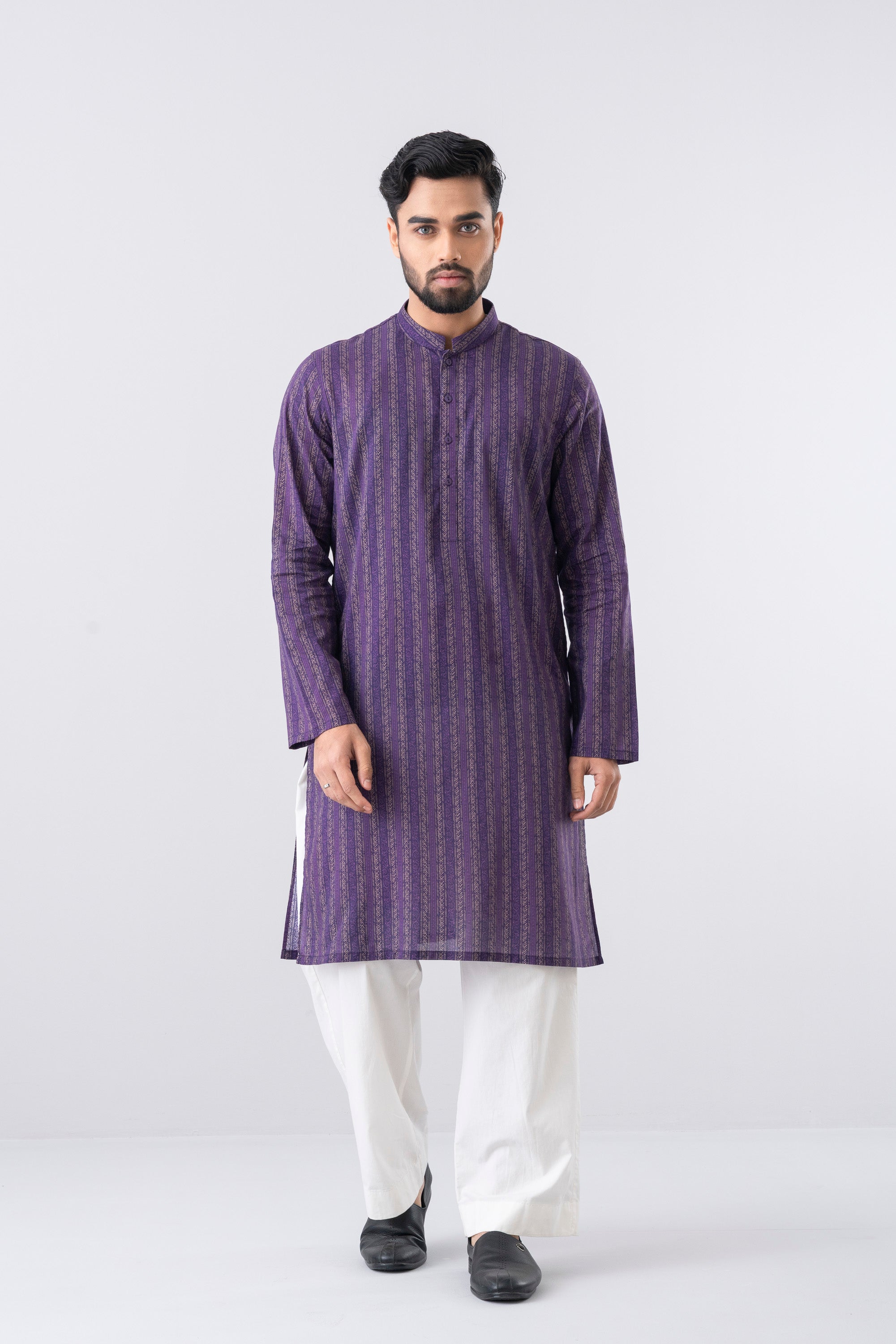 A regular-fit Panjabi crafted from 100% cotton fabric, featuring an elegant