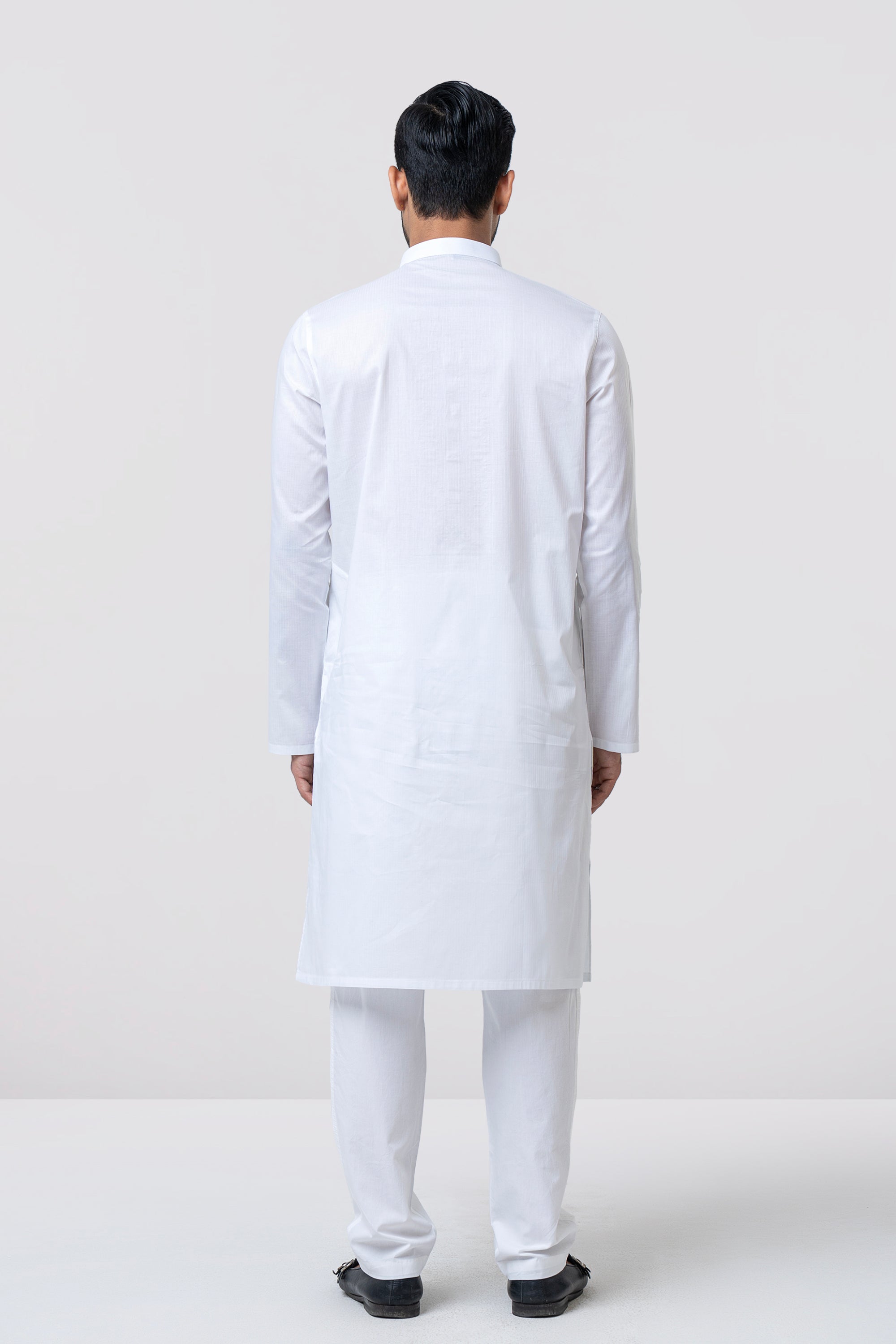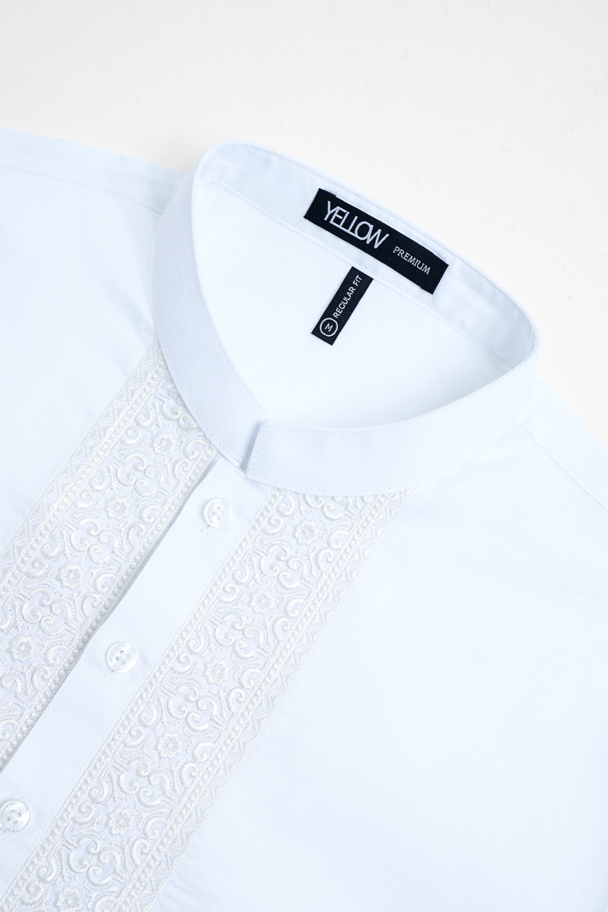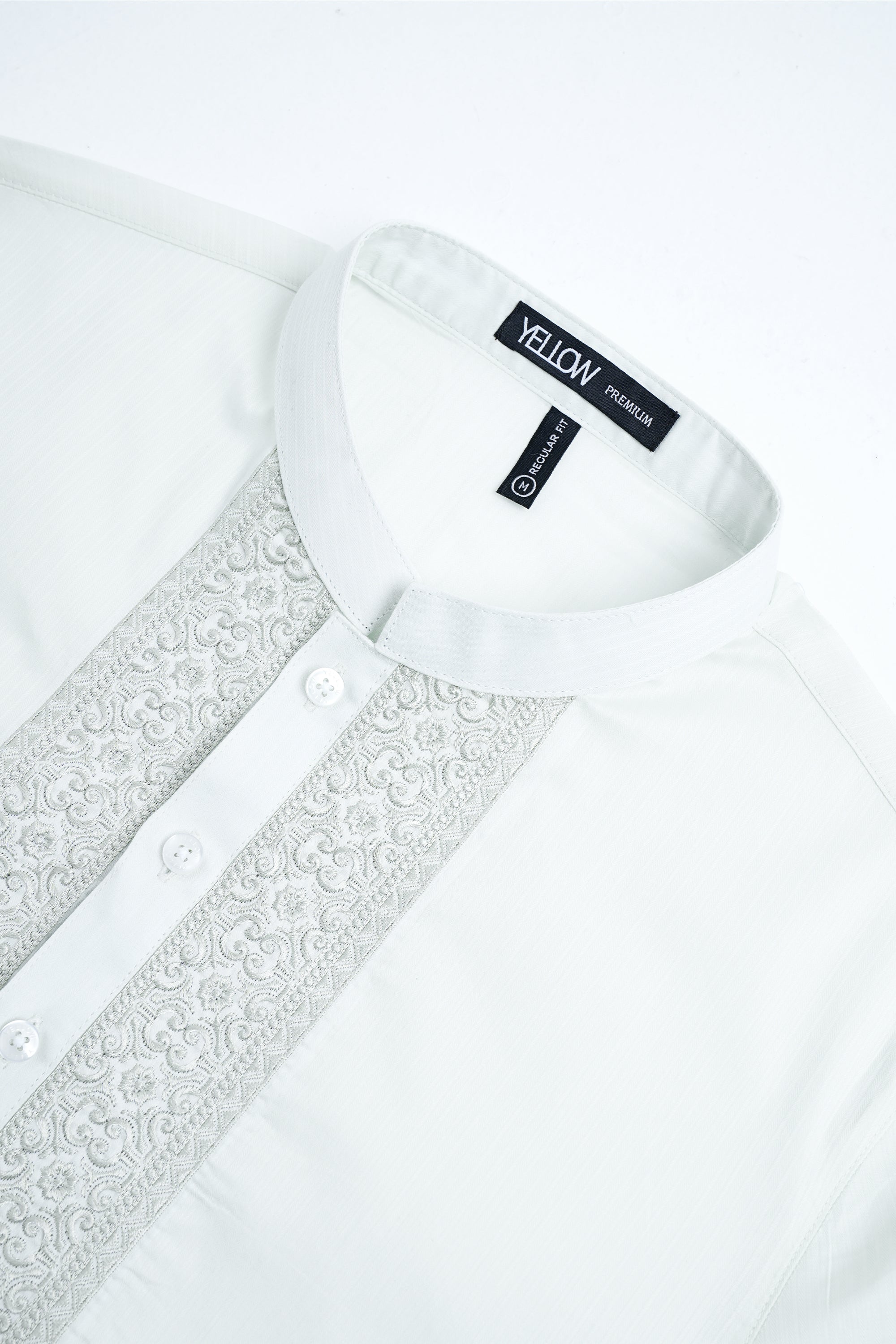 A regular-fit Panjabi crafted from 100% cotton fabric with classical embroidery embellishment on around placket with DTM button detailing offers a stylish yet comfortable semi-formal look. This design combines comfort and subtle elegance, making it ideal for a refined and stylish appearance.
