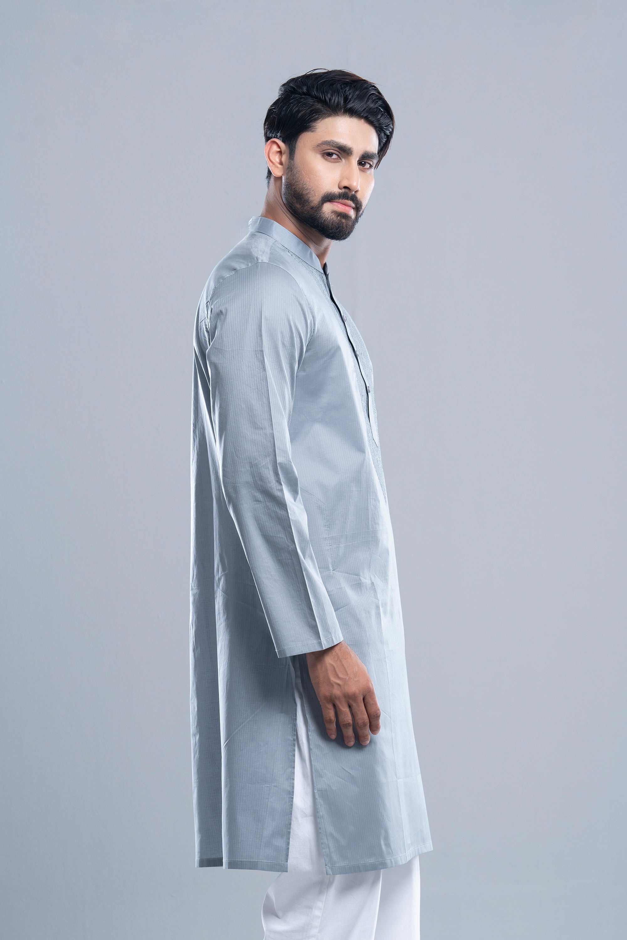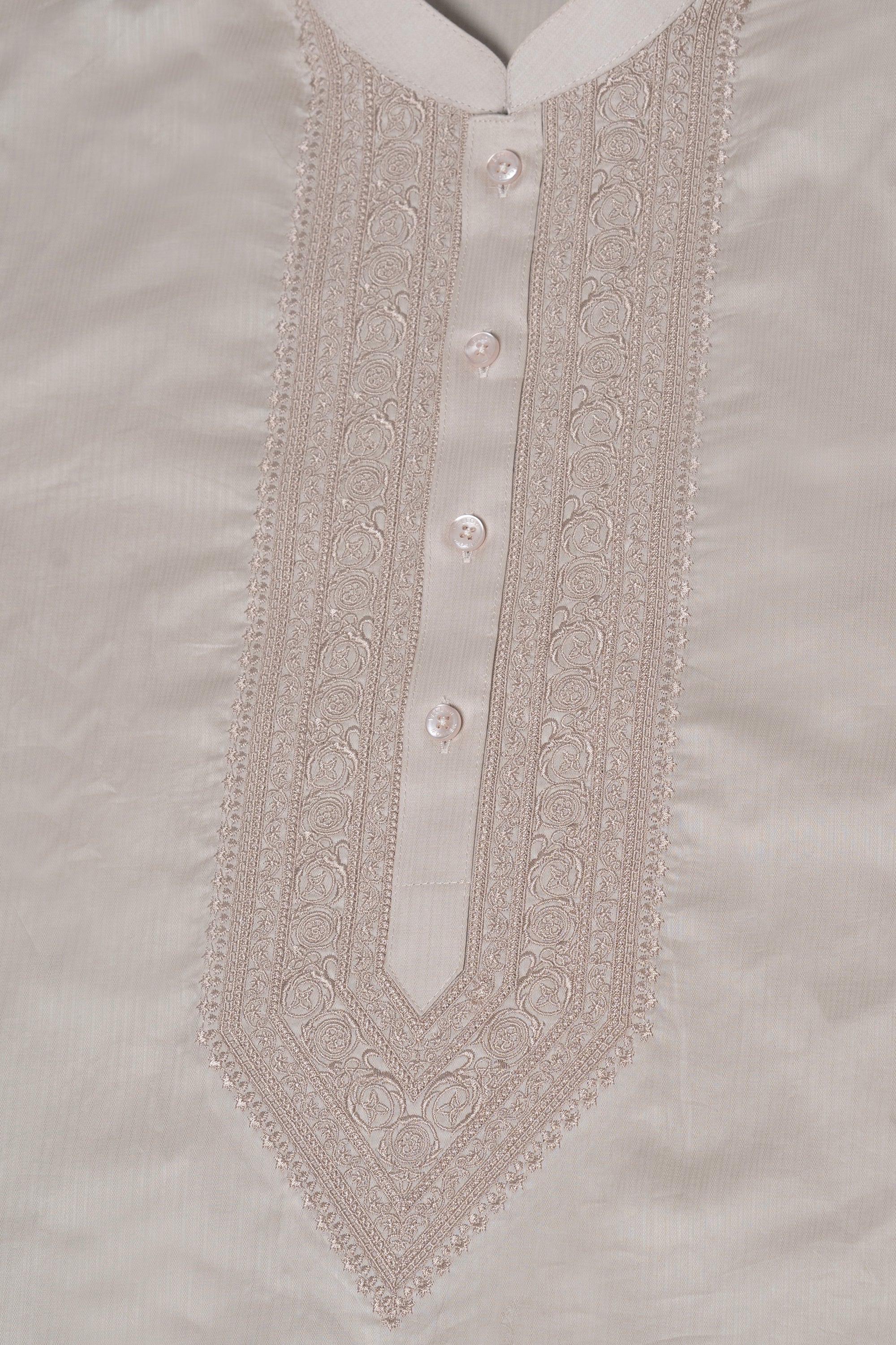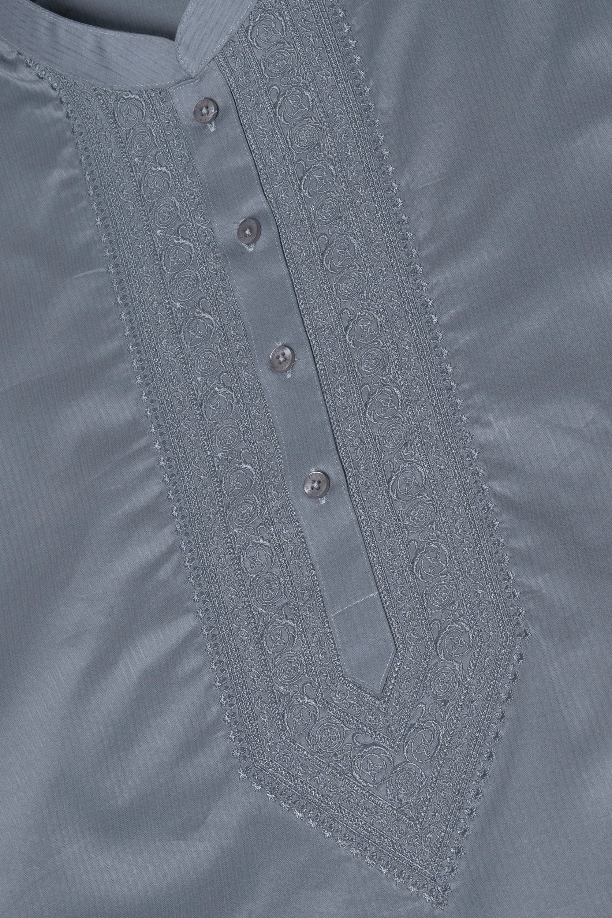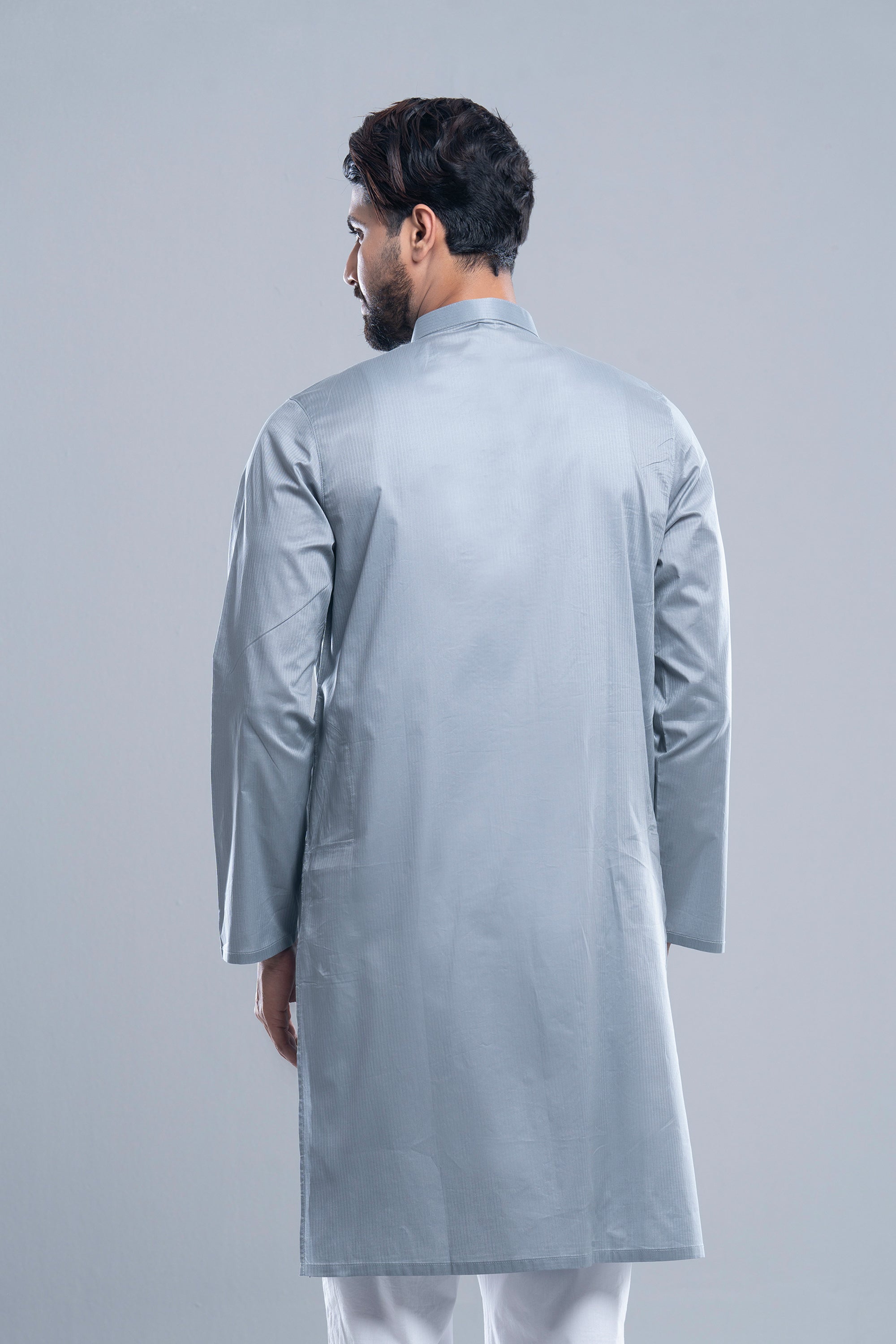 A regular-fit Panjabi crafted from 100% cotton fabric with classical embroidery embellishment on around placket with DTM button detailing offers a stylish yet comfortable semi-formal look. This design combines comfort and subtle elegance, making it ideal for a refined and stylish appearance