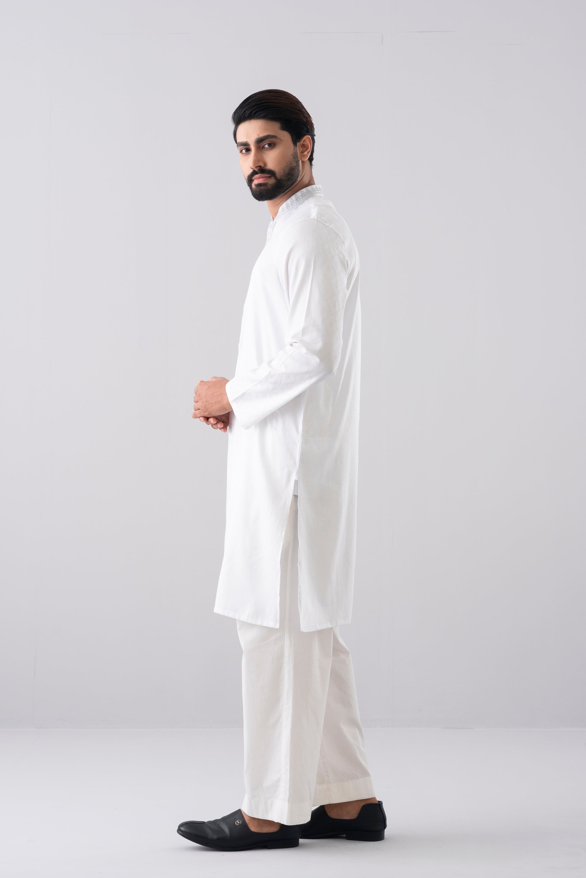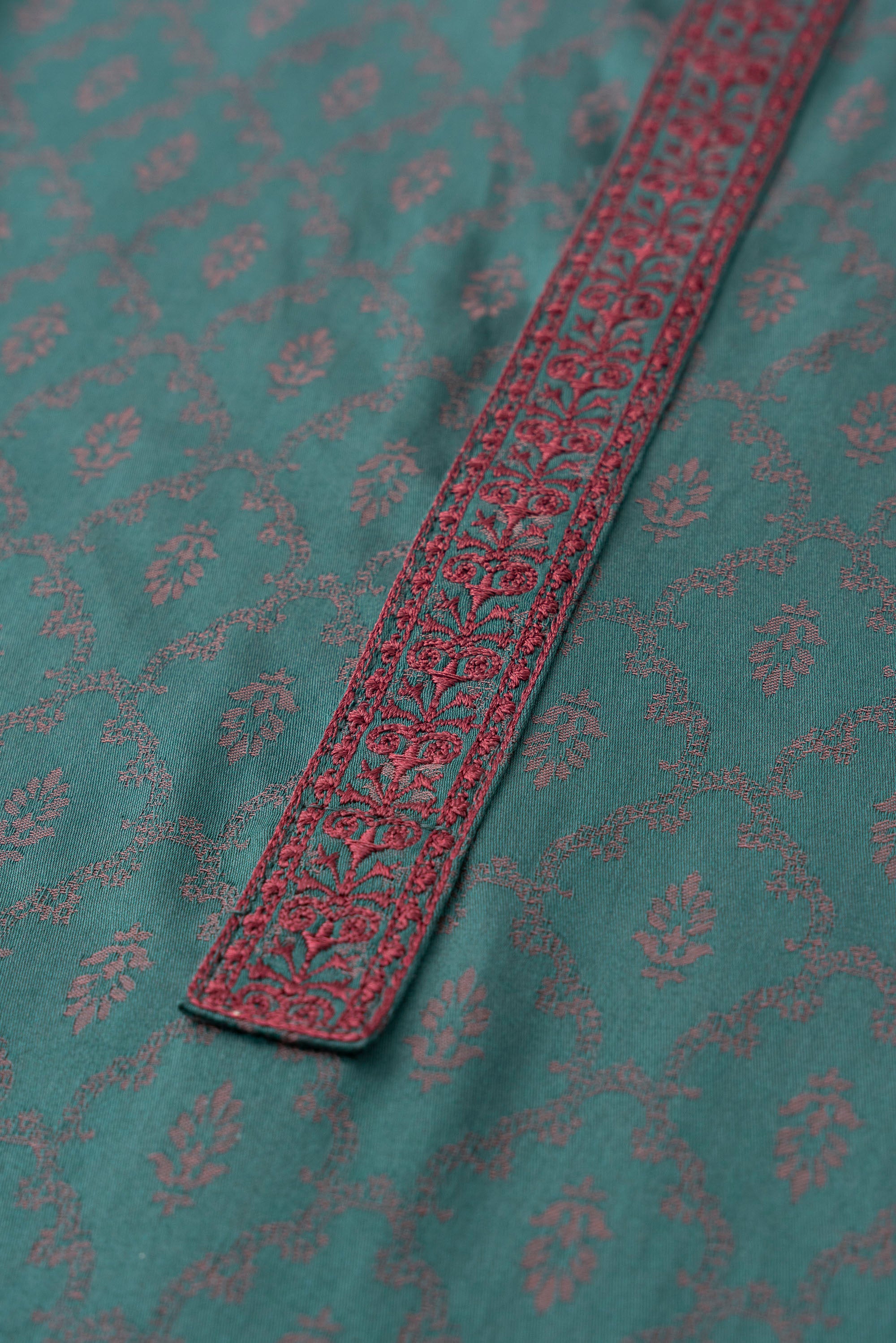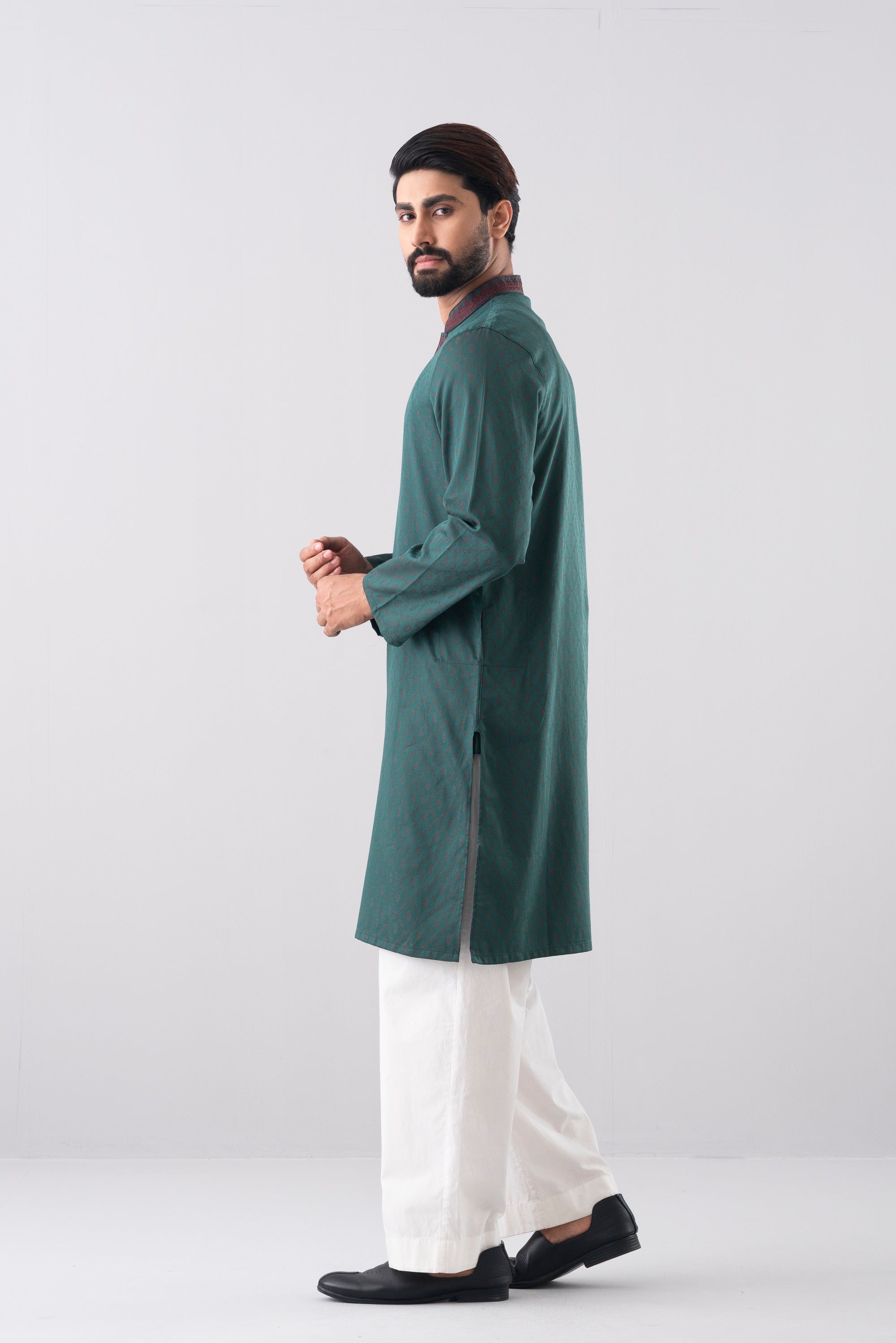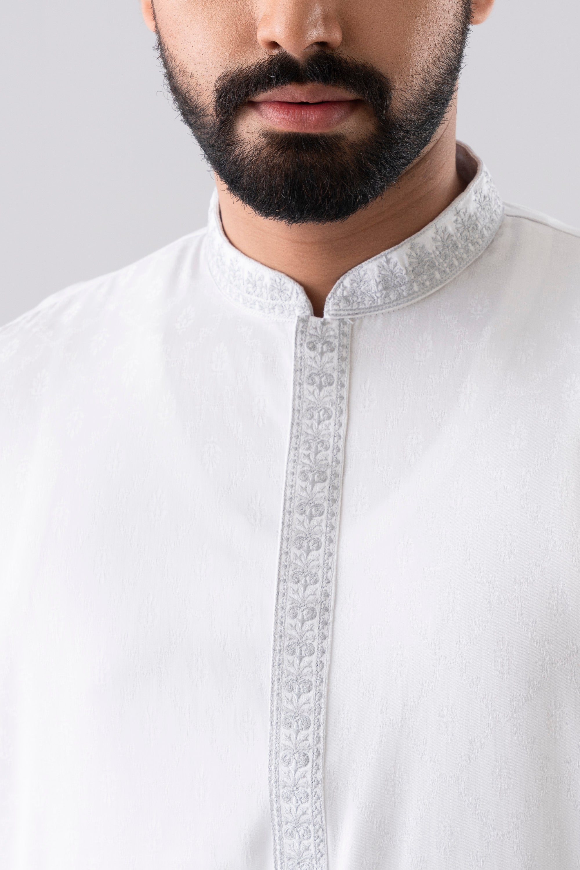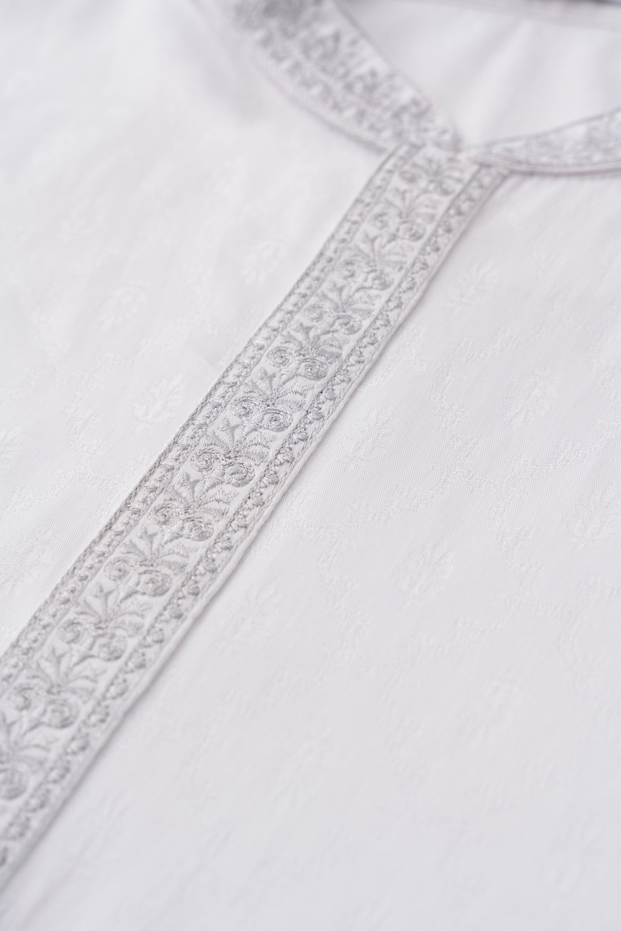 A regular fit Panjabi crafted from 100% cotton jacquard breathable fabric, featuring classical embroidery on band and placket, offers a stylish yet comfortable semi-formal look. Perfect for effortless elegance and all-day ease.