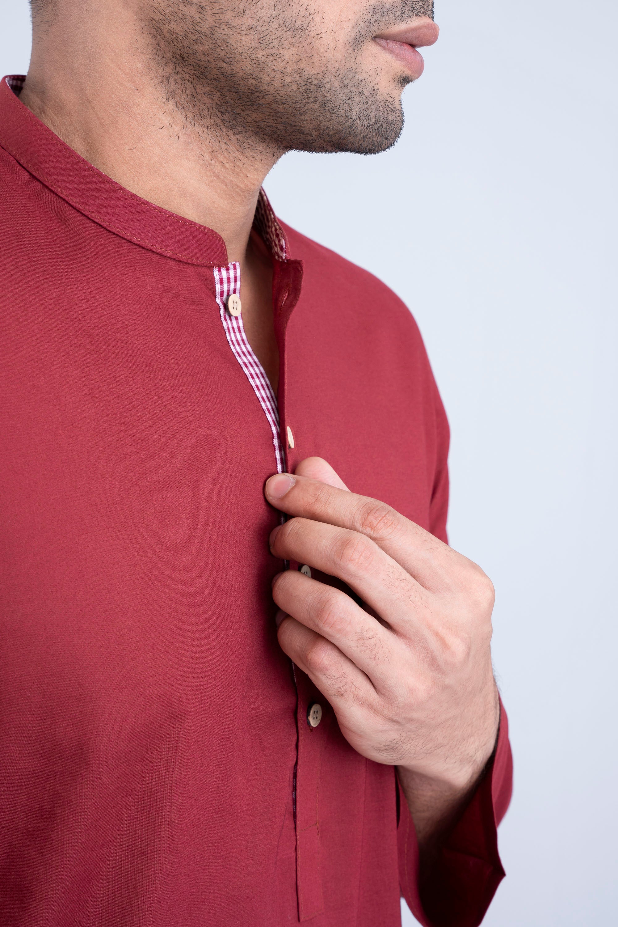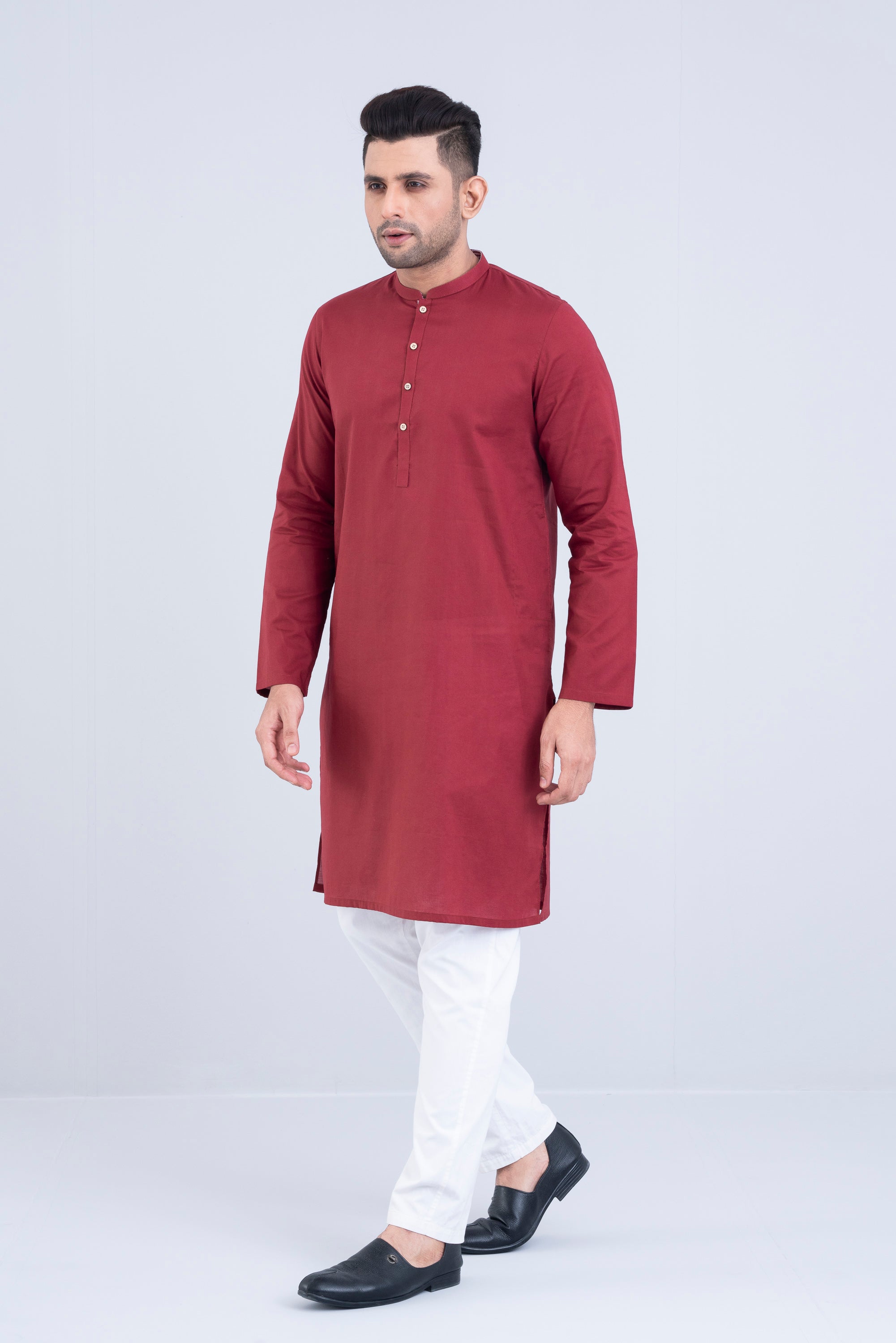 A regular fit Panjabi crafted from solid dyed 100% cotton breathable fabric, featuring contrast details and DTM plastic buttons, offers a stylish yet comfortable daily wear look. Perfect for effortless elegance and all-day ease.