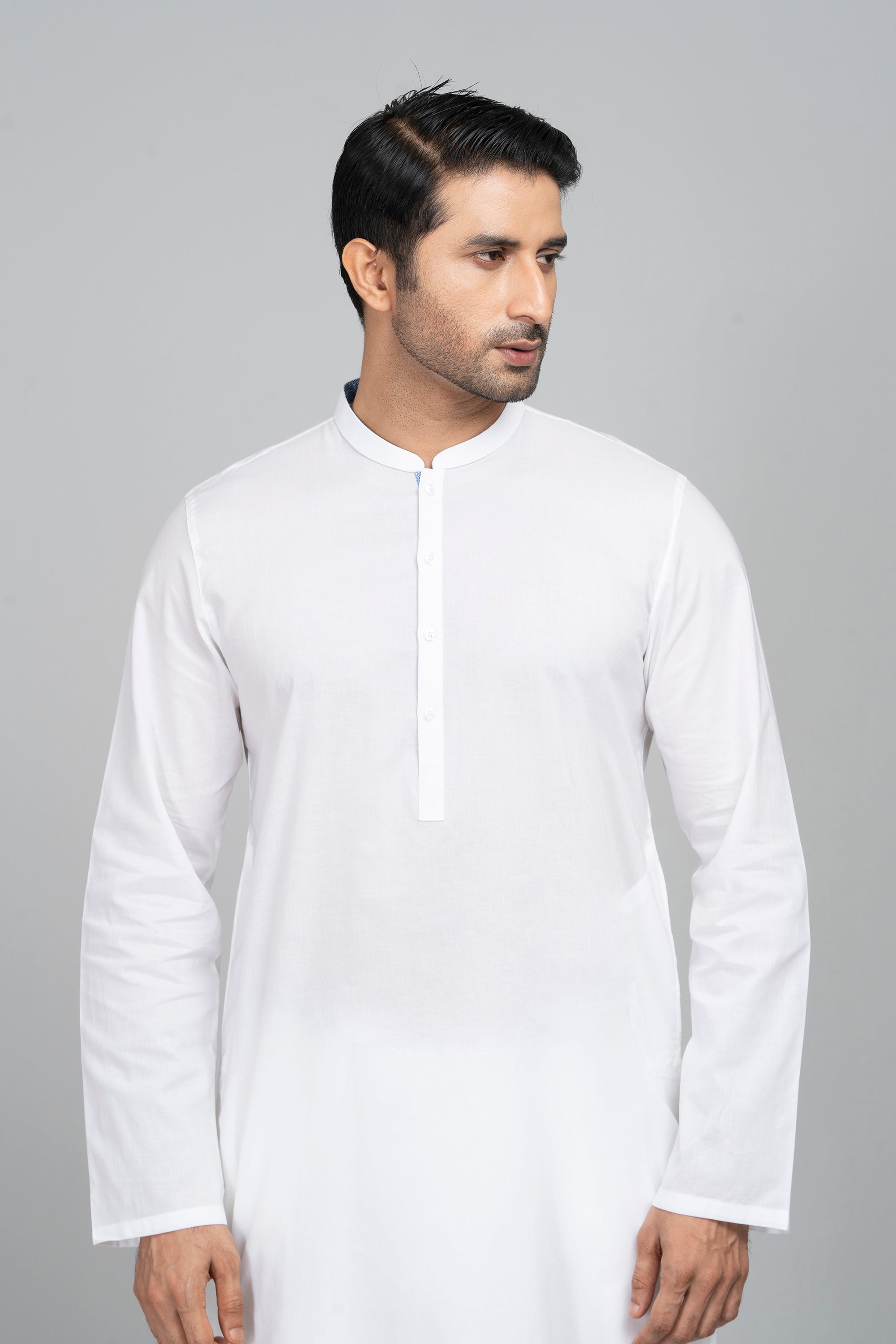 A regular fit Panjabi crafted from solid dyed 100% cotton breathable fabric, featuring contrast details and DTM plastic buttons, offers a stylish yet comfortable daily wear look. Perfect for effortless elegance and all-day ease.