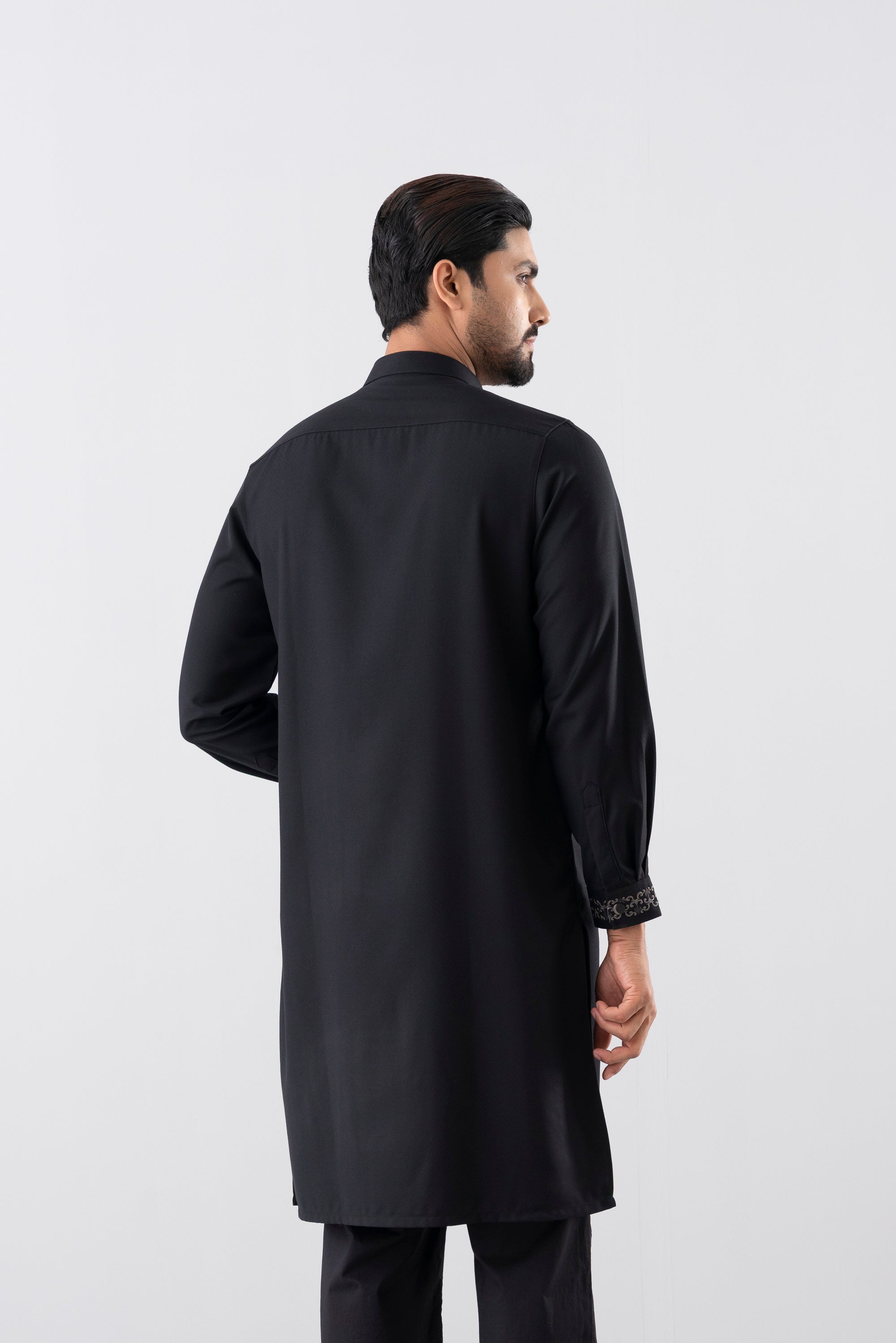 A regular-fit Panjabi crafted from premium breathable fabric with tencel rayon blend, featuring classical embroidery on cuff and around placket with decorative snap buttons, offers a stylish yet comfortable formal look. Perfect for effortless elegance in every occasion.